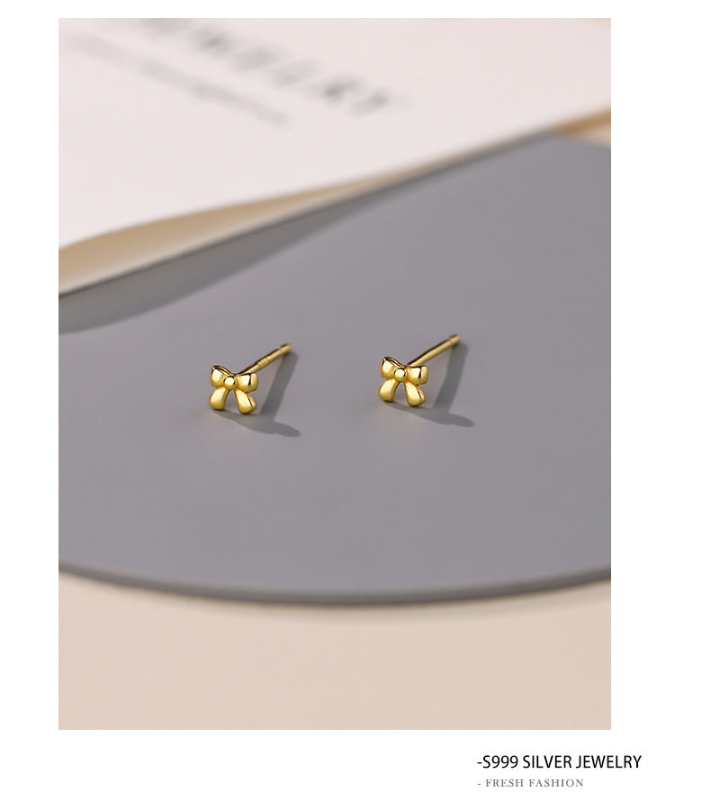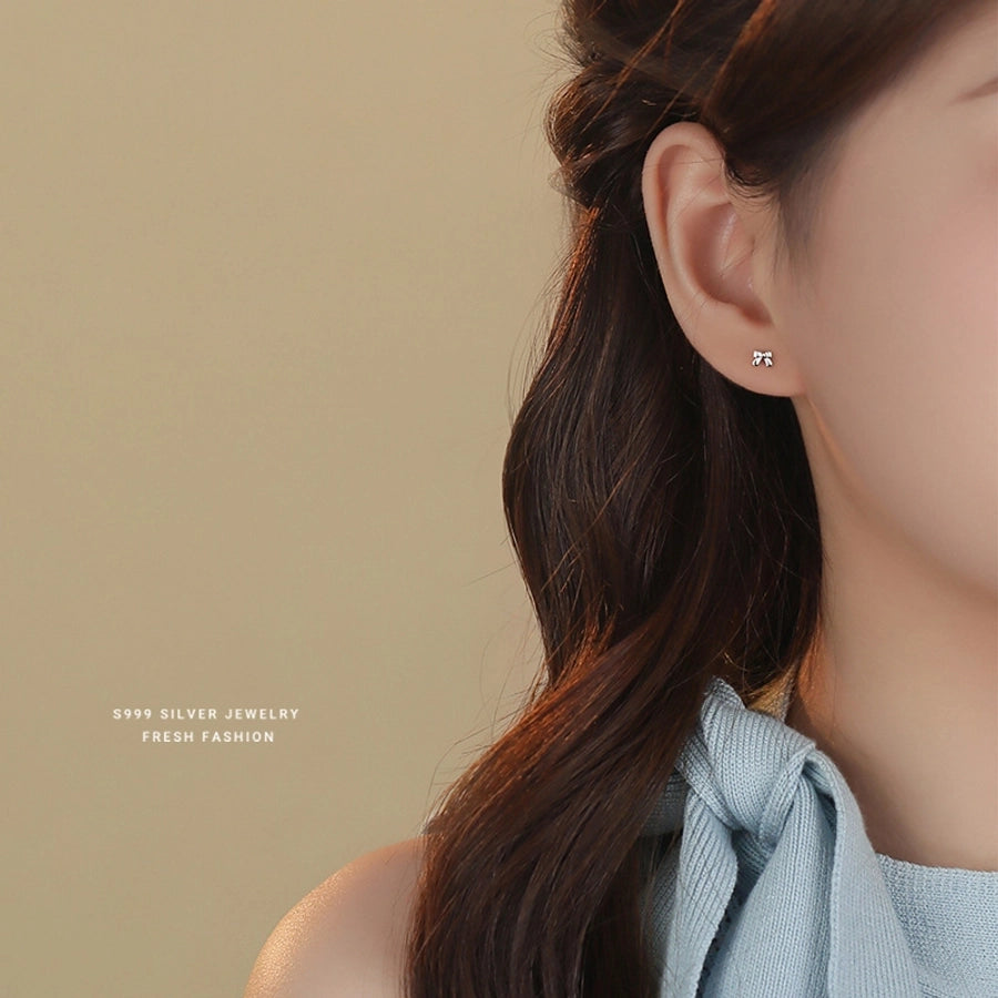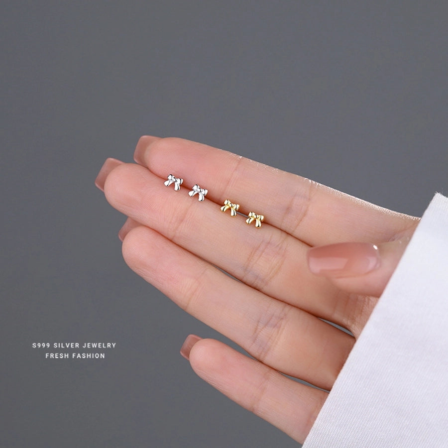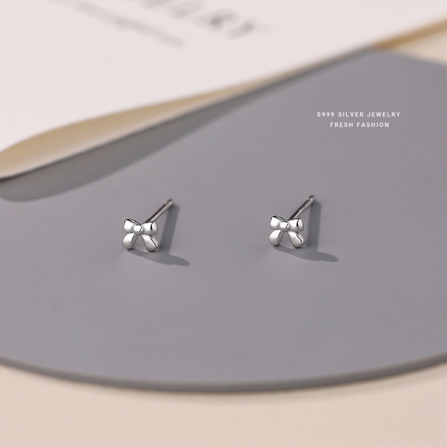 1 Pair S999 Silver 925 Sterling Silver Earrings Bow Knot Small Stud Earrings