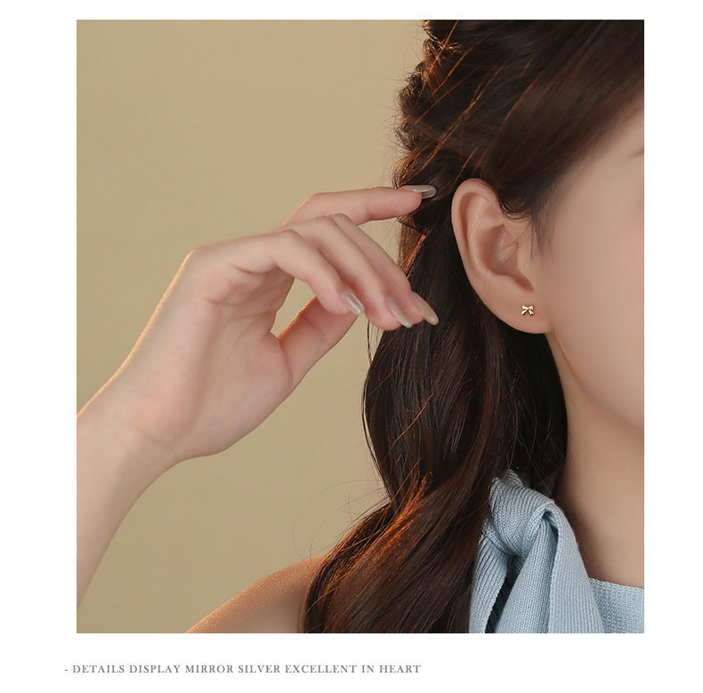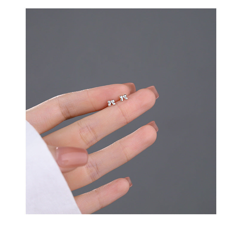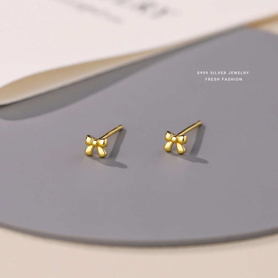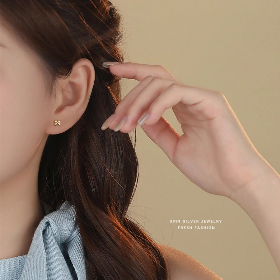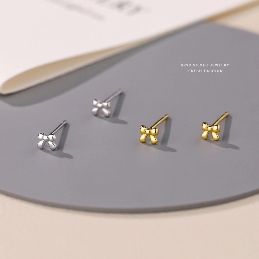 1 Pair S999 Silver 925 Sterling Silver Earrings Bow Knot Small Stud Earrings