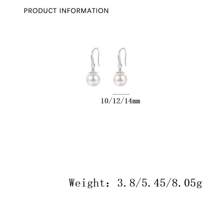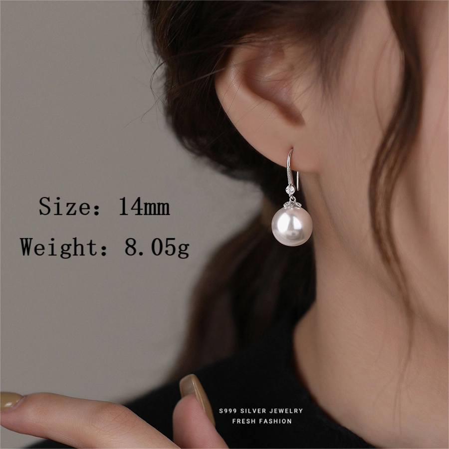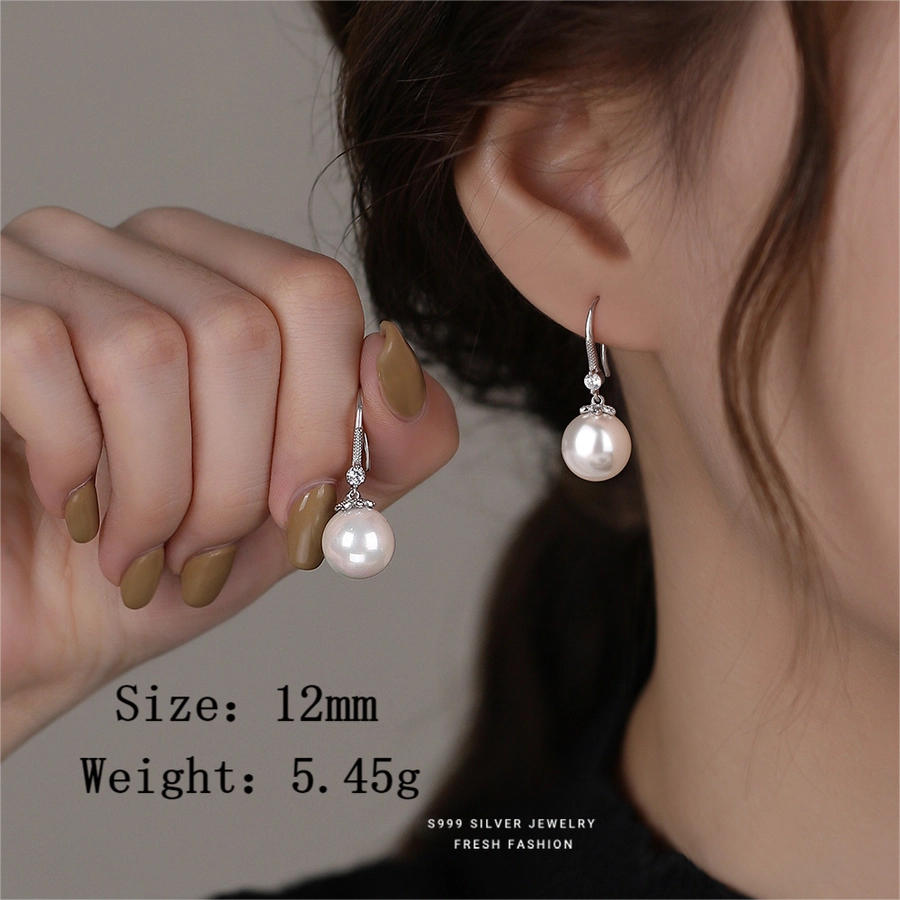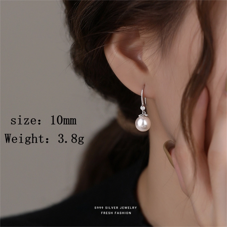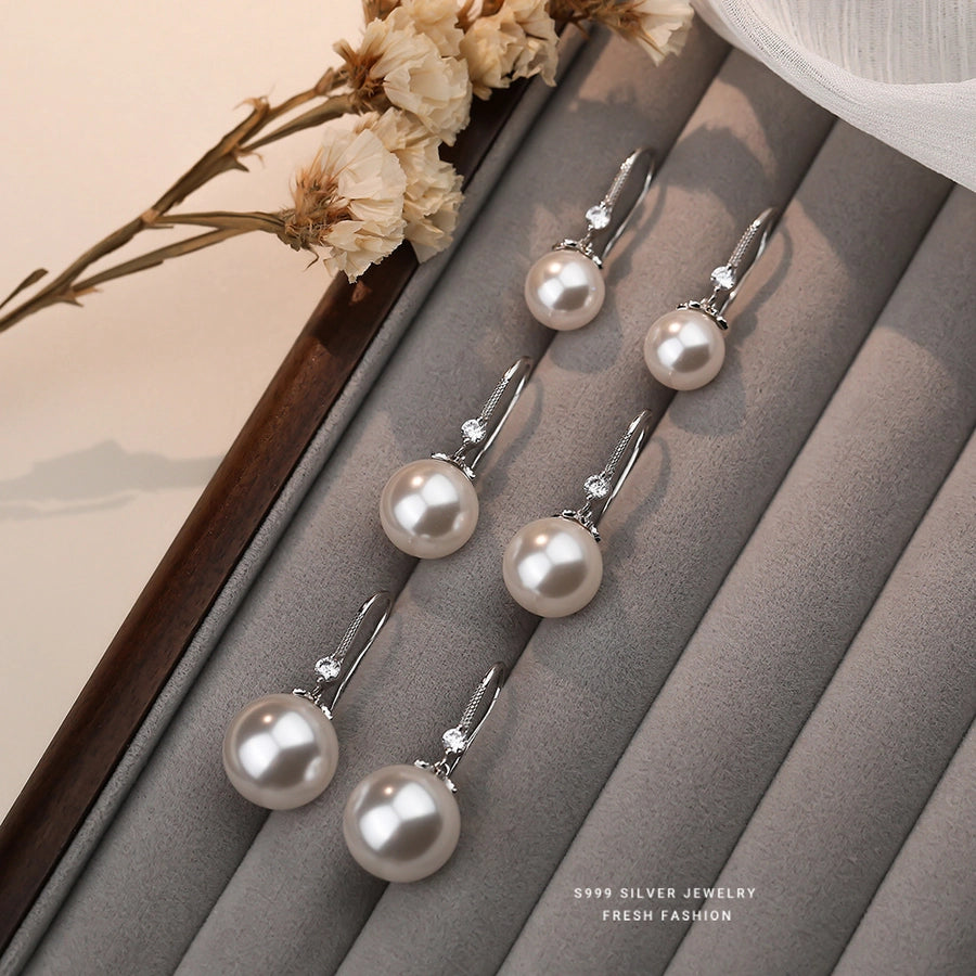 1 Pair S999 Silver Glass Bead Zircon 925 Sterling Silver Earrings Pearl Drop Earrings