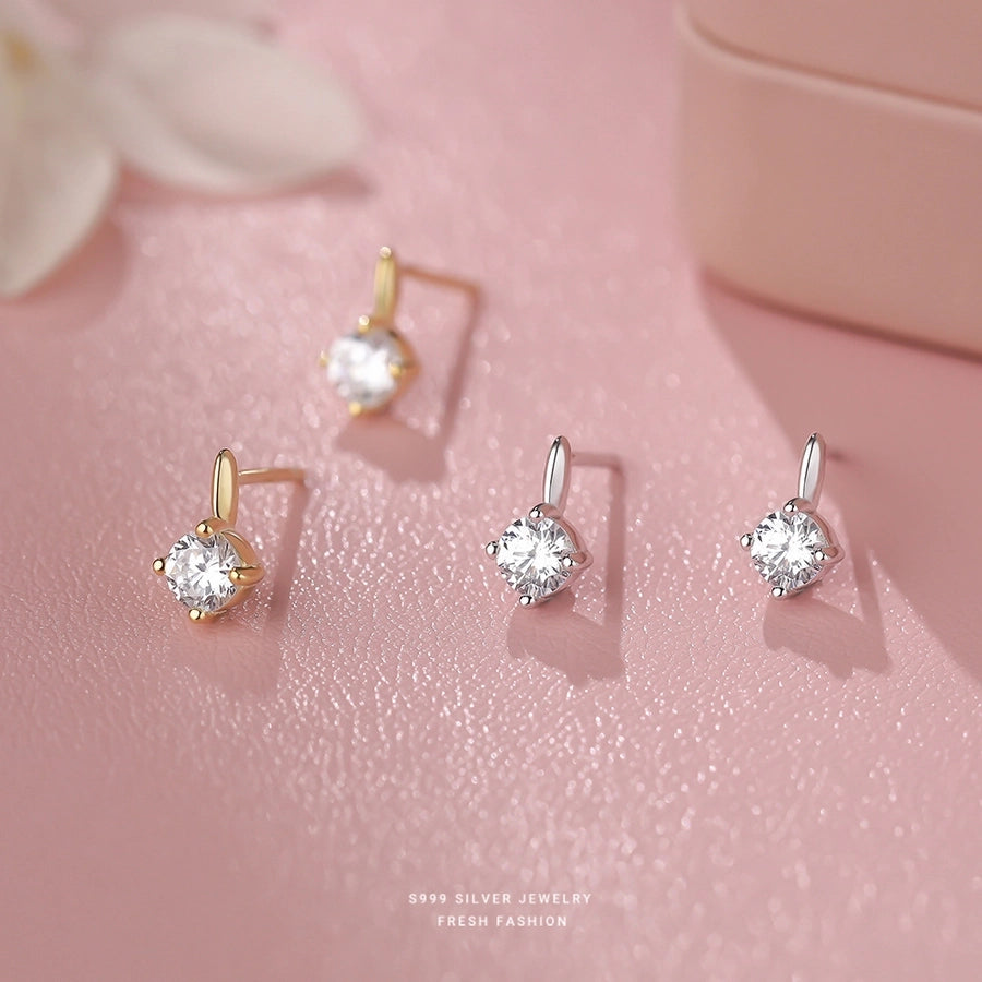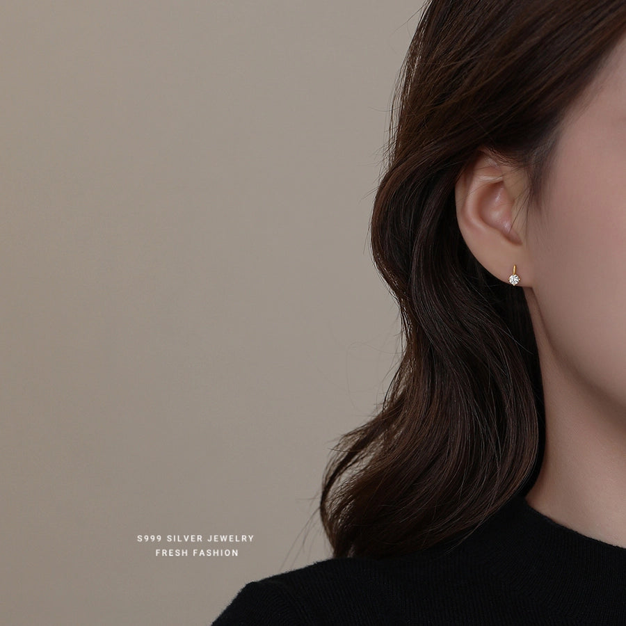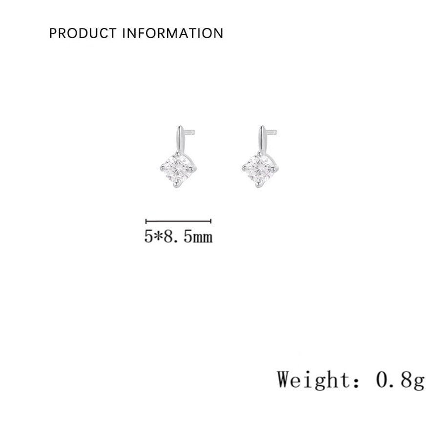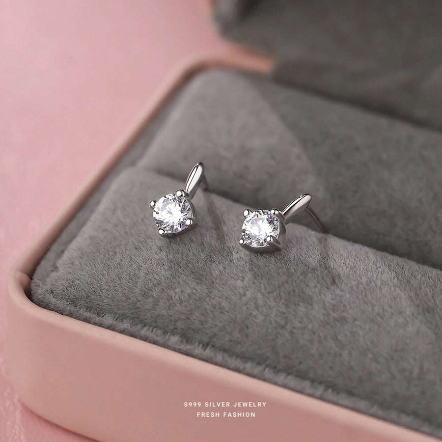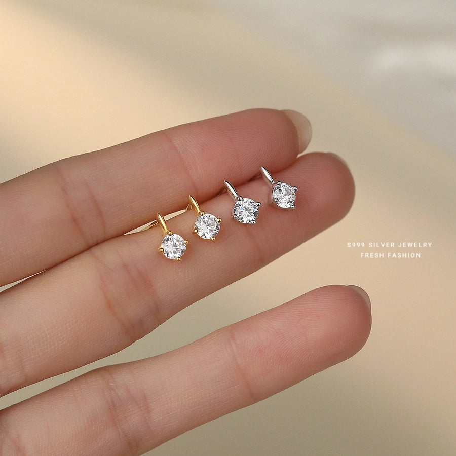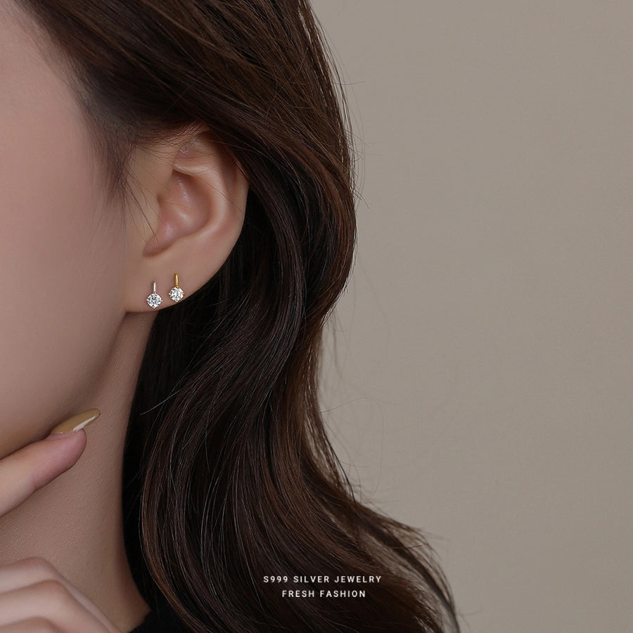 1 Pair S999 Silver Zircon 925 Sterling Silver Earrings Geometric Ear Studs