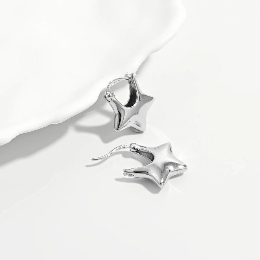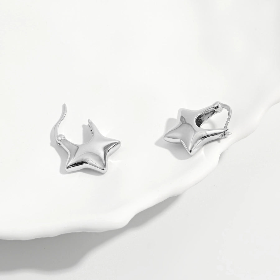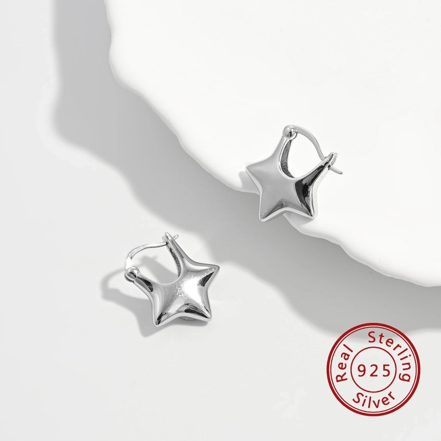1 Pair White Gold Plated 925 Sterling Silver 925 Sterling Silver Earrings Star Earrings