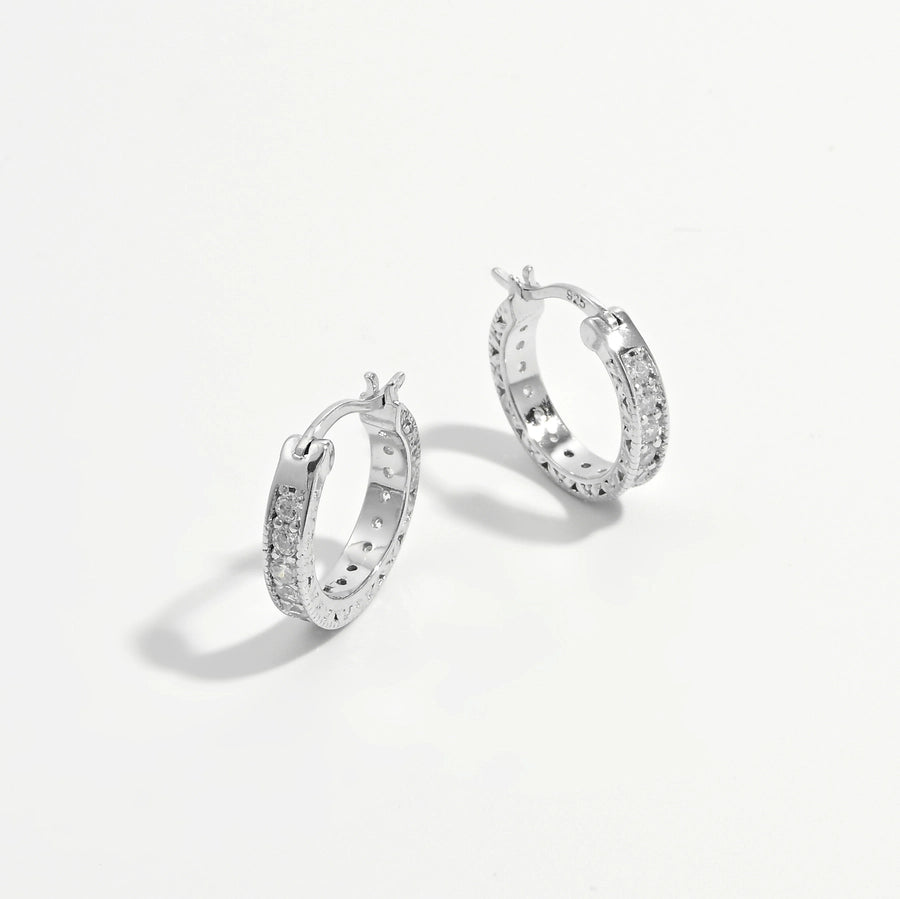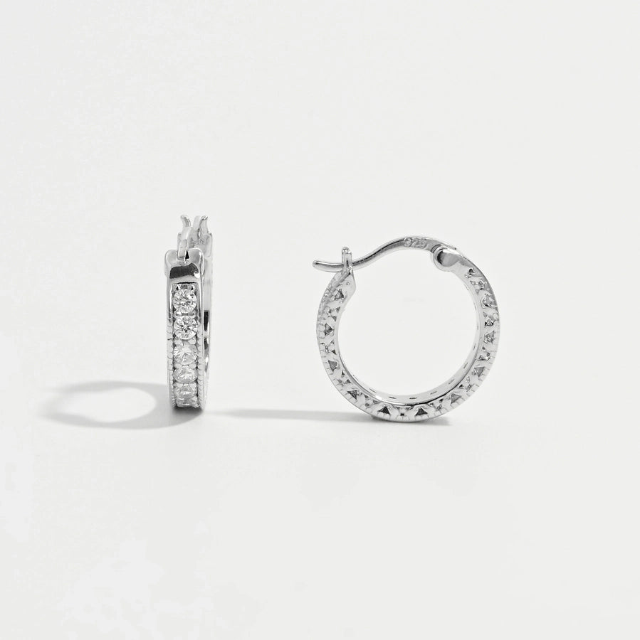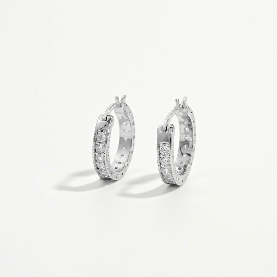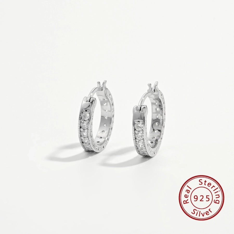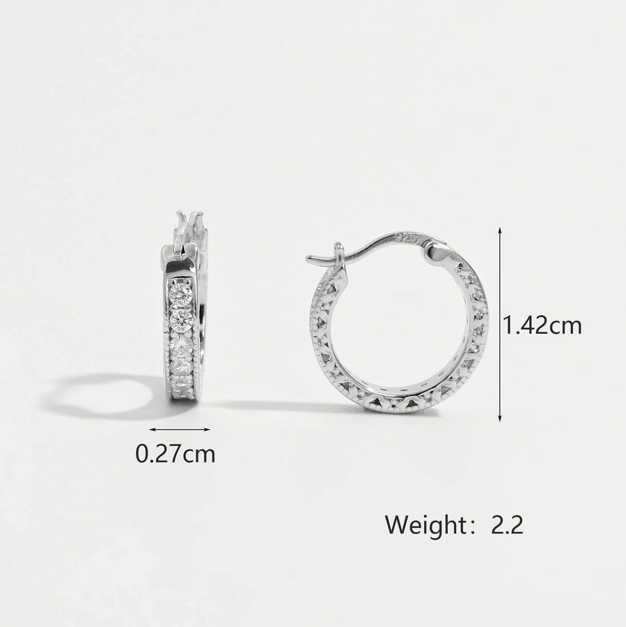 1 Pair White Gold Plated 925 Sterling Silver Zircon 925 Sterling Silver Earrings Round Hoop Earrings