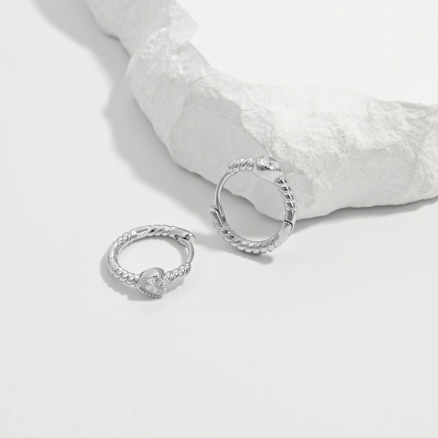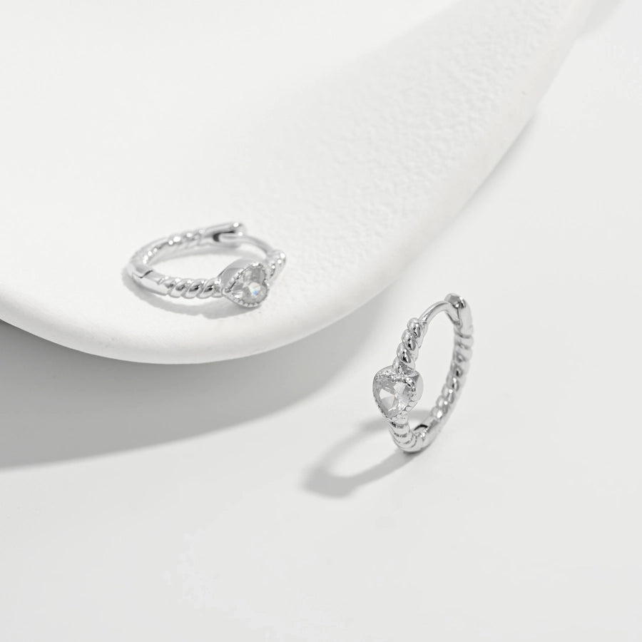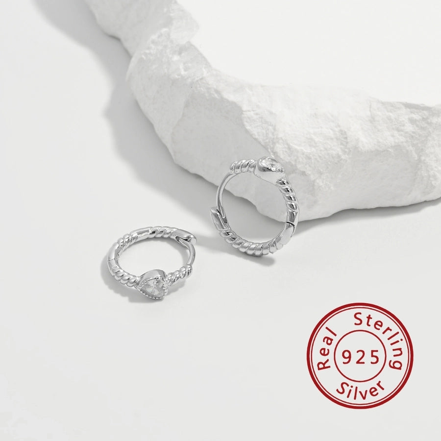 1 Pair White Gold Plated 925 Sterling Silver Zircon 925 Sterling Silver Earrings Round Hoop Earrings