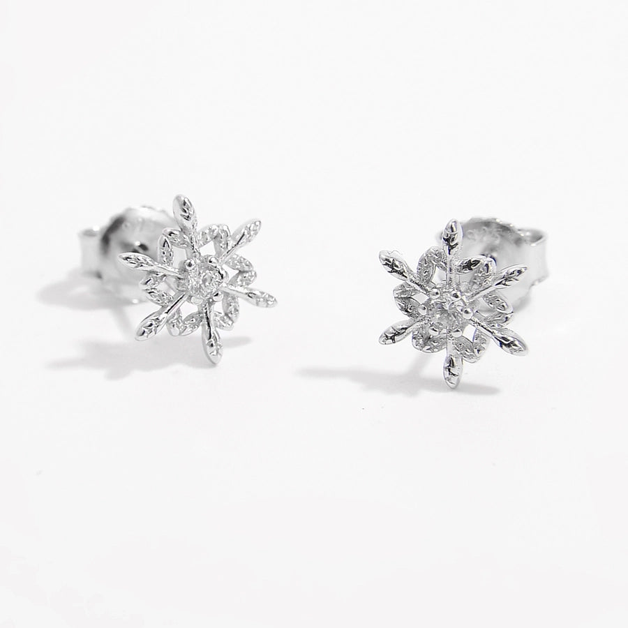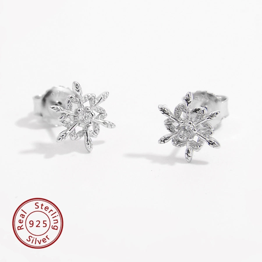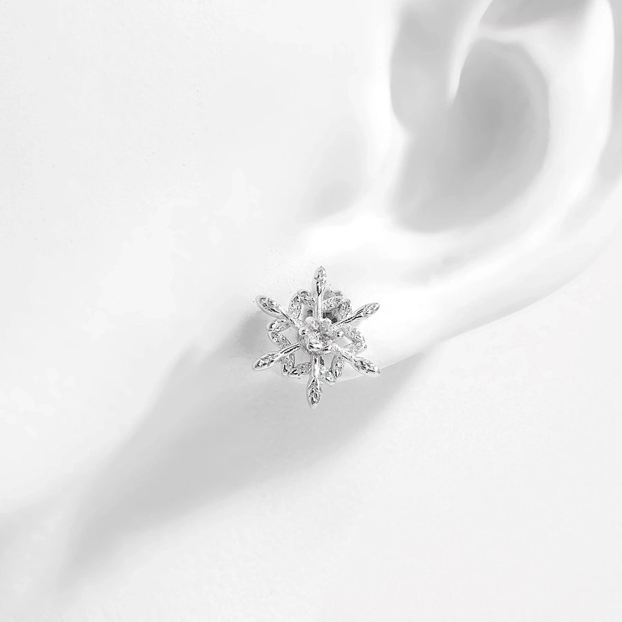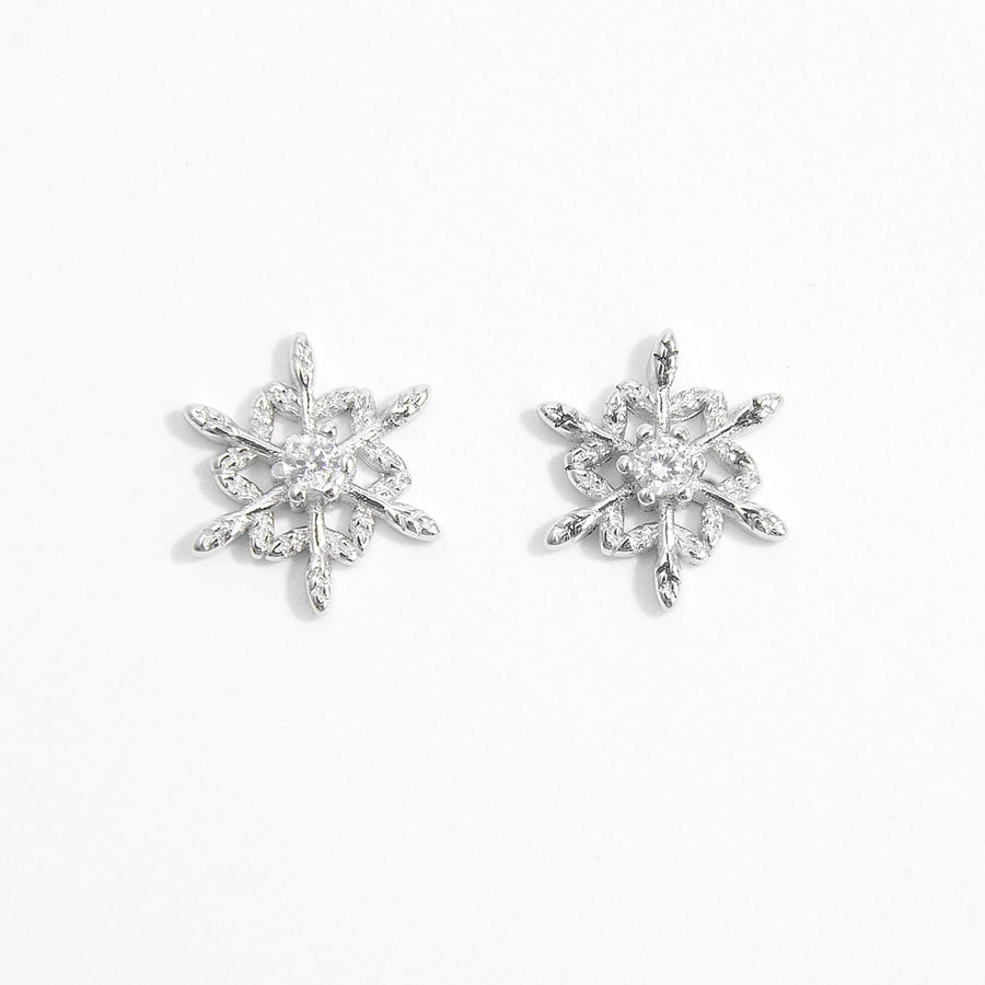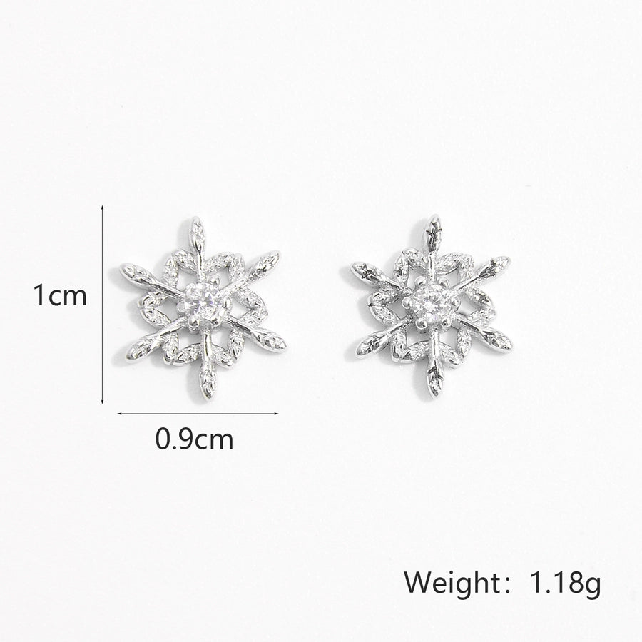 1 Pair White Gold Plated 925 Sterling Silver Zircon 925 Sterling Silver Earrings Snowflake Ear Studs