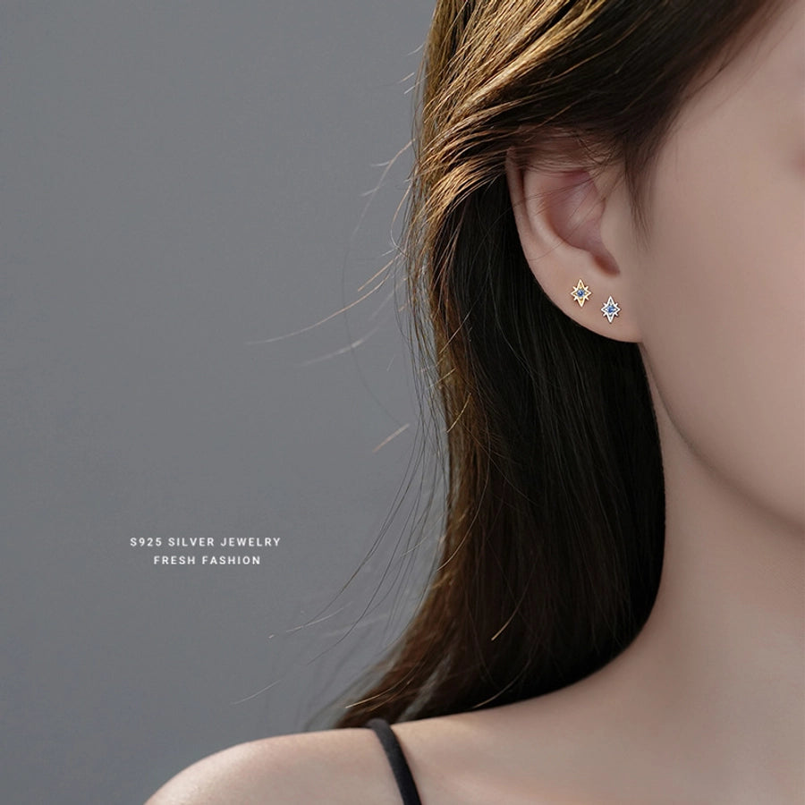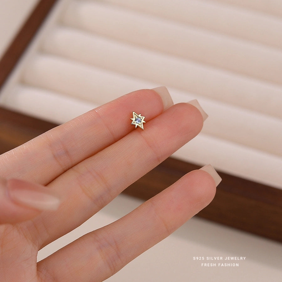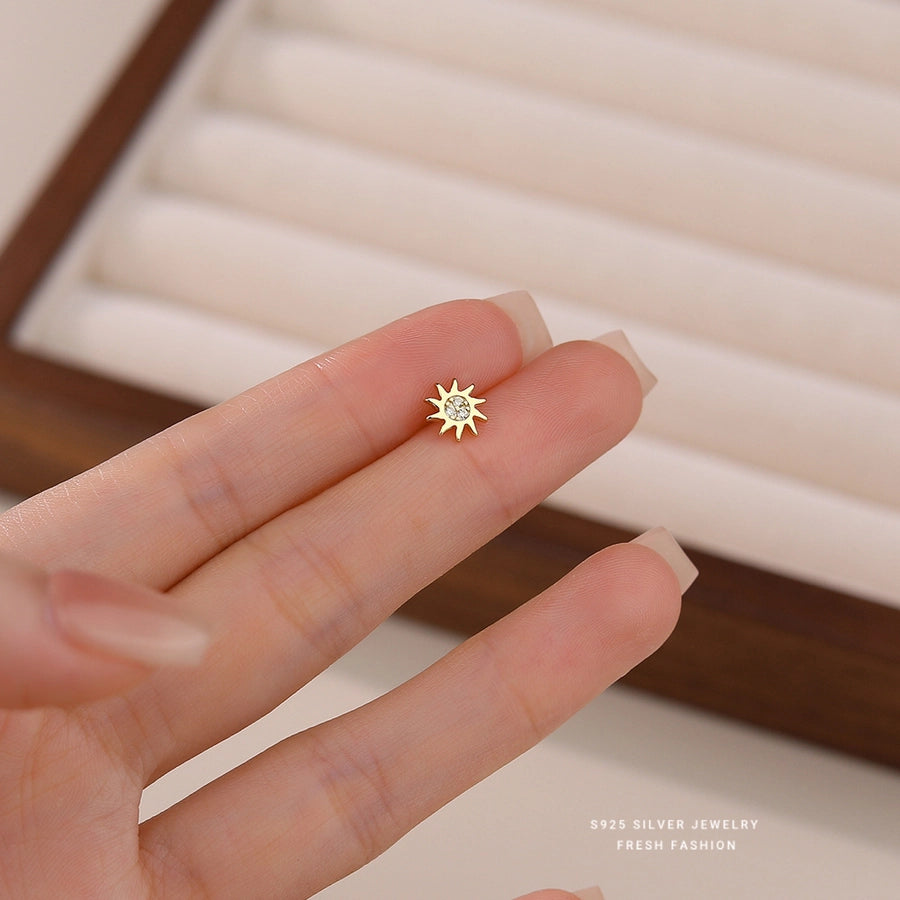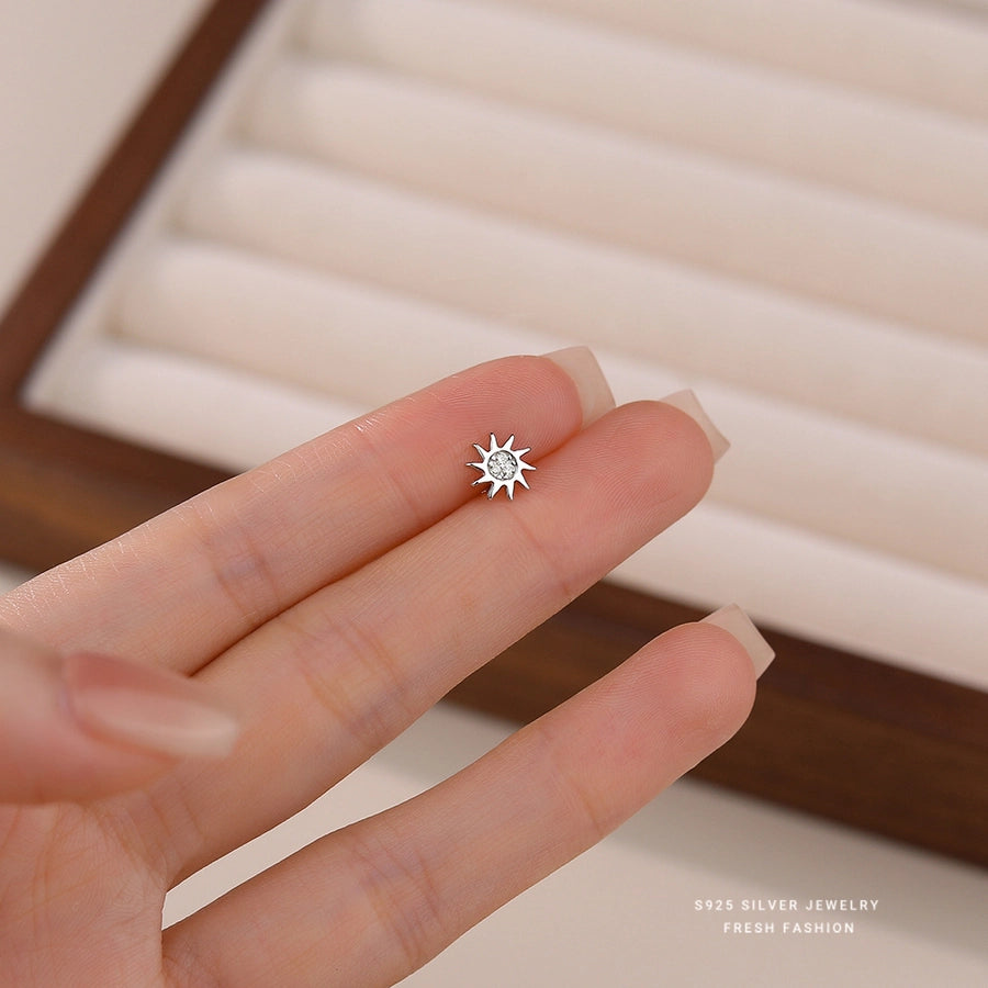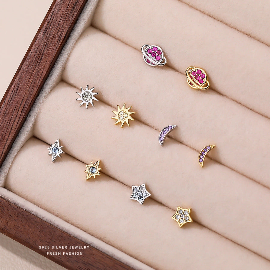 1 Piece 925 Sterling Silver 925 Sterling Silver Earrings Sun Star Moon Small Stud Earrings