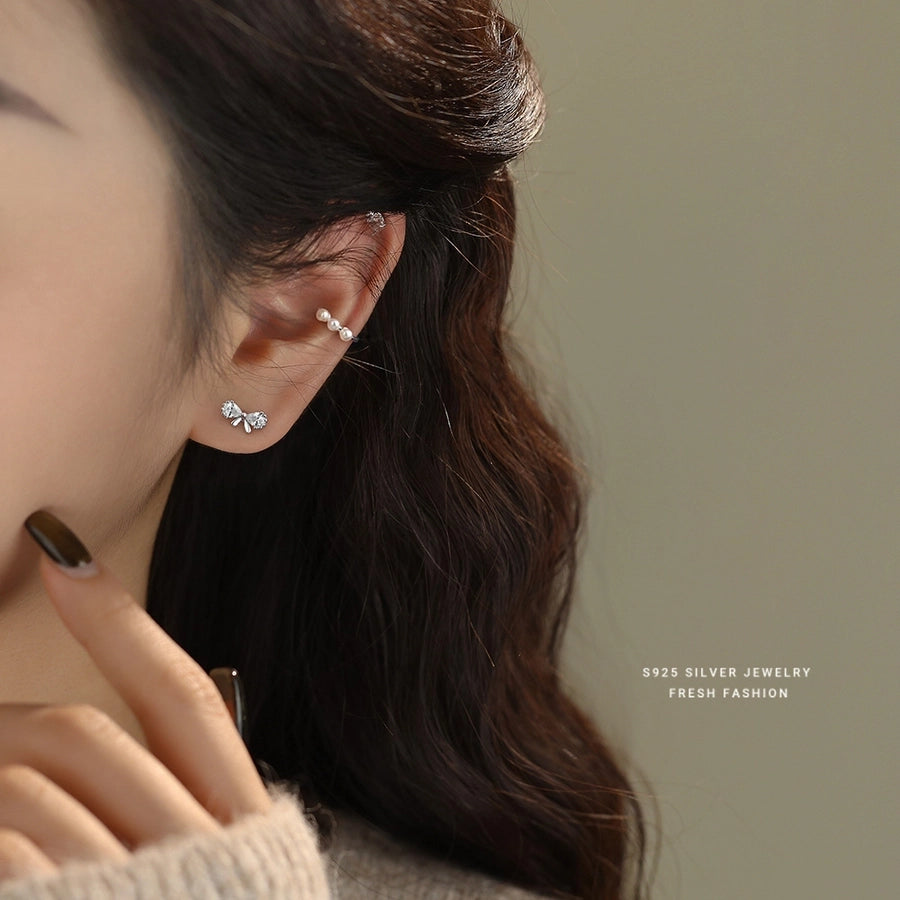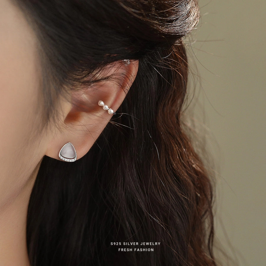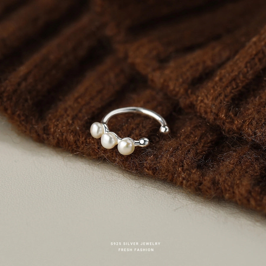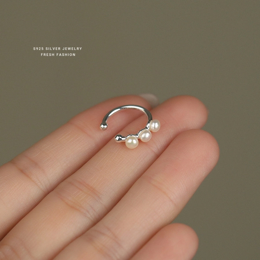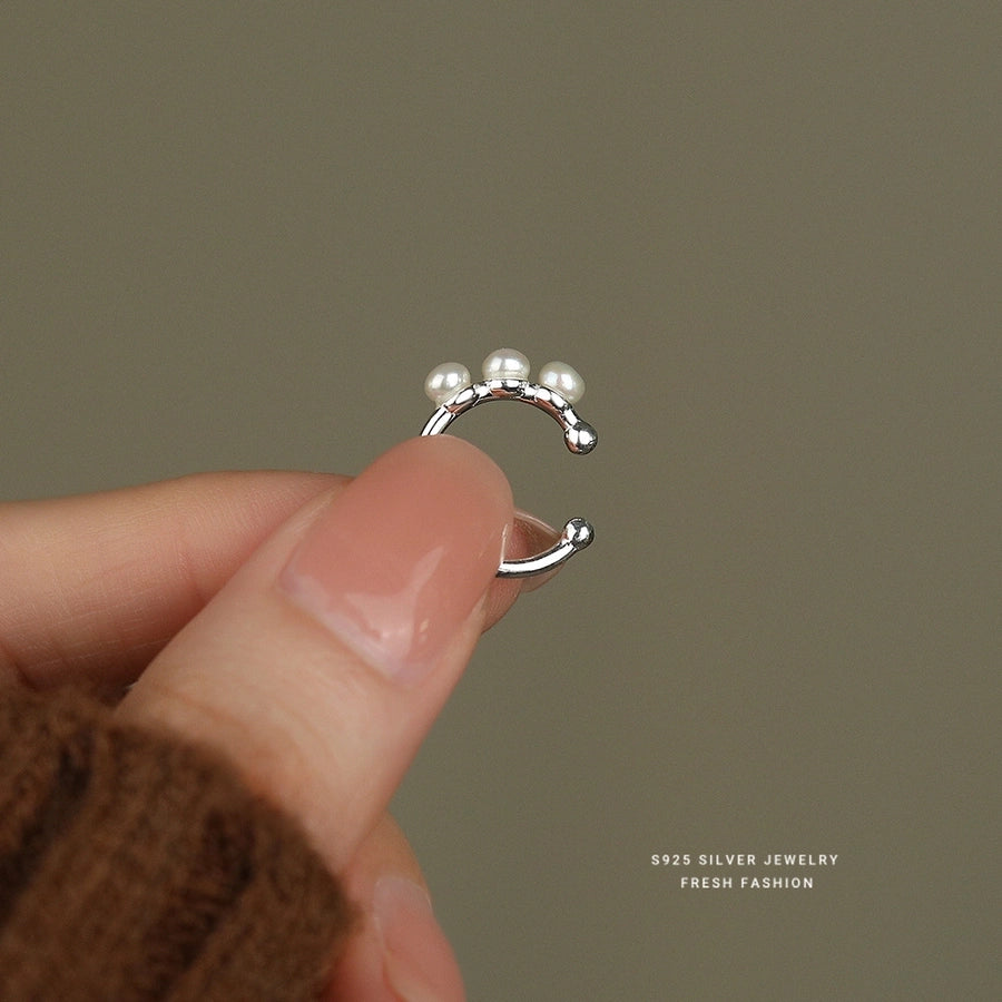 1 Piece 925 Sterling Silver Pearl 925 Sterling Silver Earrings Geometric Ear Cuffs
