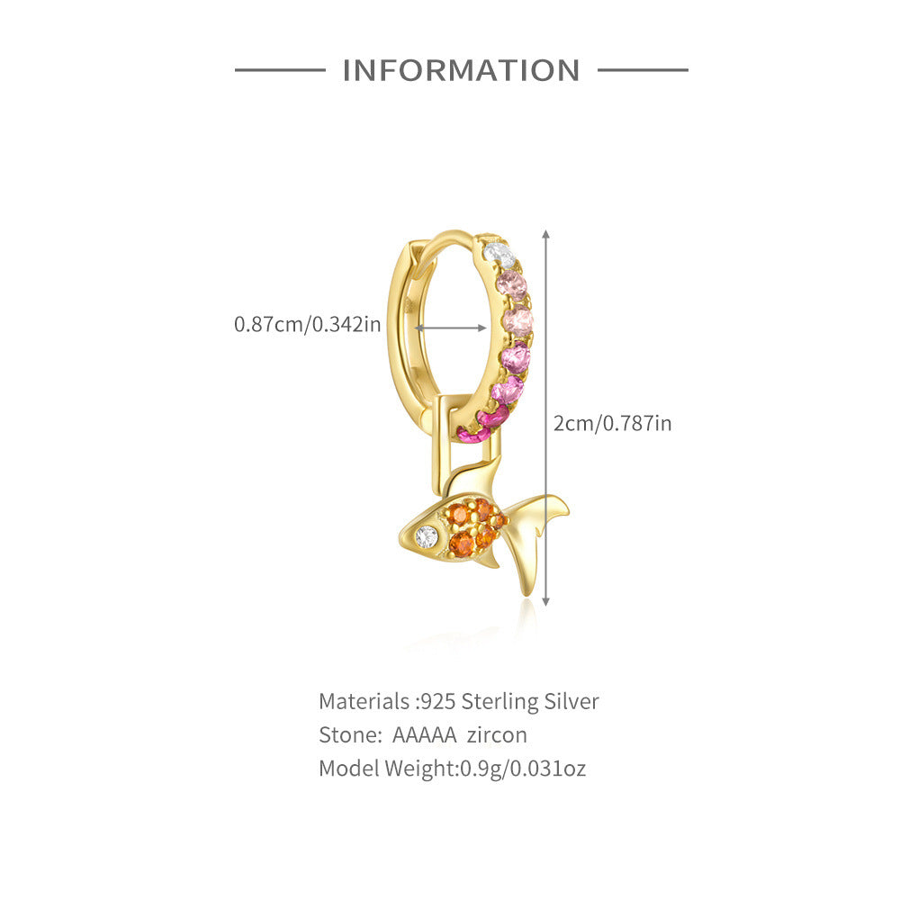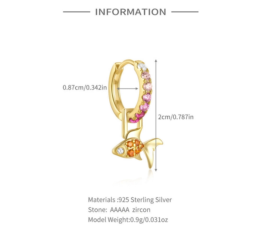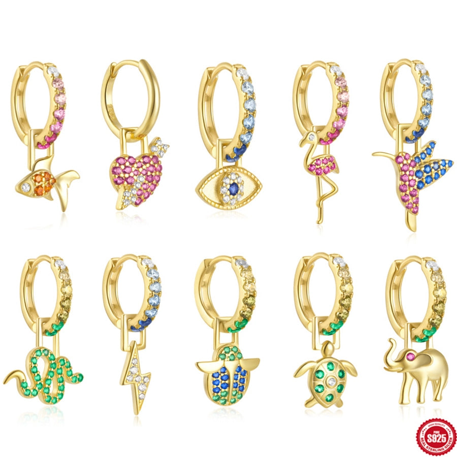 1 Piece 925 Sterling Silver Zircon 925 Sterling Silver Earrings Tortoise Devil's Eye Fish Drop Earrings