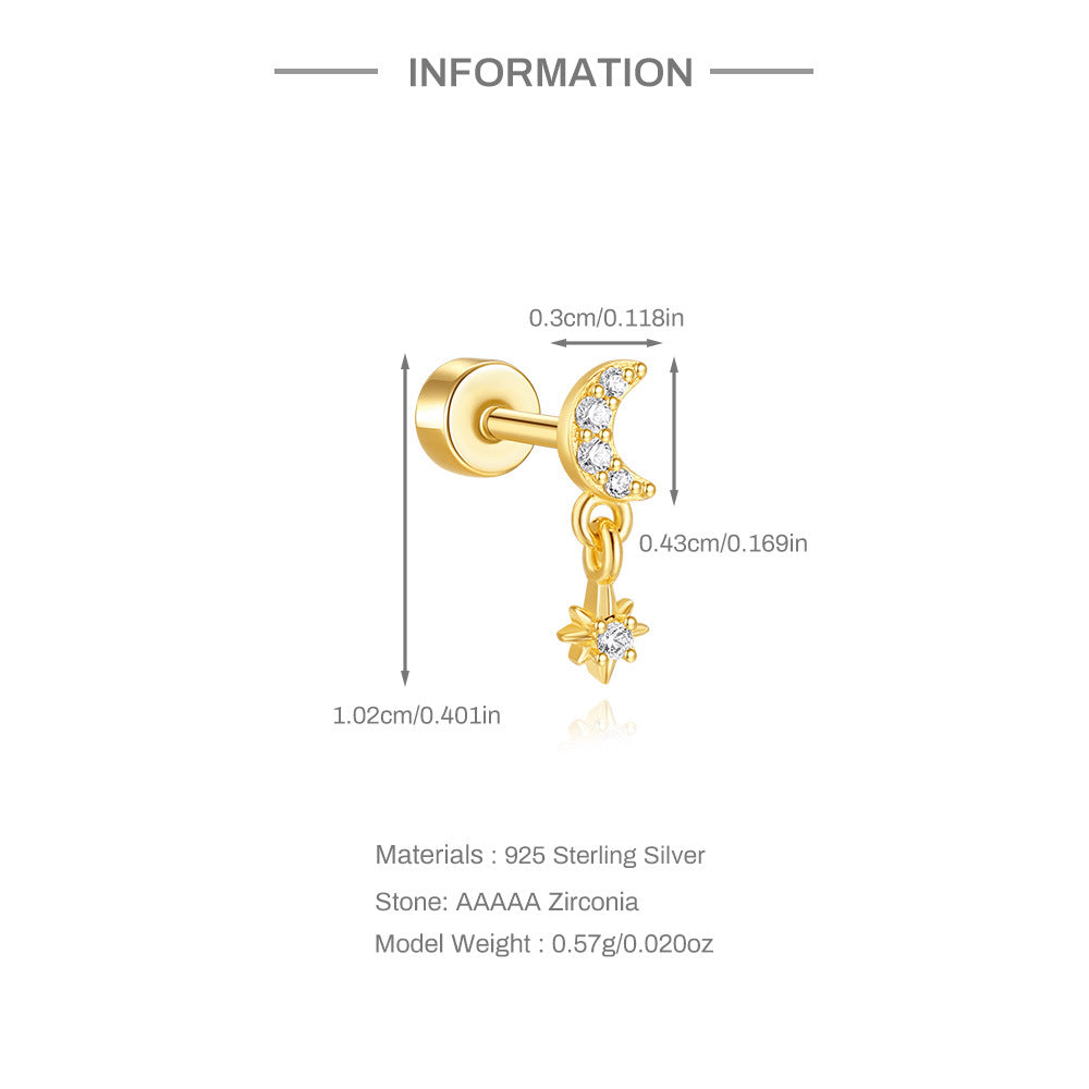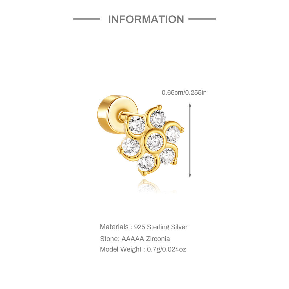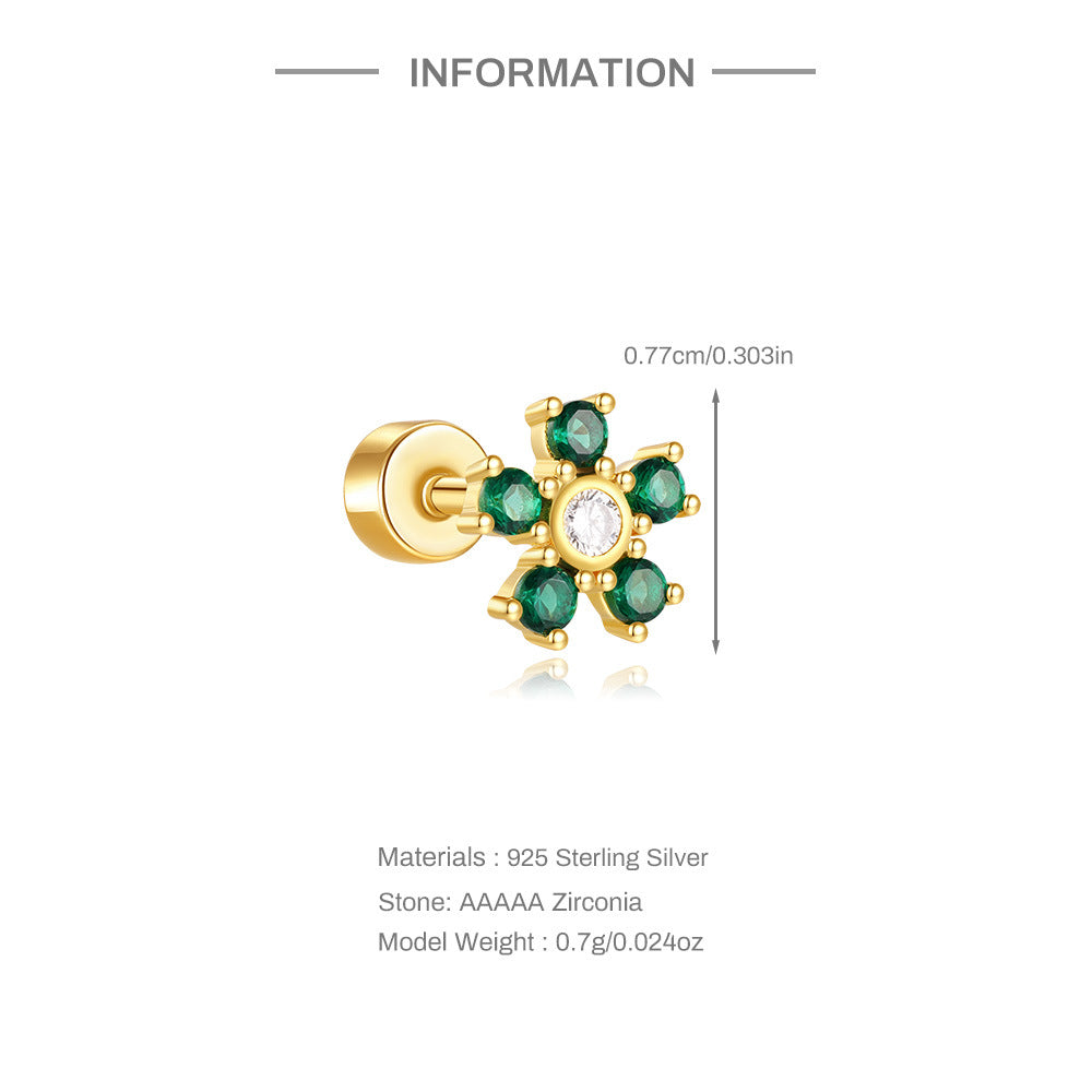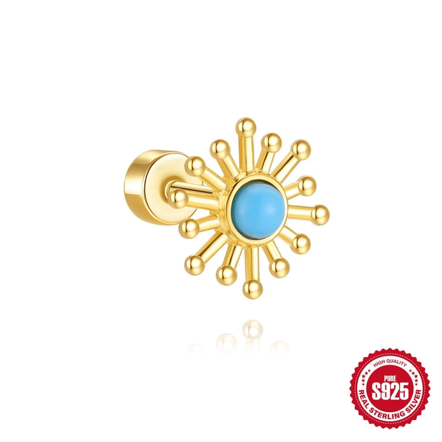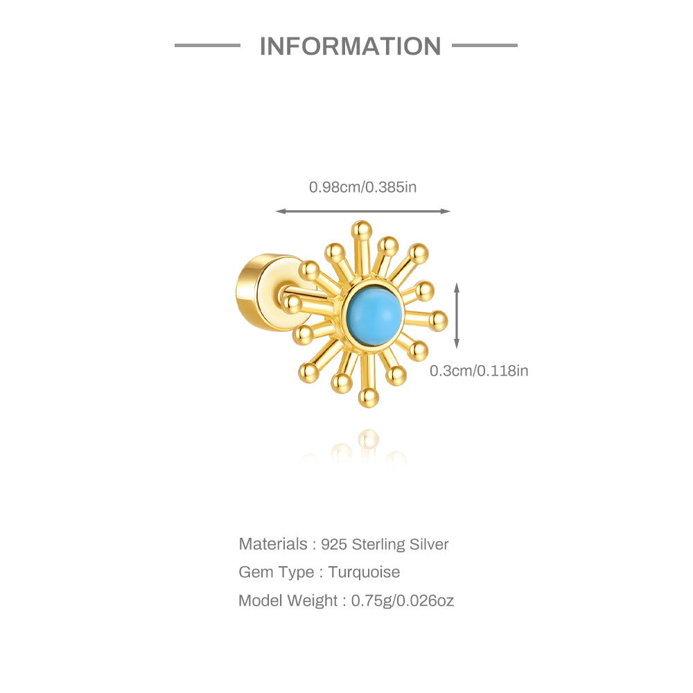 1 Piece Ear Cartilage Rings & Studs Cute Geometric 925 Sterling Silver Turquoise Zircon Ear Cartilage Rings & Studs