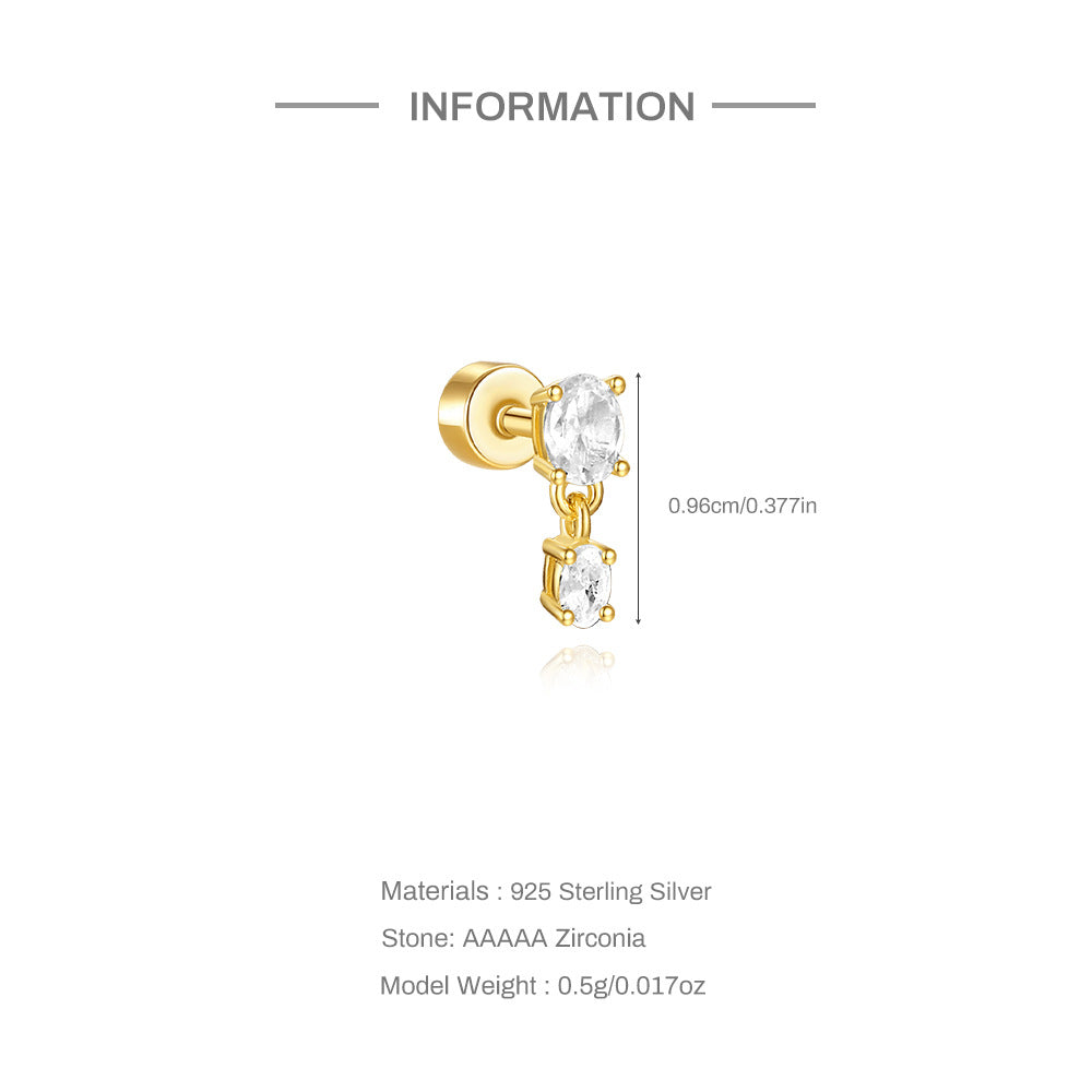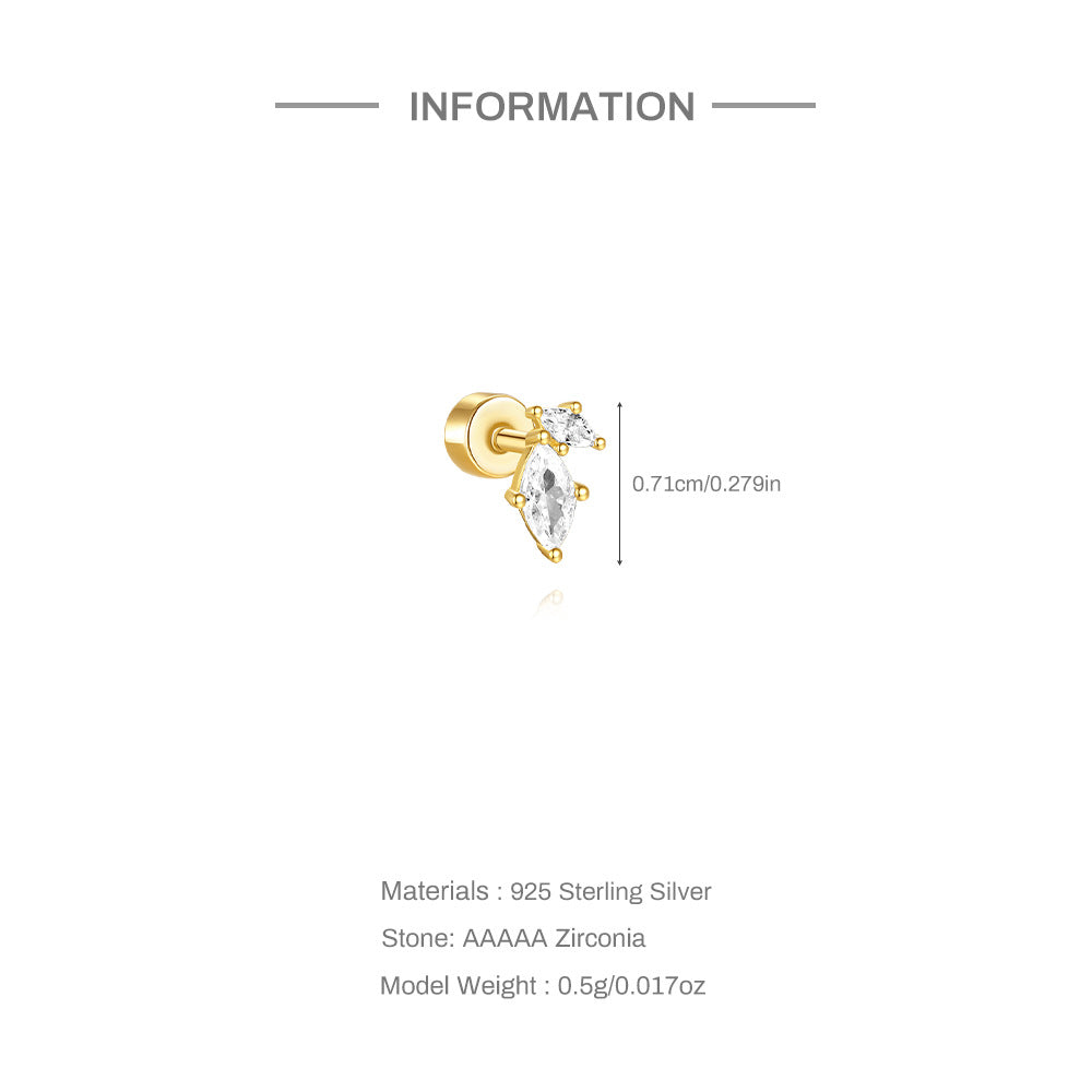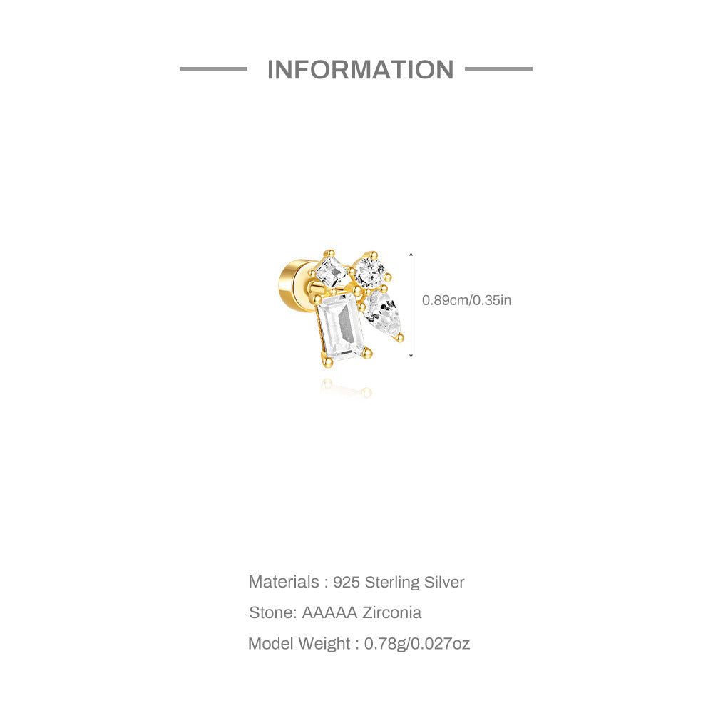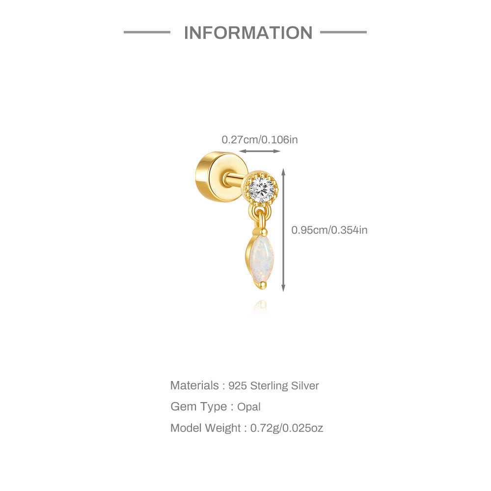 1 Piece Ear Cartilage Rings & Studs Simple Style Classic Style Geometric 925 Sterling Silver Opal Zircon Ear Cartilage Rings & Studs