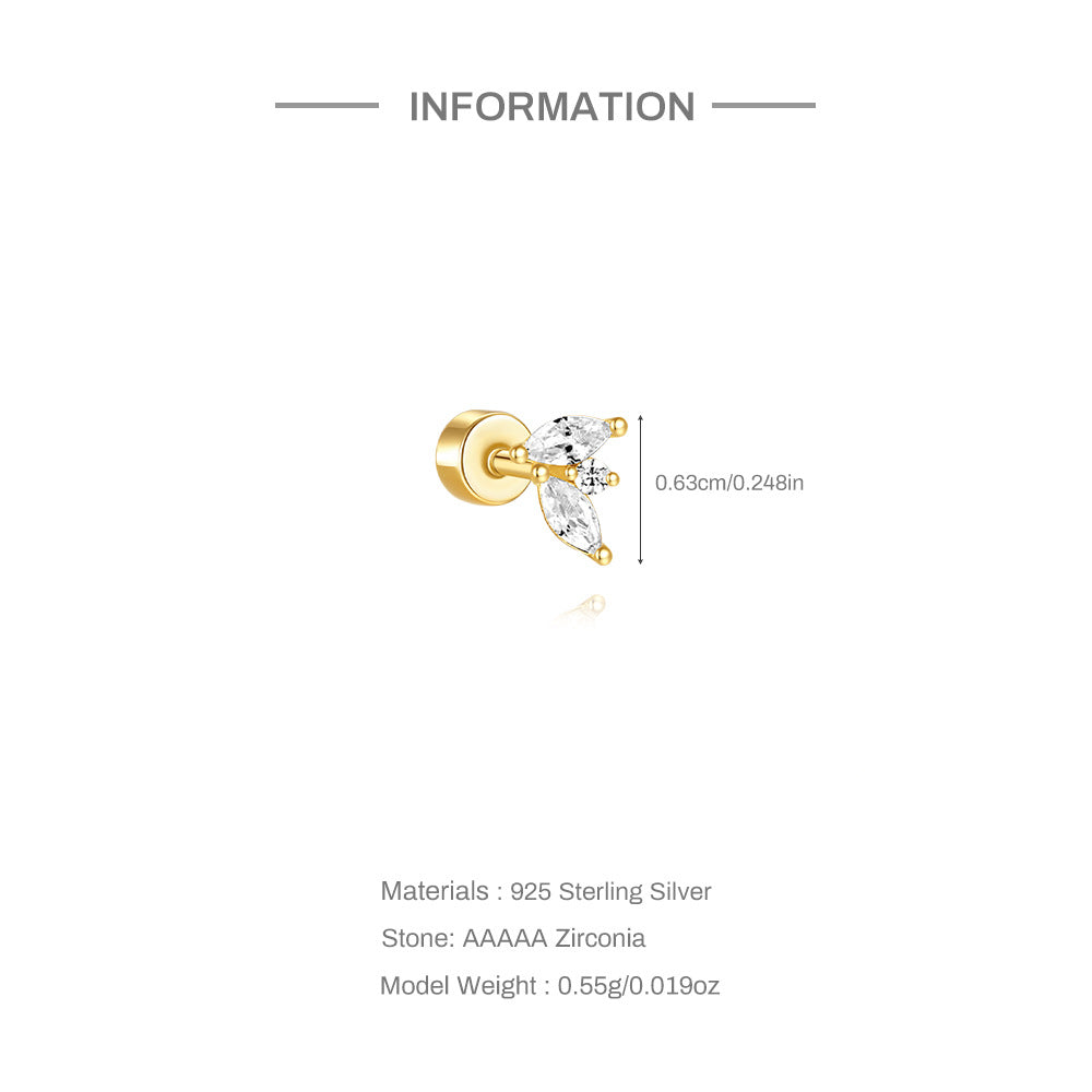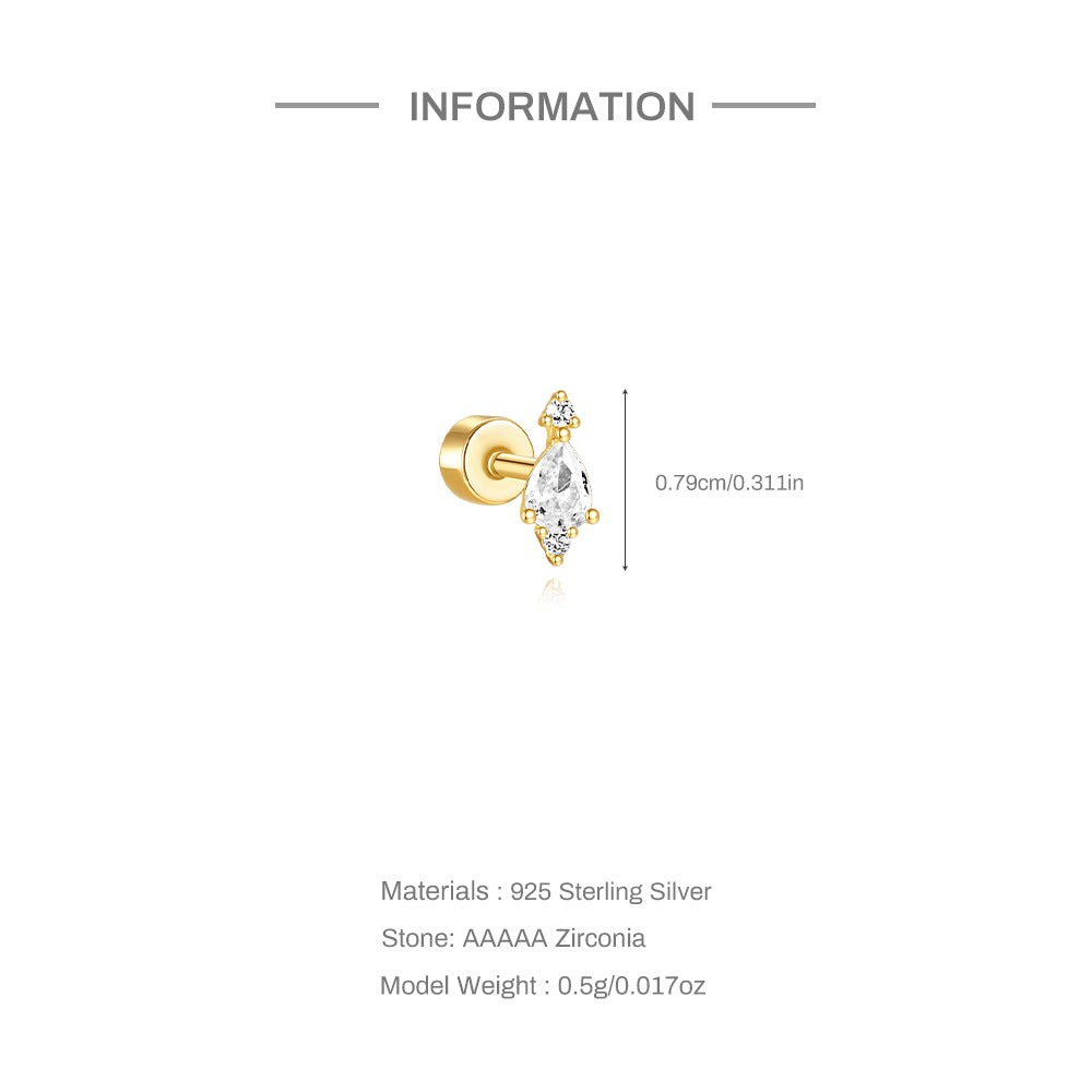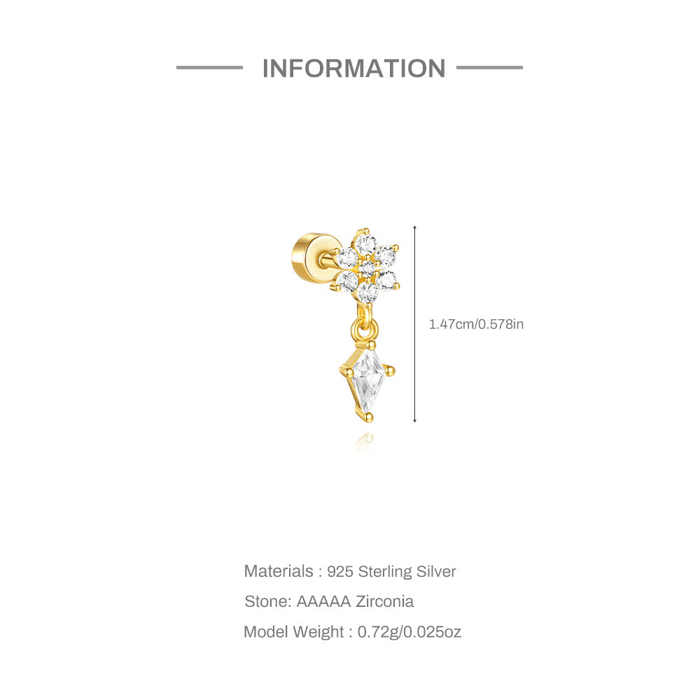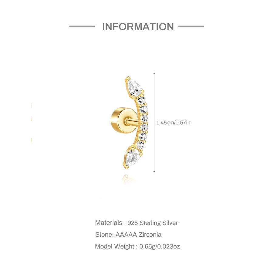 1 Piece Ear Cartilage Rings & Studs Simple Style Classic Style Geometric 925 Sterling Silver Opal Zircon Ear Cartilage Rings & Studs