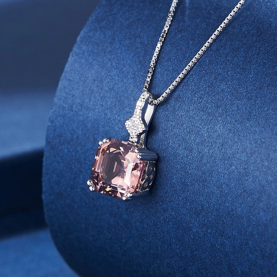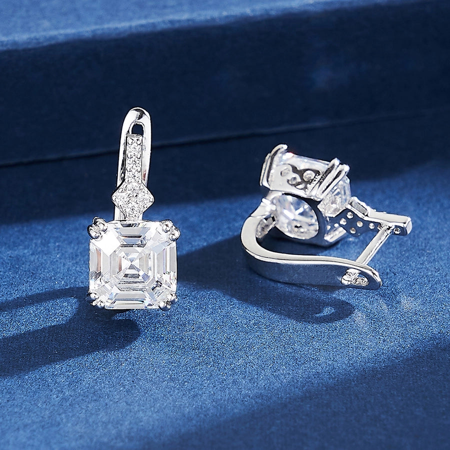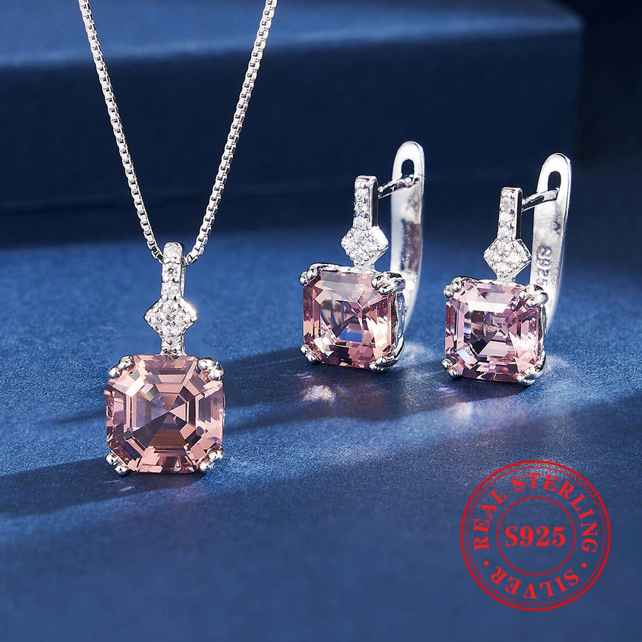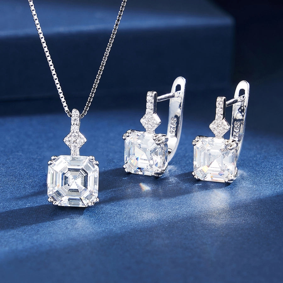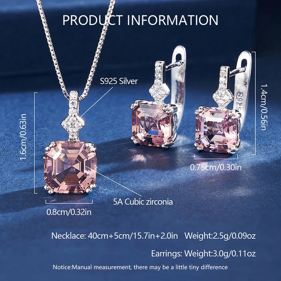 1 Set Luxury 925 Sterling Silver High Quality Zircon Necklace and Earrings Suit Inlaid Shiny Square Cut 5A Square Crystal Zircon Elegant Jewelry Suitable for Women to Wear on Date/Wedding/Engagement/Anniversary/Valentine's Day