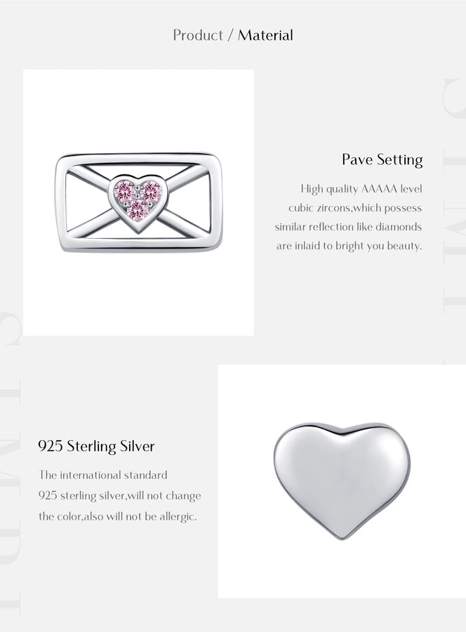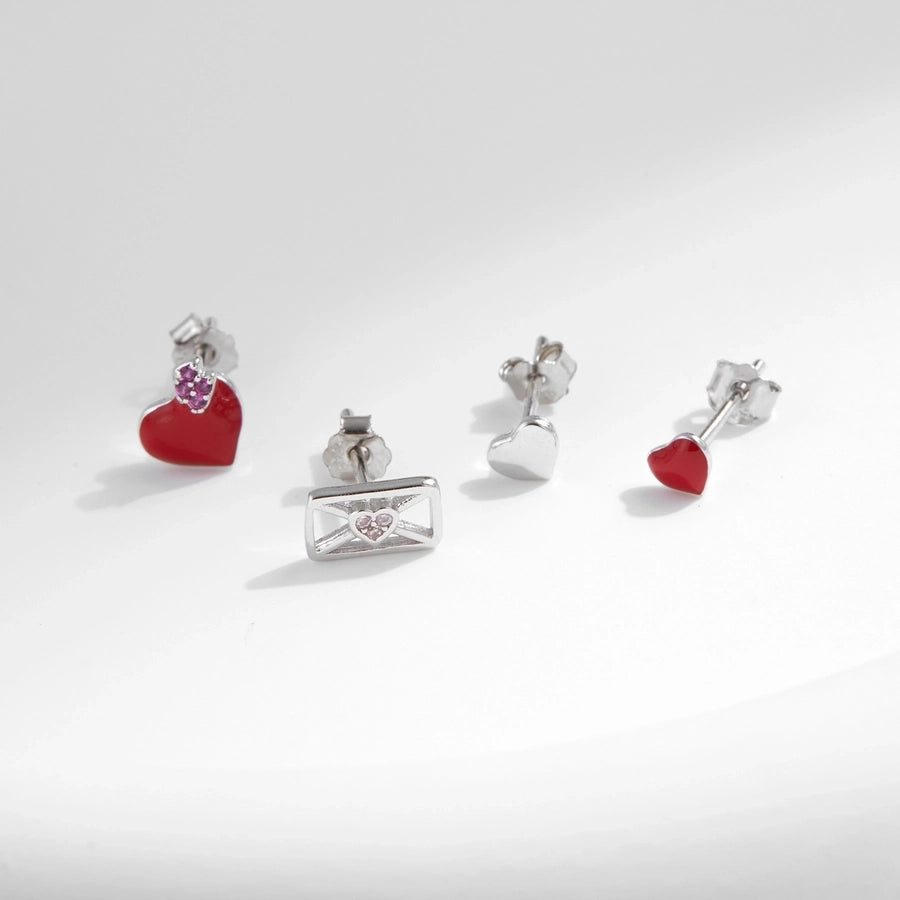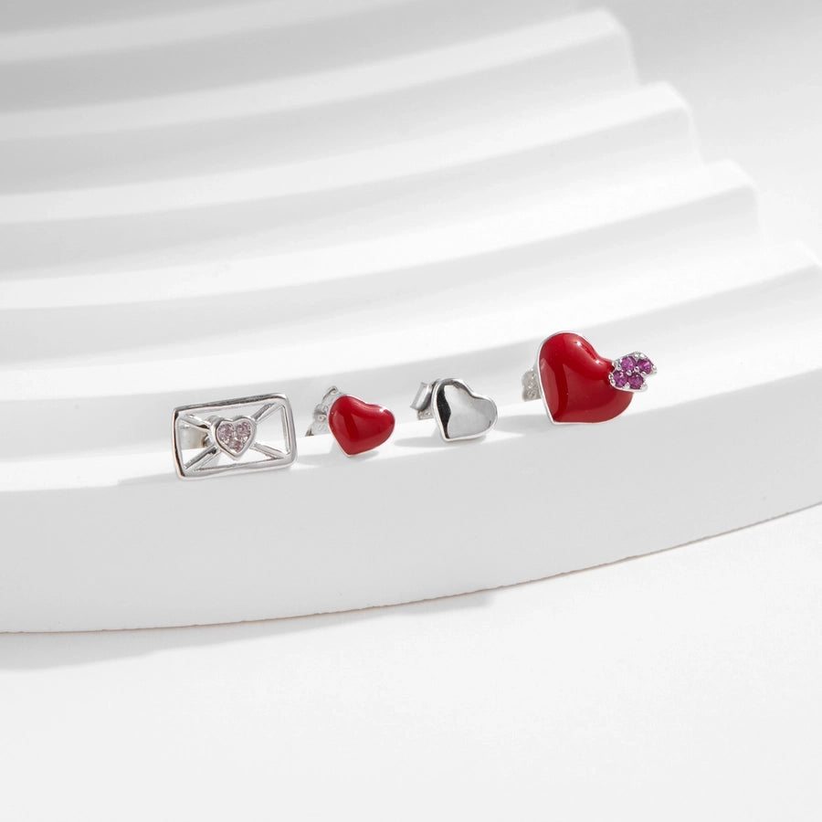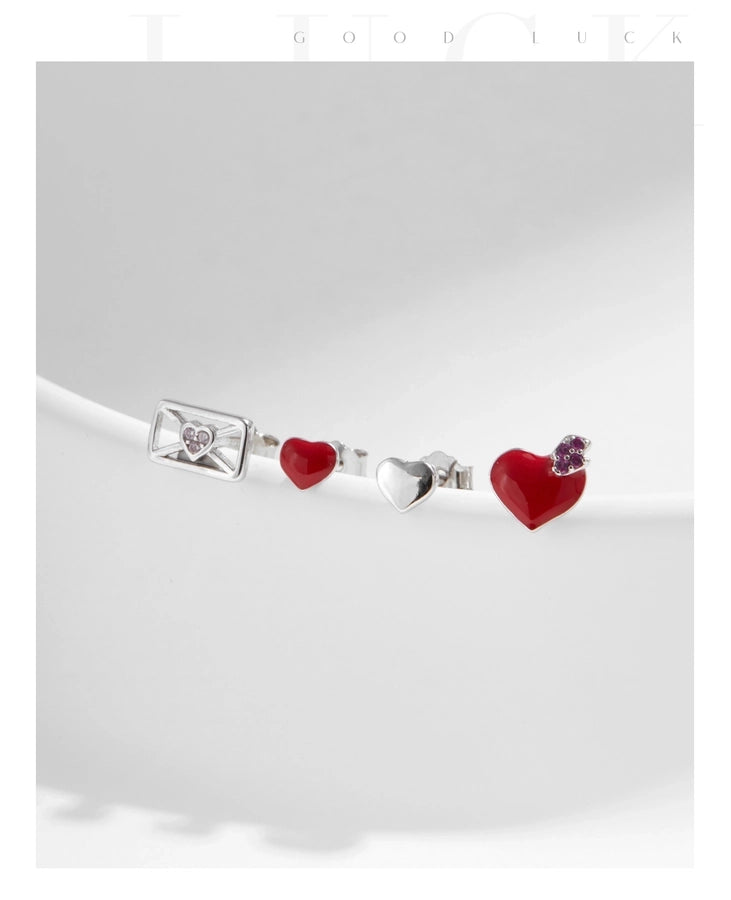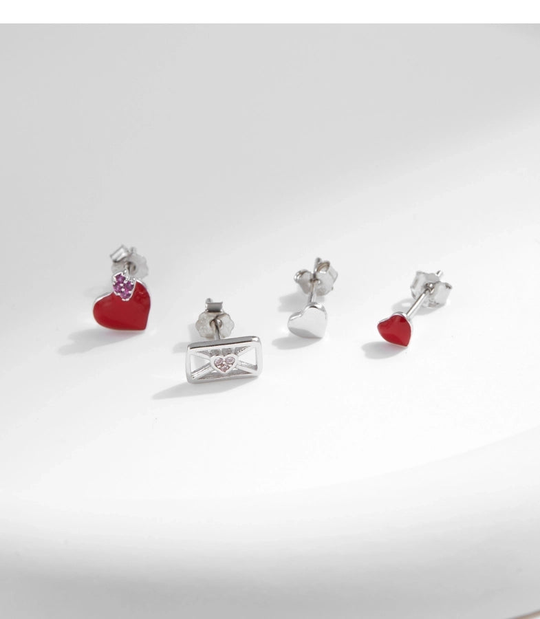1 Set Rhodium Plated 925 Sterling Silver Zircon 925 Sterling Silver Earrings envelope Heart Shape Ear Studs
