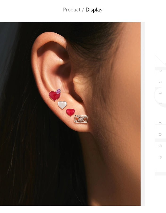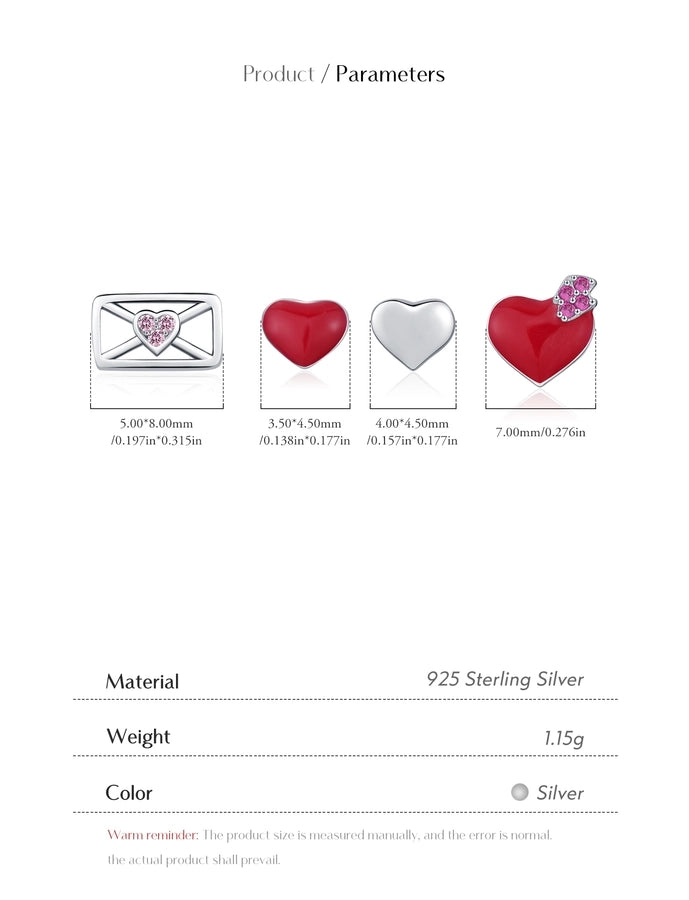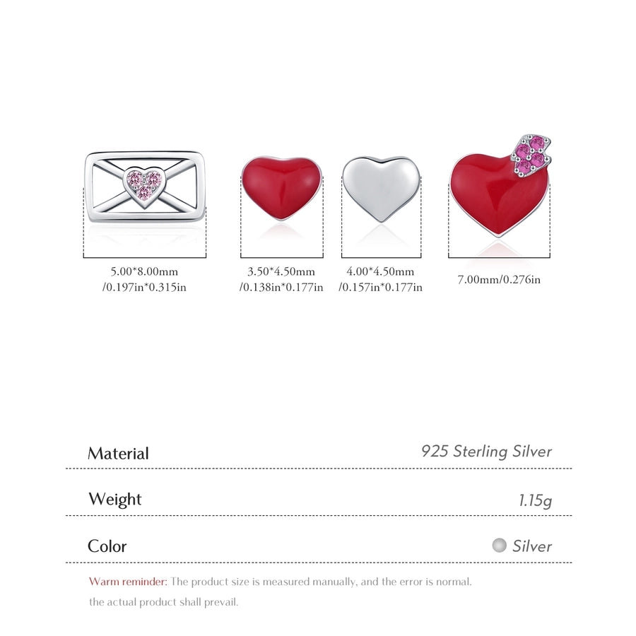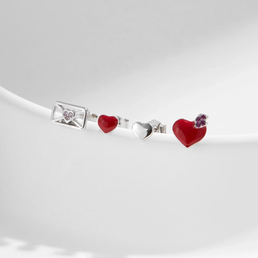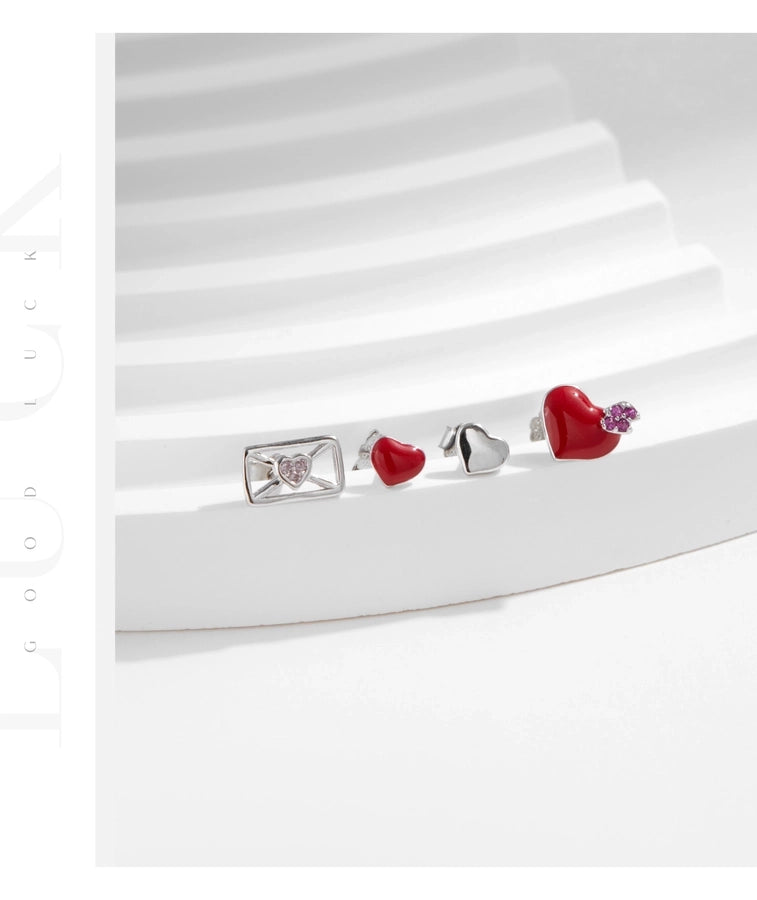 1 Set Rhodium Plated 925 Sterling Silver Zircon 925 Sterling Silver Earrings envelope Heart Shape Ear Studs