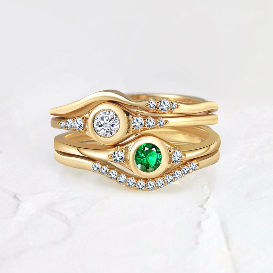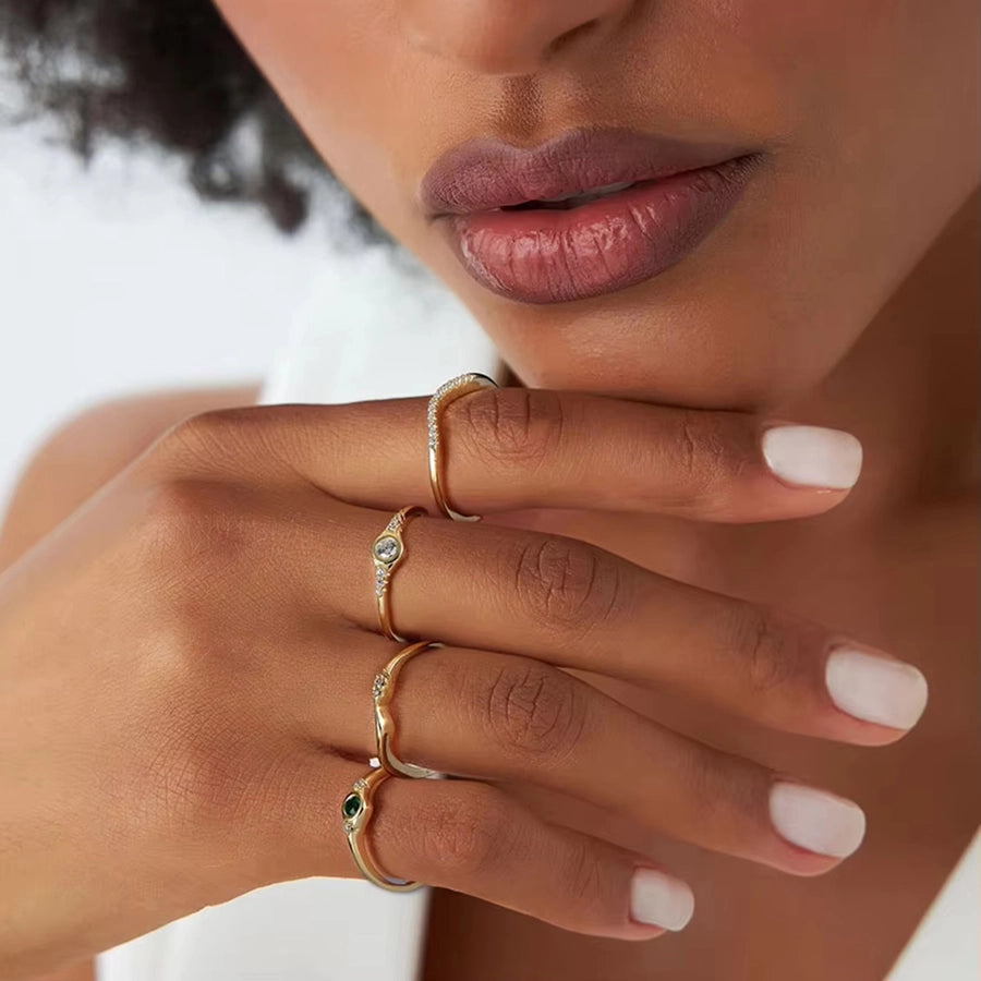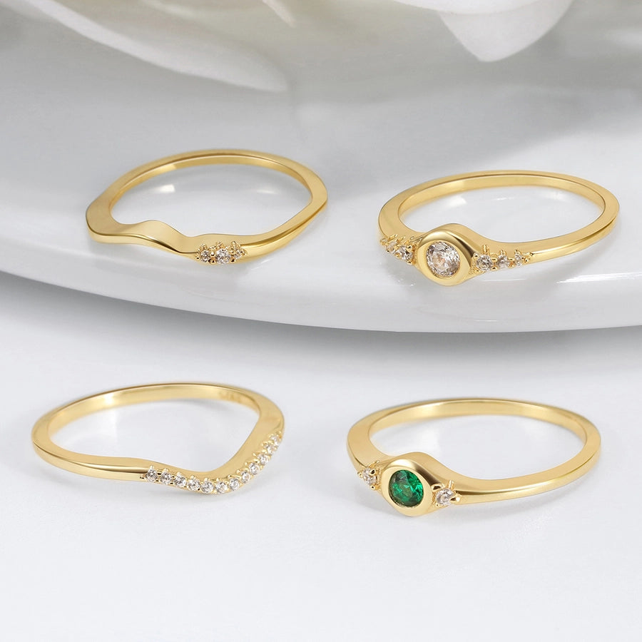 14K Gold Plated White Gold Plated 925 Sterling Silver Zircon Geometric Rings 925 Sterling Silver Rings
