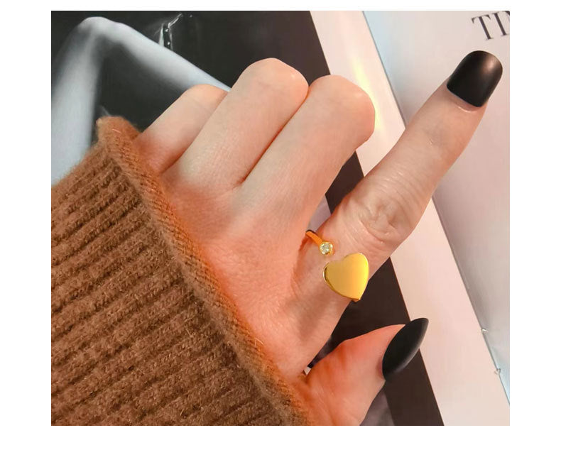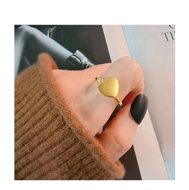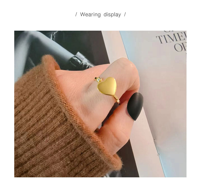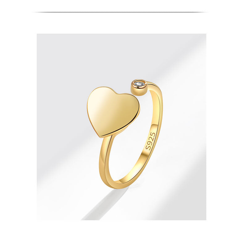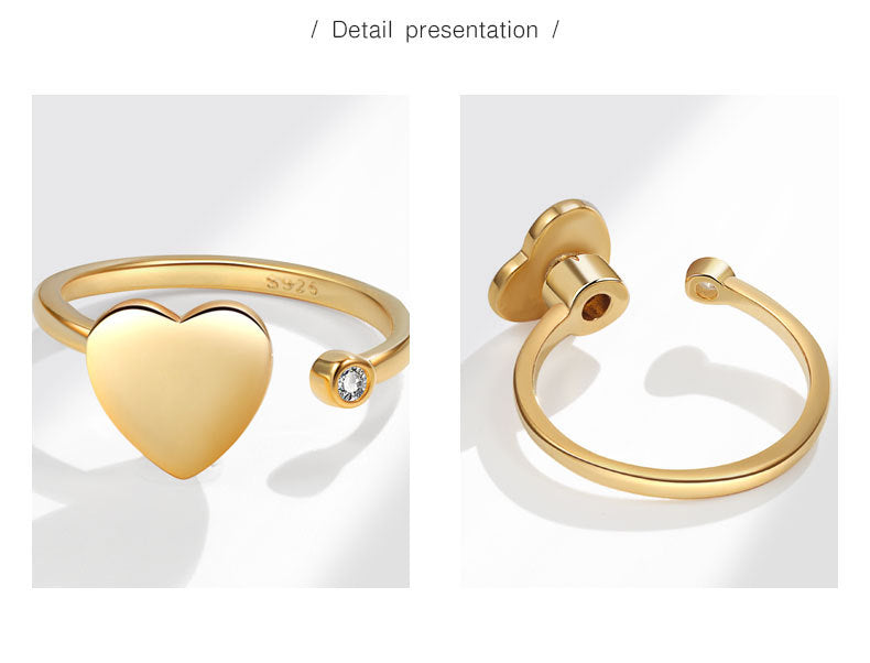 18K Gold Plated 925 Sterling Silver Zircon Heart Shape Open Rings Anxiety Ring 925 Sterling Silver Rings