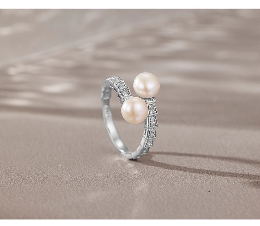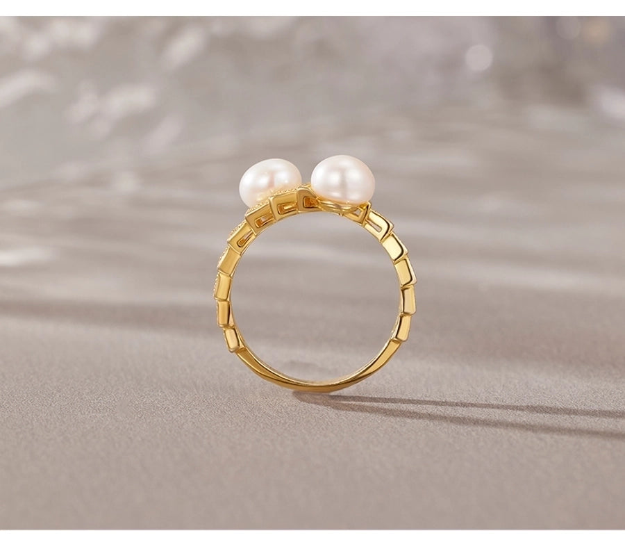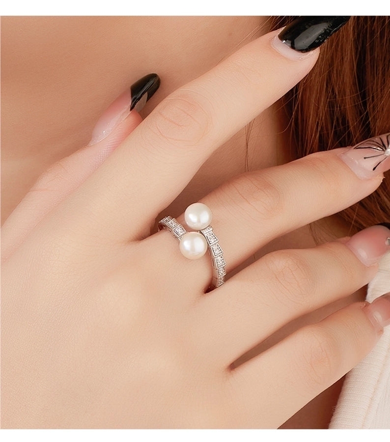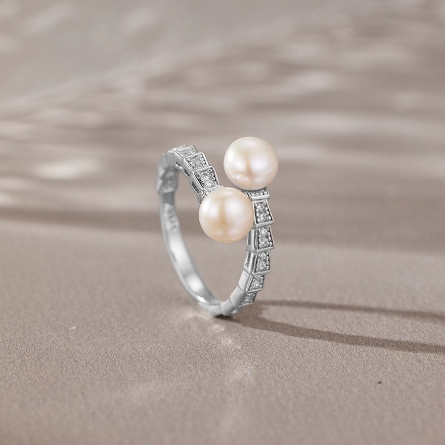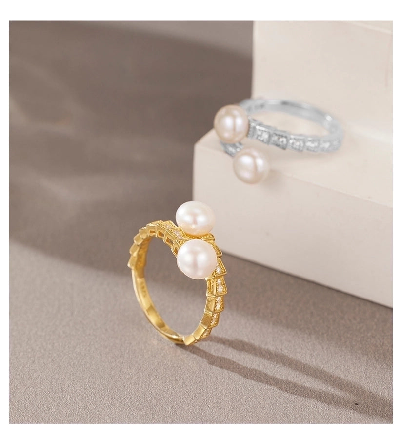 18K Gold Plated White Gold Plated 925 Sterling Silver Pearl Zircon Geometric Rings 925 Sterling Silver Rings