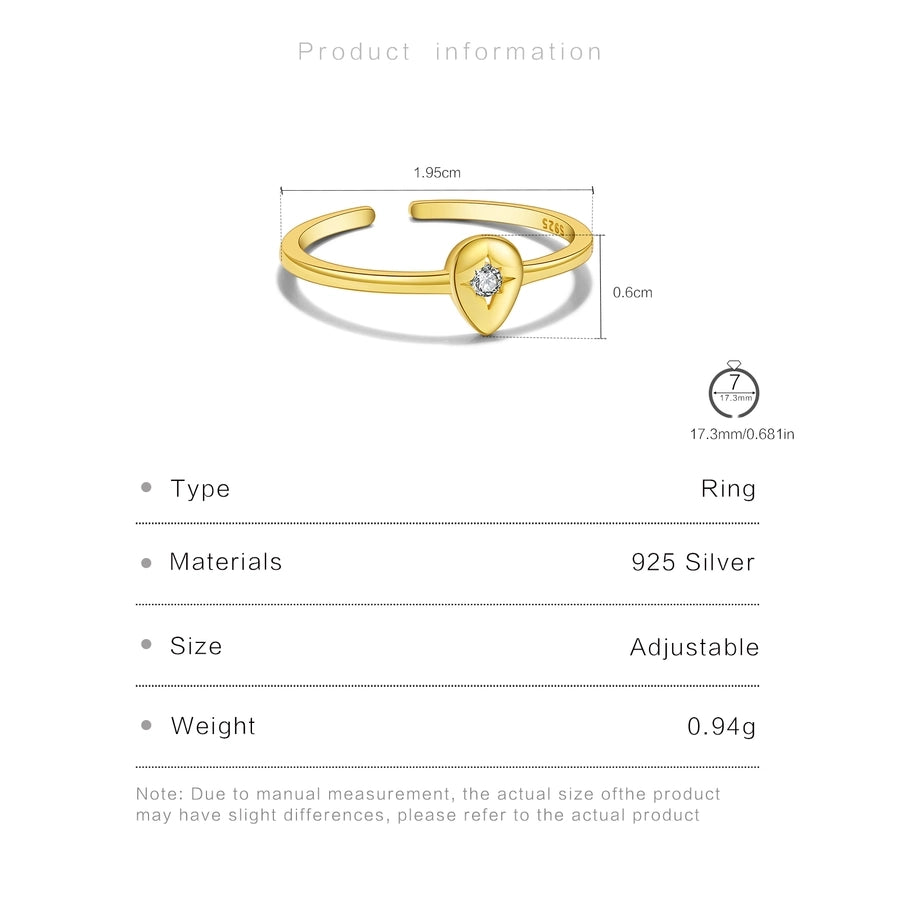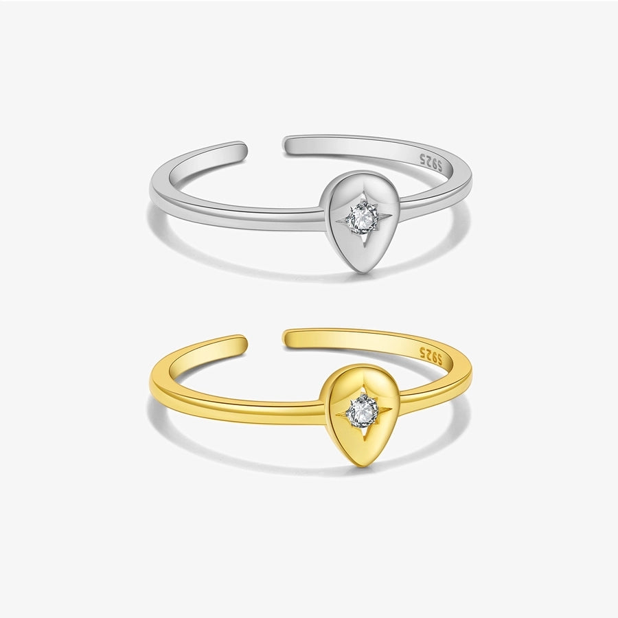 18K Gold Plated White Gold Plated 925 Sterling Silver Zircon Geometric Open Rings 925 Sterling Silver Rings