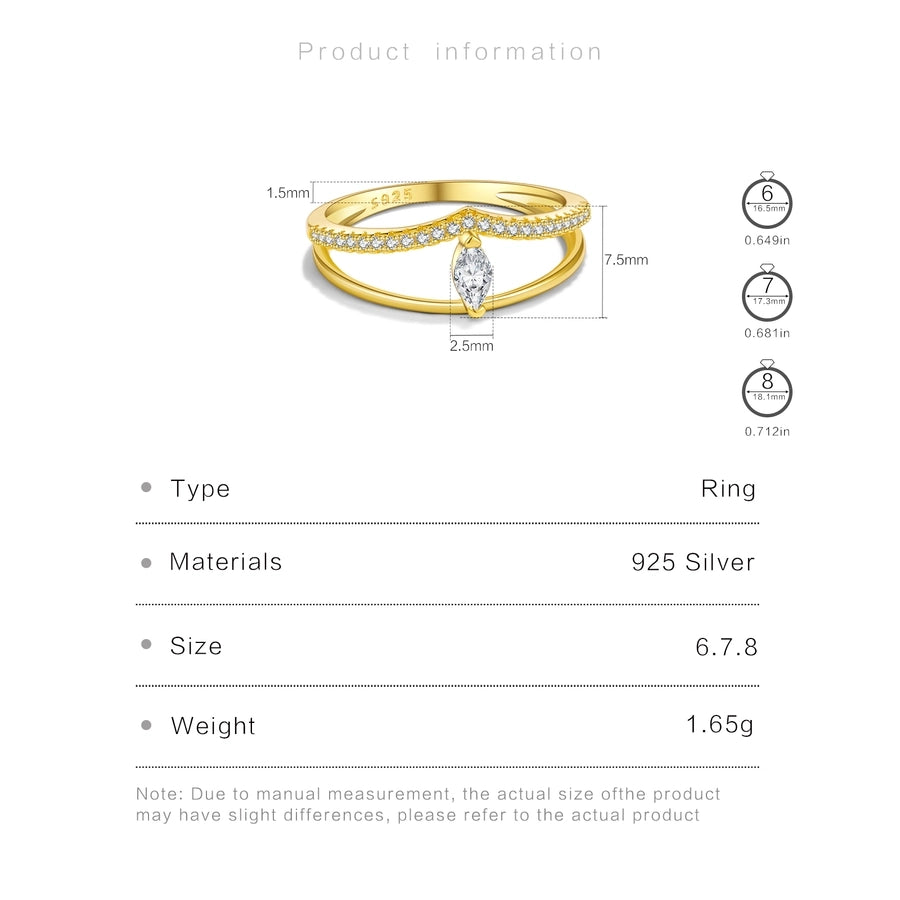18K Gold Plated White Gold Plated 925 Sterling Silver Zircon Geometric Rings 925 Sterling Silver Rings