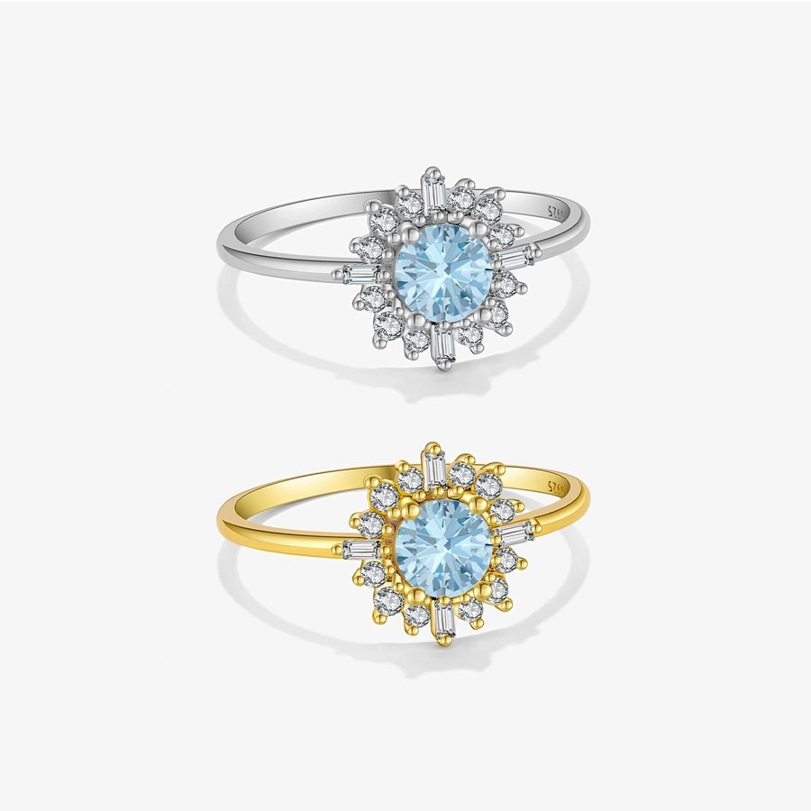 18K Gold Plated White Gold Plated 925 Sterling Silver Zircon Round Rings 925 Sterling Silver Rings