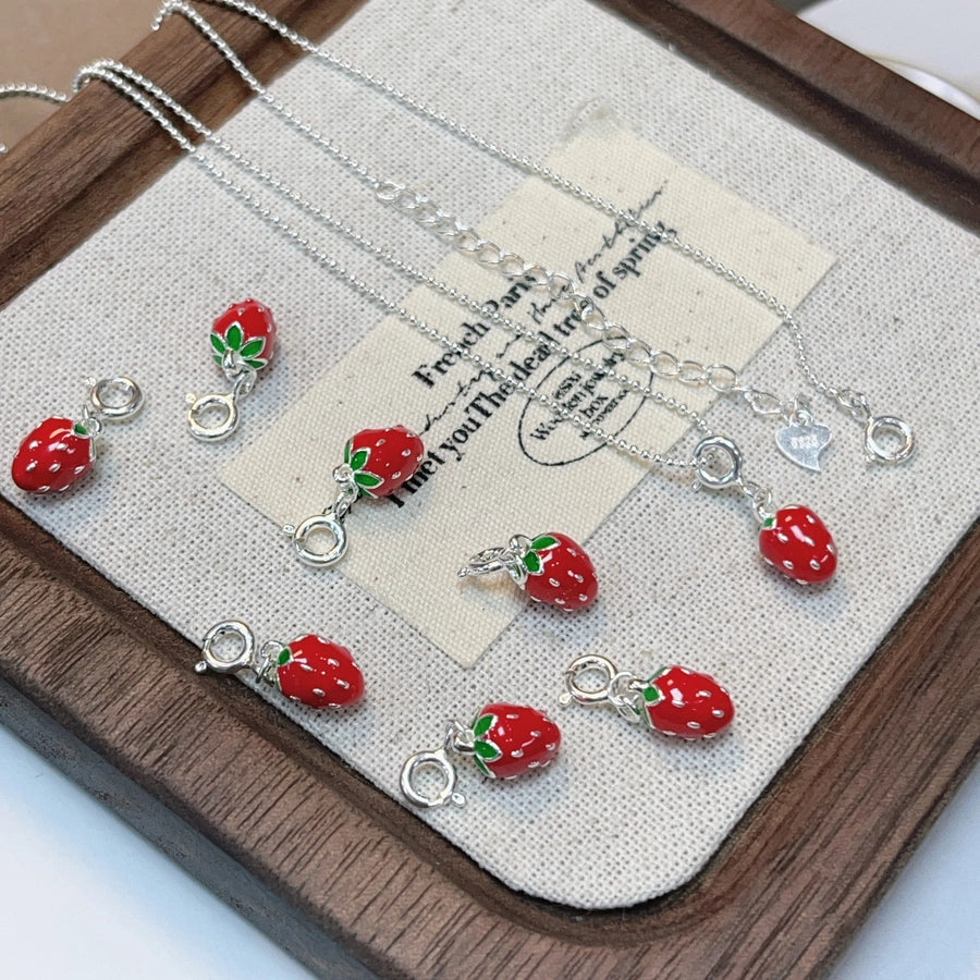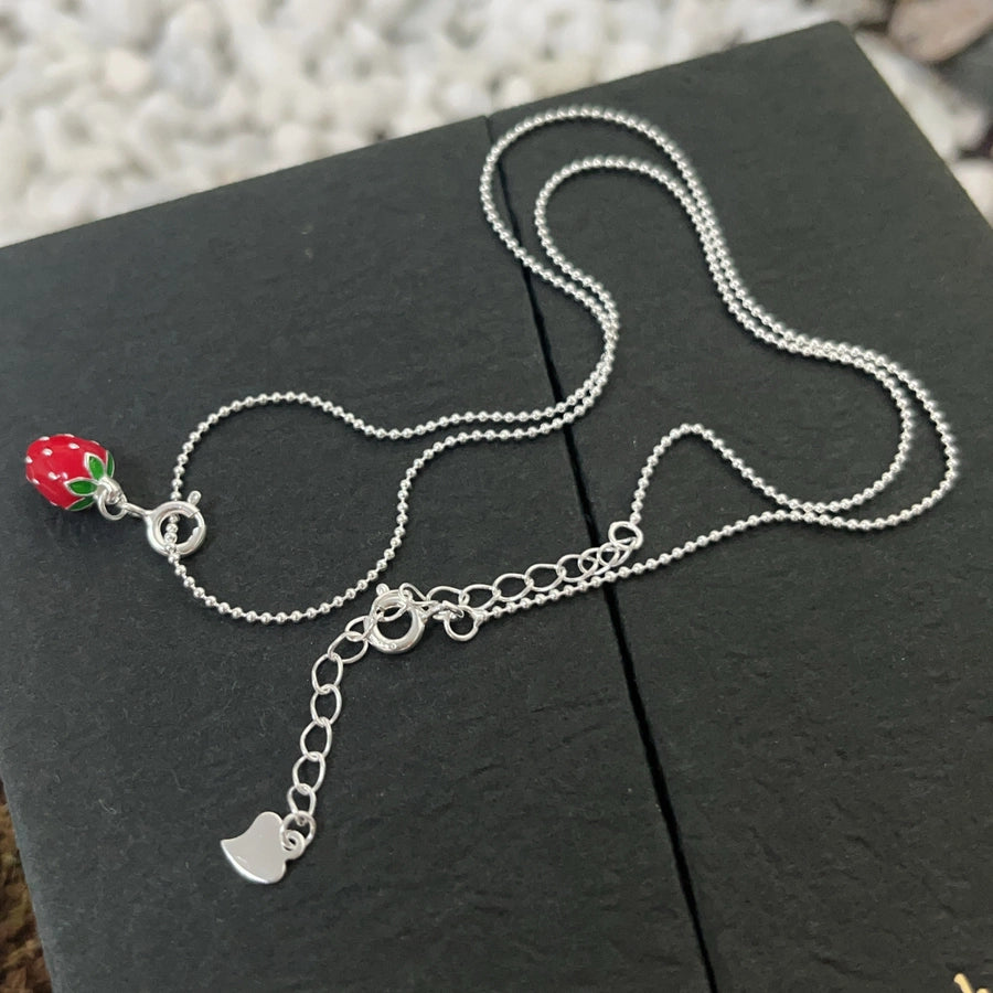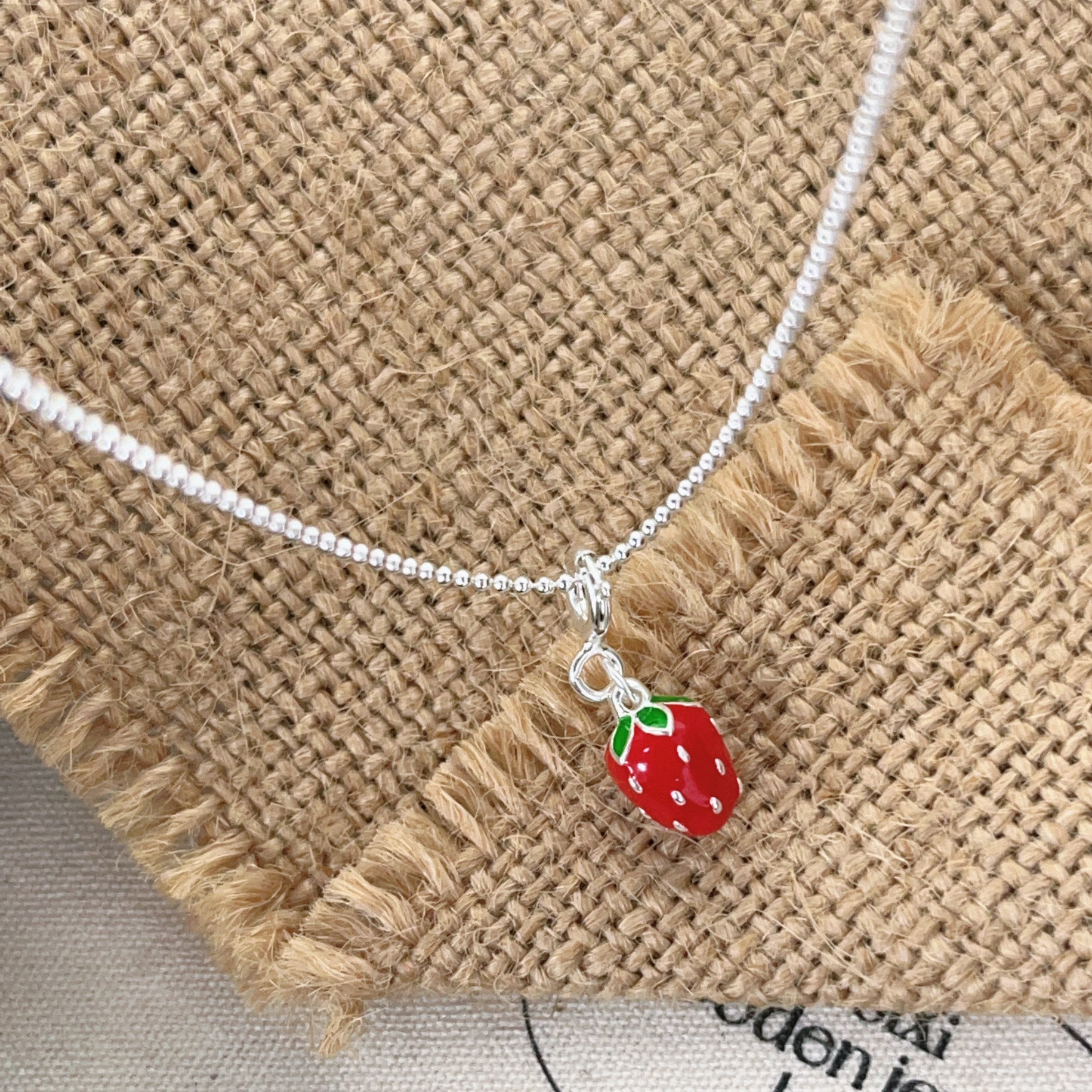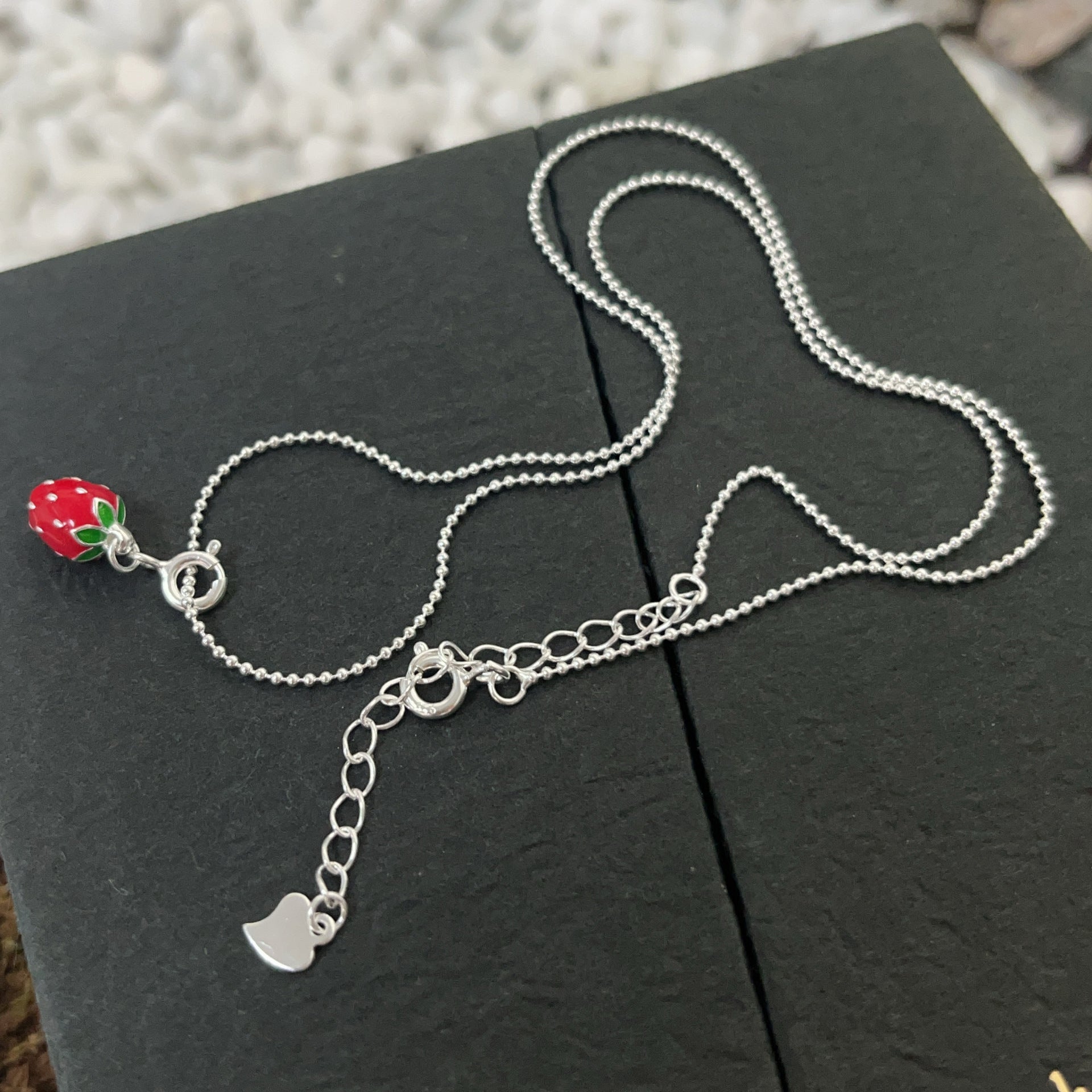 925 Sterling Silver ball chain Enamel Fruit Strawberry Pendant Necklace