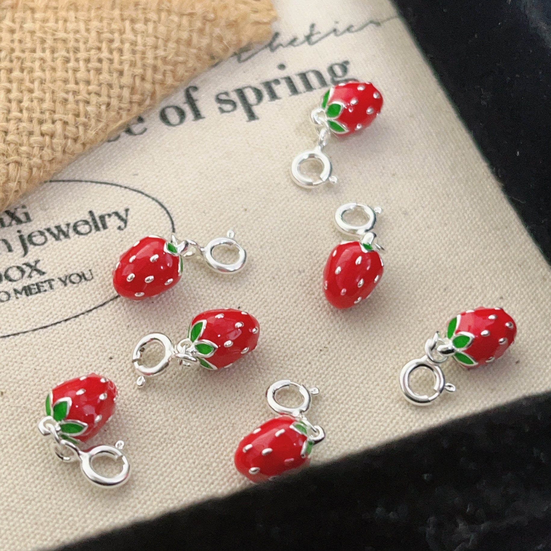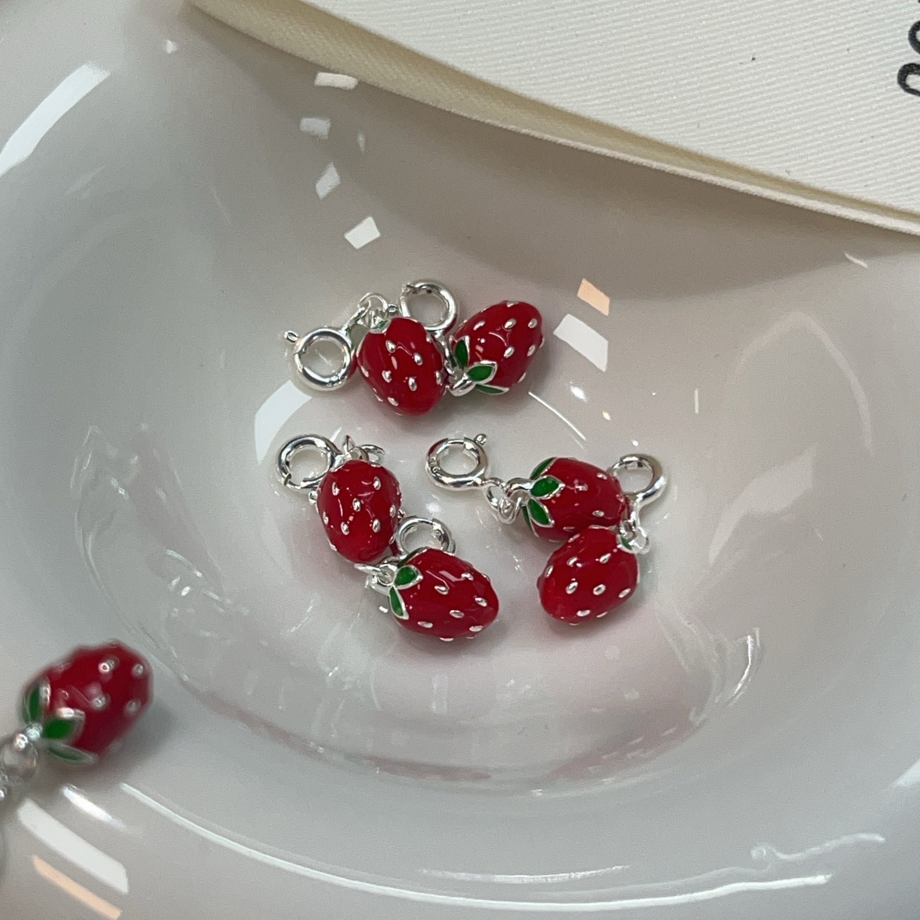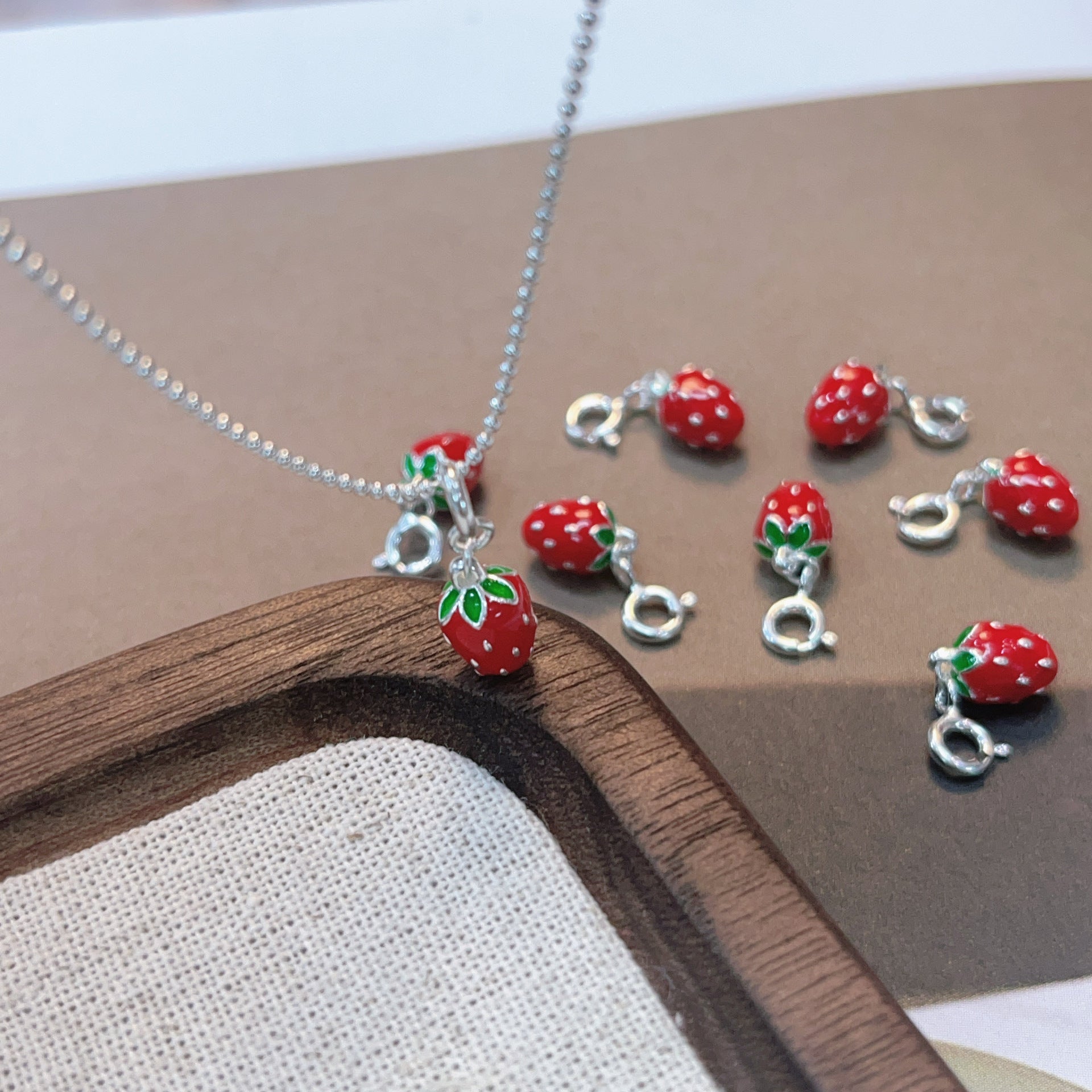 925 Sterling Silver ball chain Enamel Fruit Strawberry Pendant Necklace