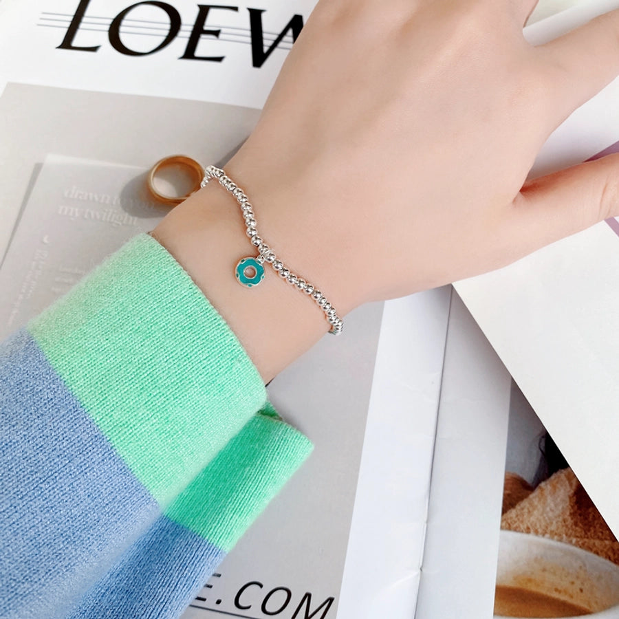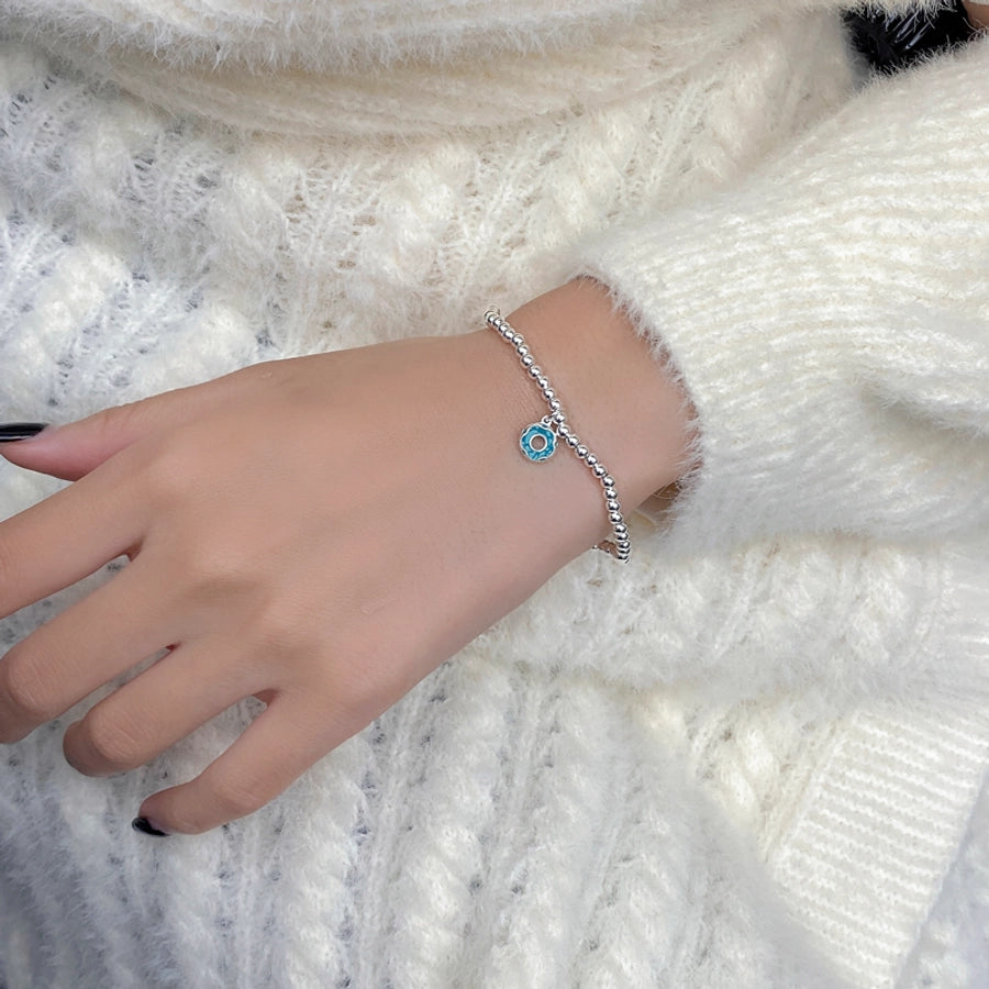 925 Sterling Silver Beaded Chain Bracelets Casual Modern Style Classic Style