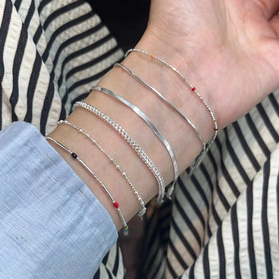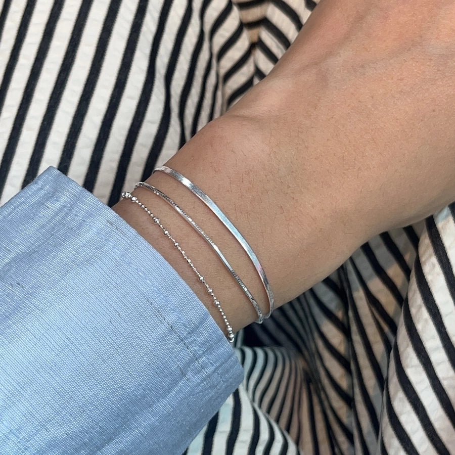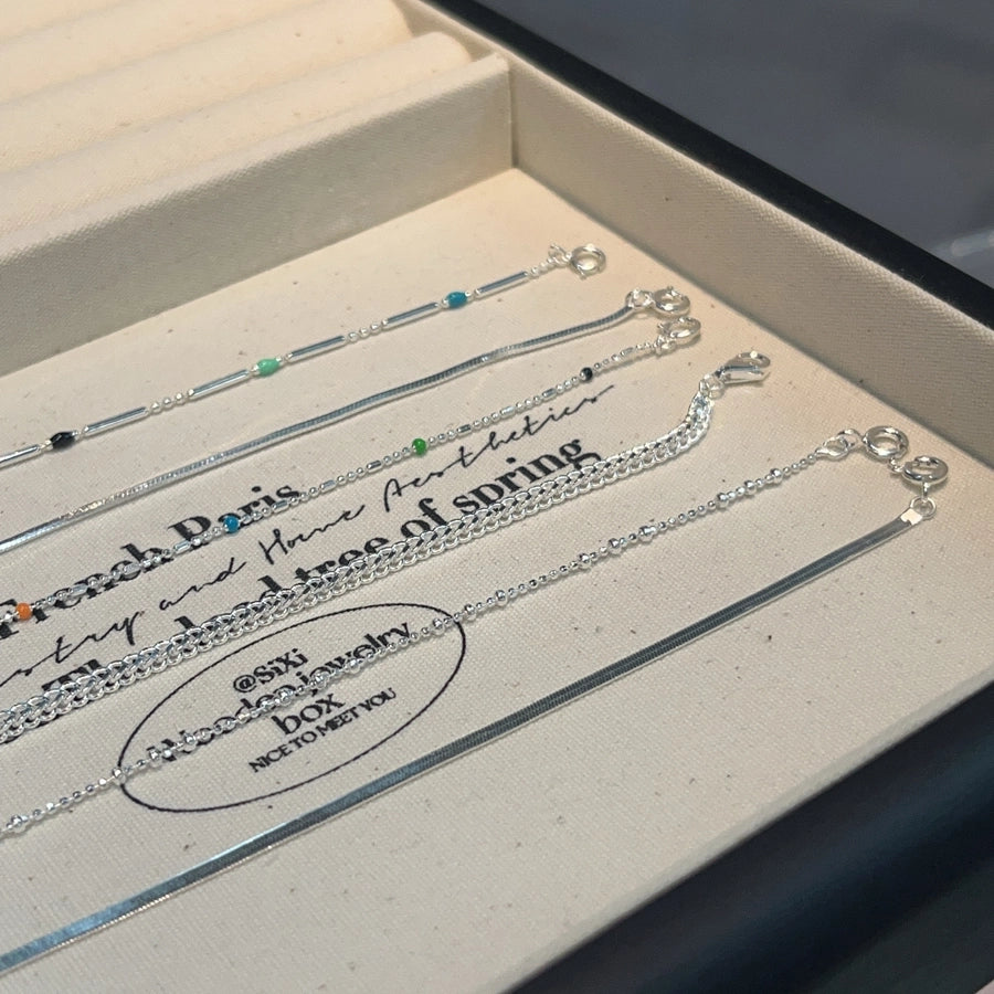 925 Sterling Silver Beaded Chain snake chain Bracelets Elegant Simple Style