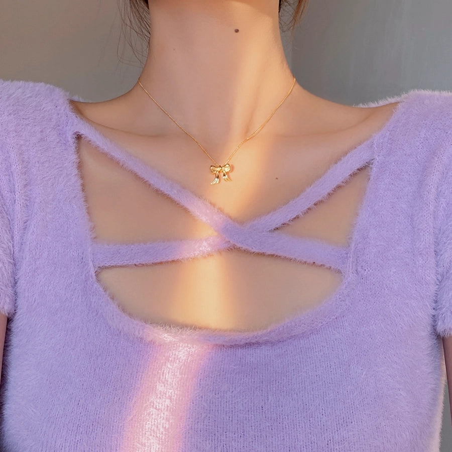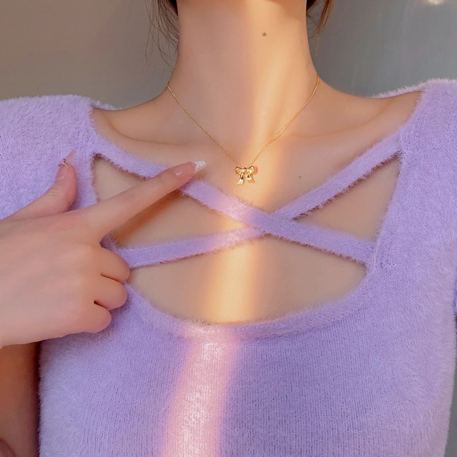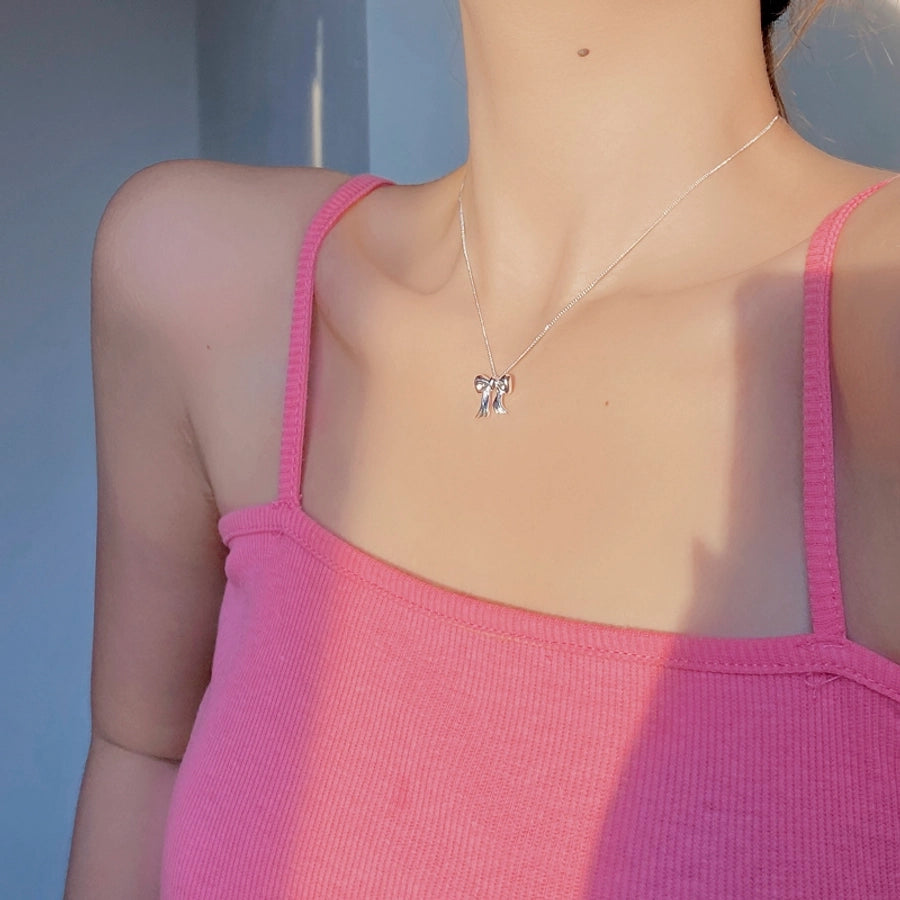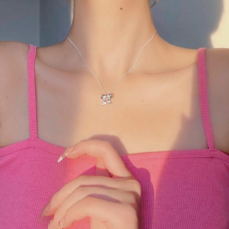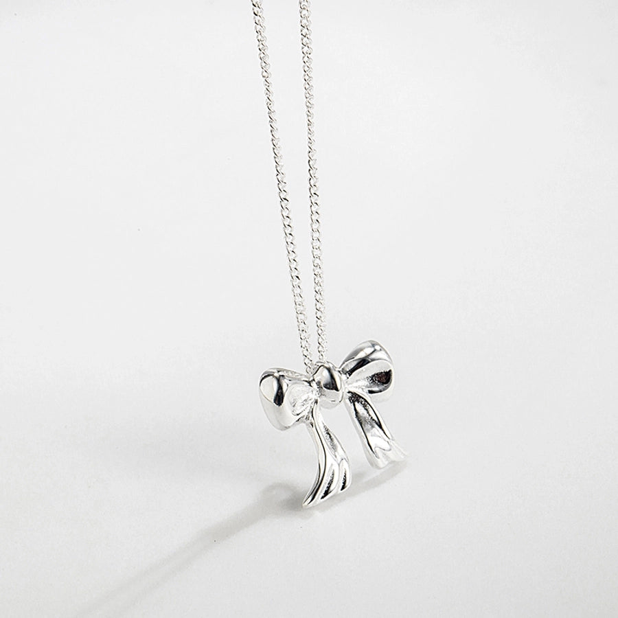 925 Sterling Silver cable chain Bow Knot Pendant Necklace