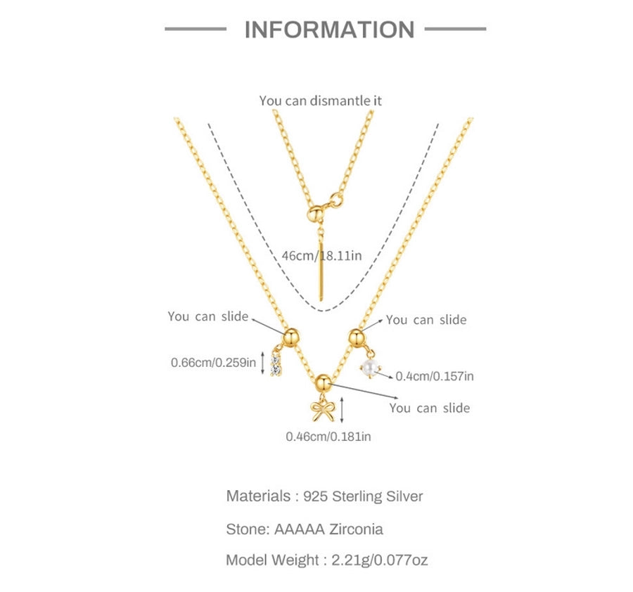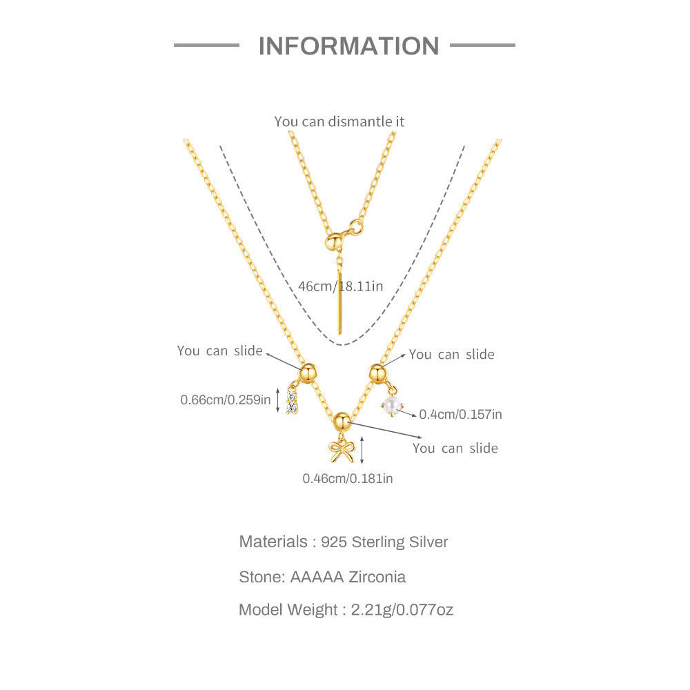 925 Sterling Silver cable chain Plating Bow Knot Multi Charms Necklace