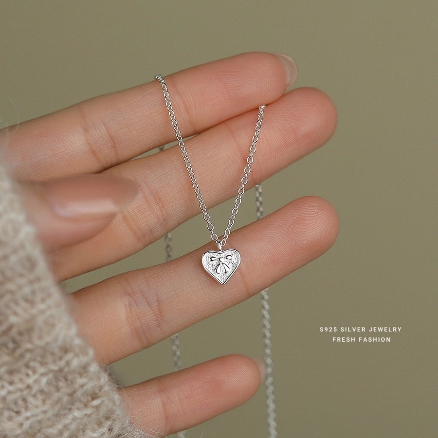 925 Sterling Silver cable chain Plating Heart Shape Pendant Necklace
