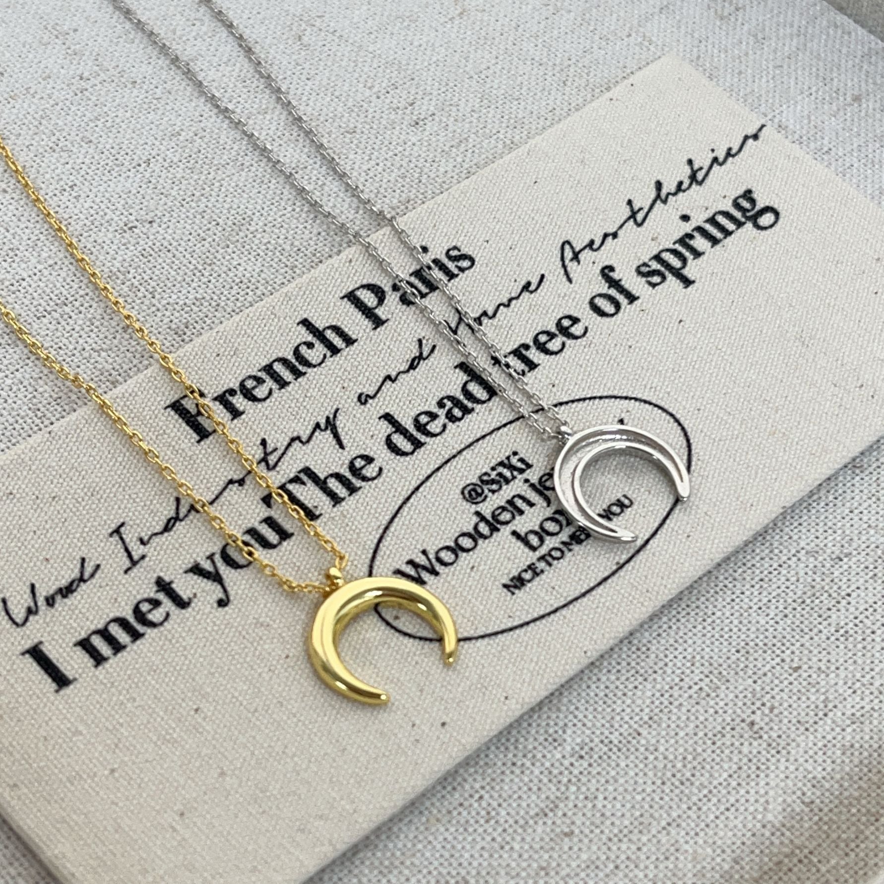 925 Sterling Silver cable chain Plating Moon Pendant Necklace