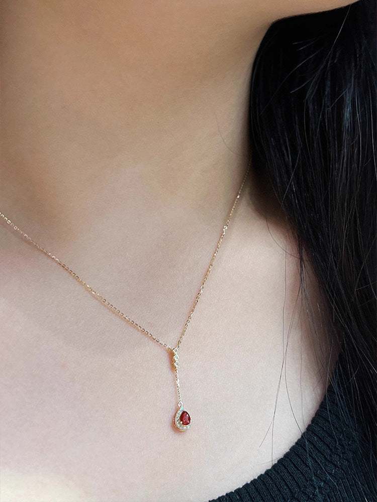 925 Sterling Silver cable chain Plating Water Droplets Pendant Necklace