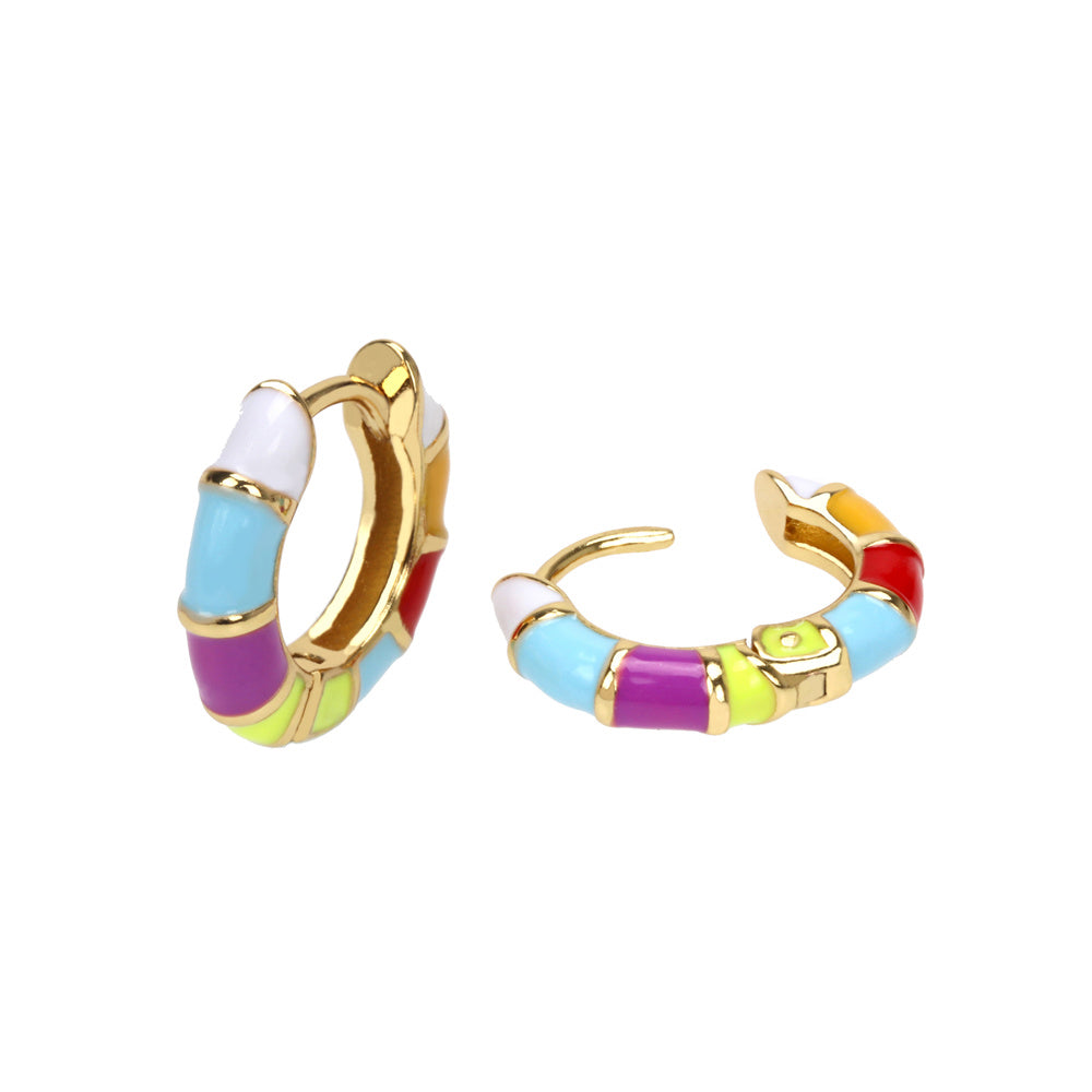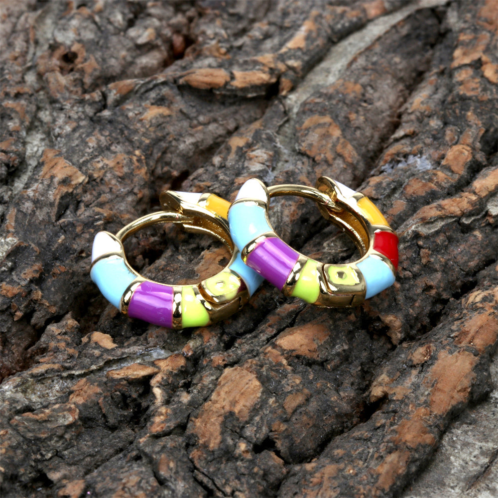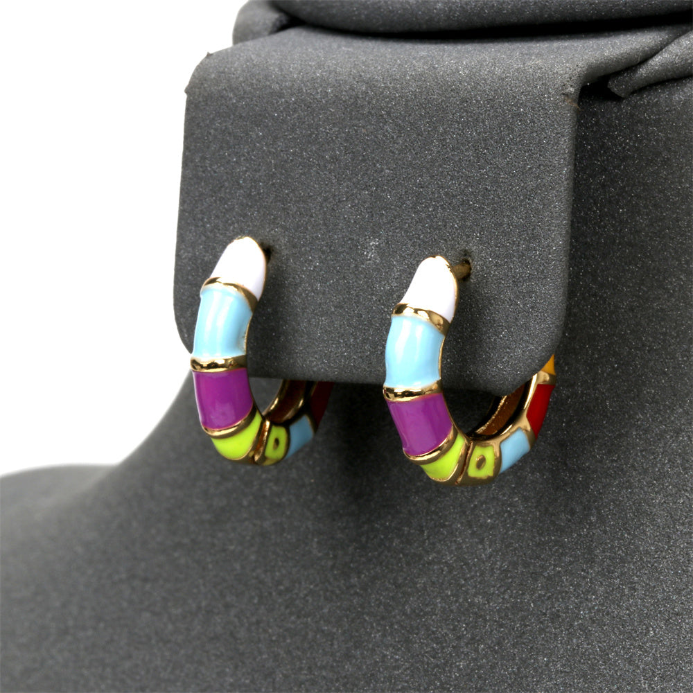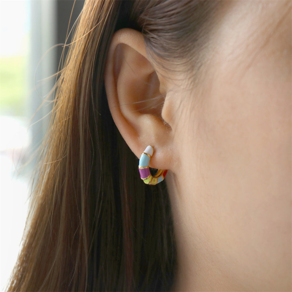 Unique Geometric Gold Plated Colorful Enamel Half Hoop Earrings