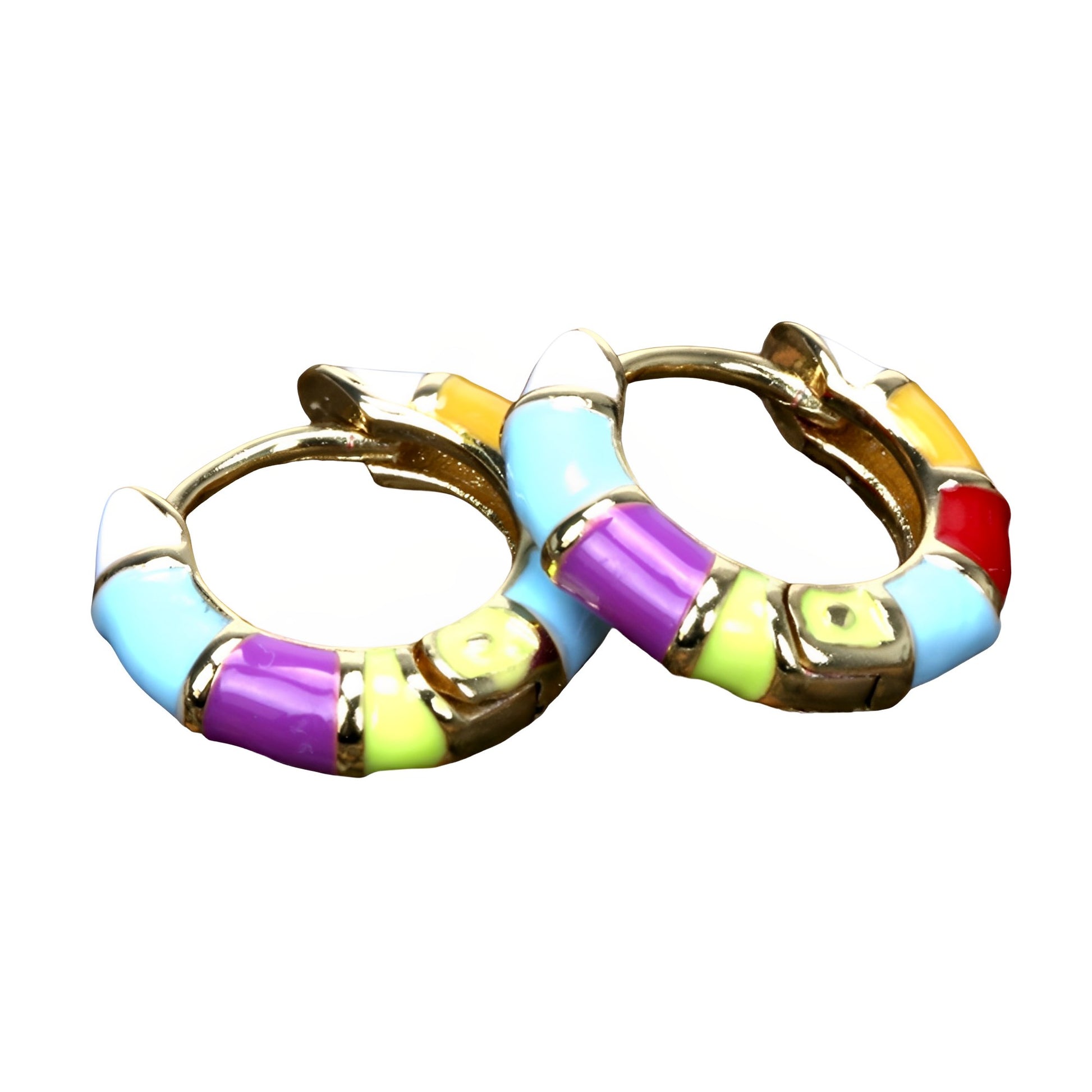 These colorful geometric-style enamel earrings are the perfect way to add some pop to your outfit. They're lightweight and delicate, so they'll never weigh you down. You can wear them with any outfit, from jeans and a T-shirt to a dress. They're perfect for anyone who wants to make a statement while also keeping it classy! Make these a new addition to your own jewelry box or give them as a thoughtful gift!