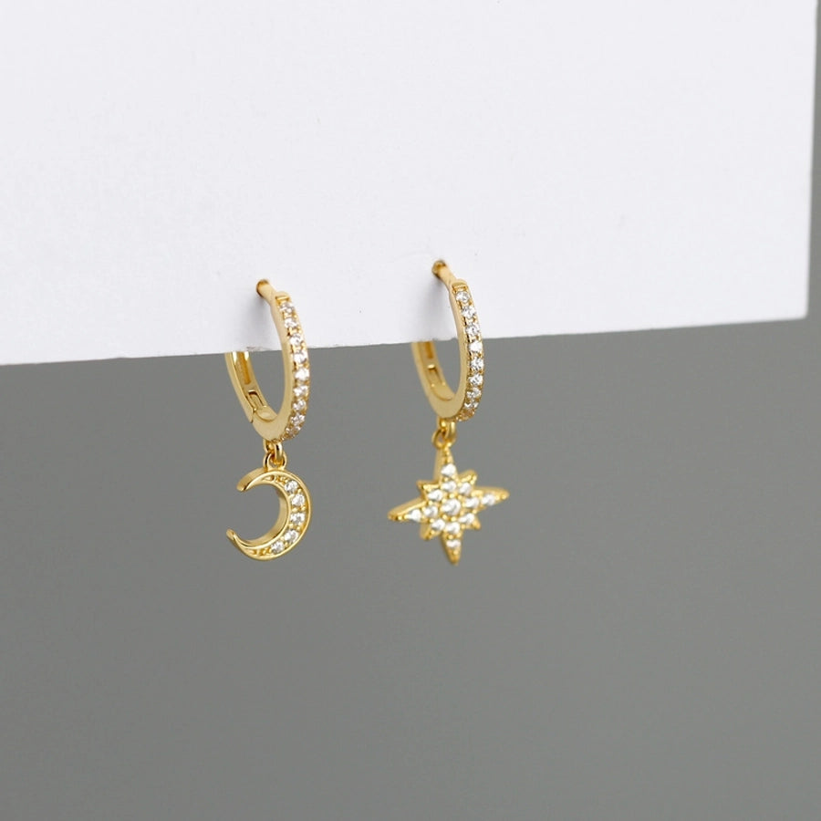 1 Pair 18K Gold Plated White Gold Plated 925 Sterling Silver Zircon 925 Sterling Silver Earrings Star Moon Drop Earrings