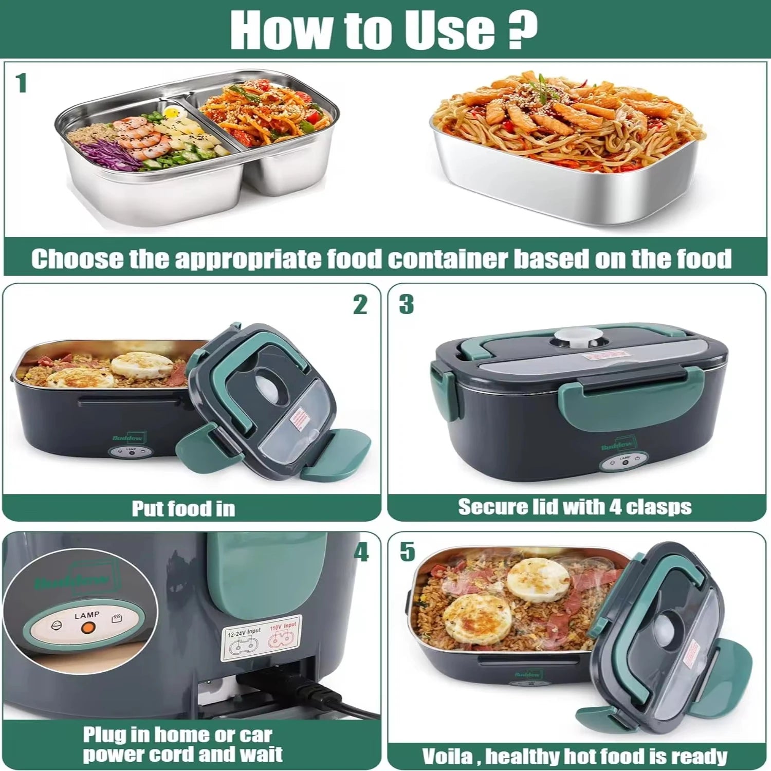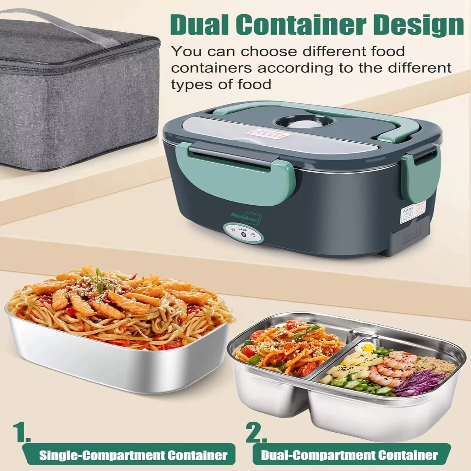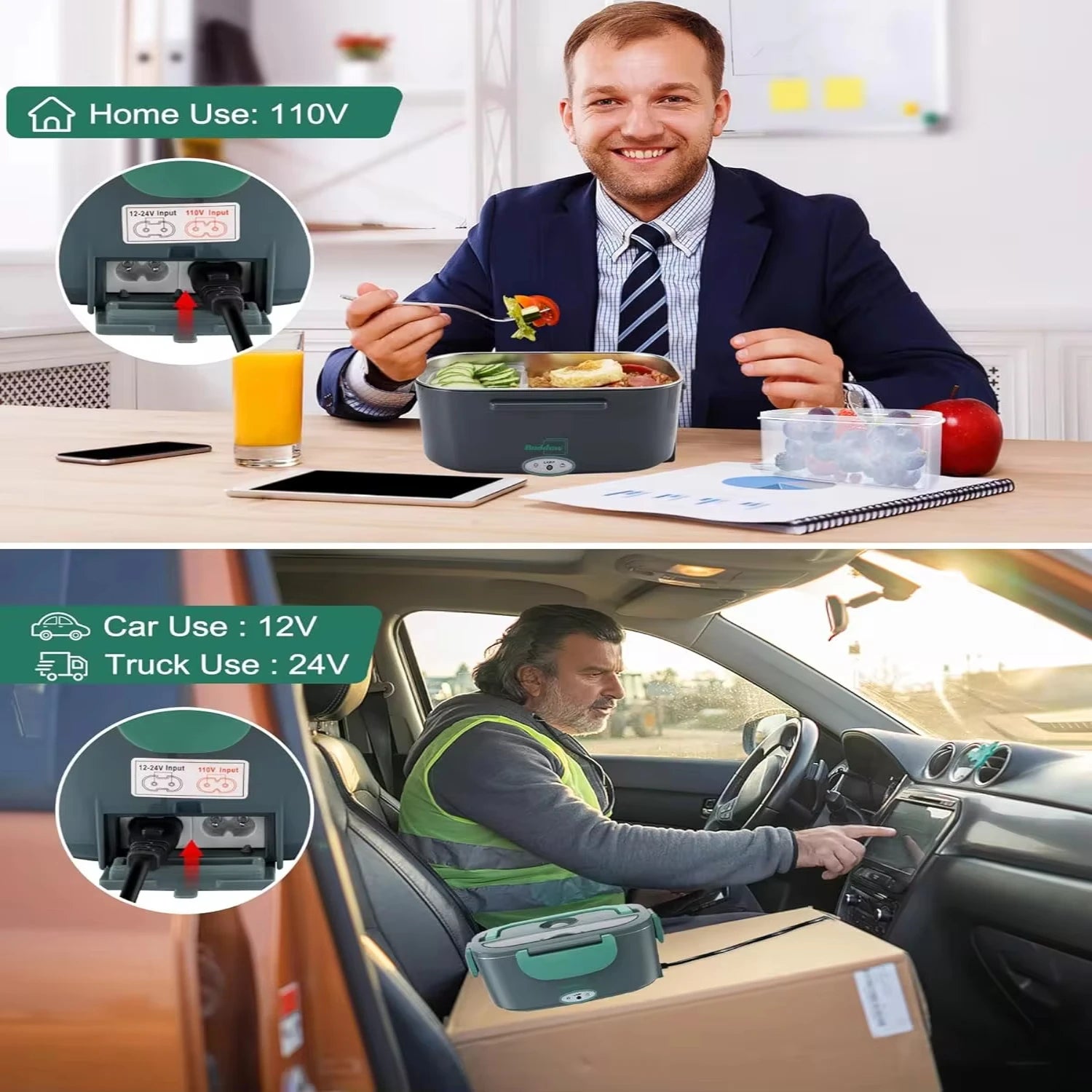 Designed for ultimate versatility, this 3-in-1 electric lunch box works with 110V outlets for home and office use, as well as 12V & 24V car and truck plugs. Ideal for truckers, field workers, office employees, and anyone on the go who craves a hot meal without the hassle.