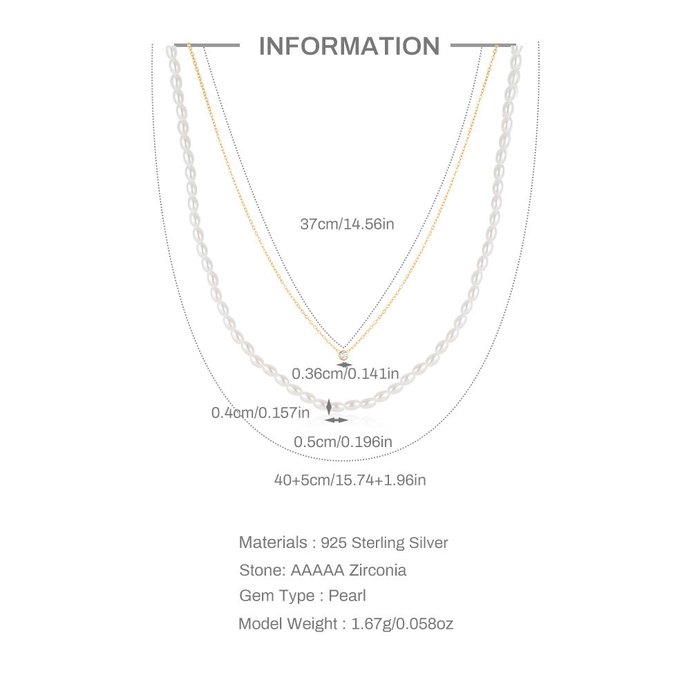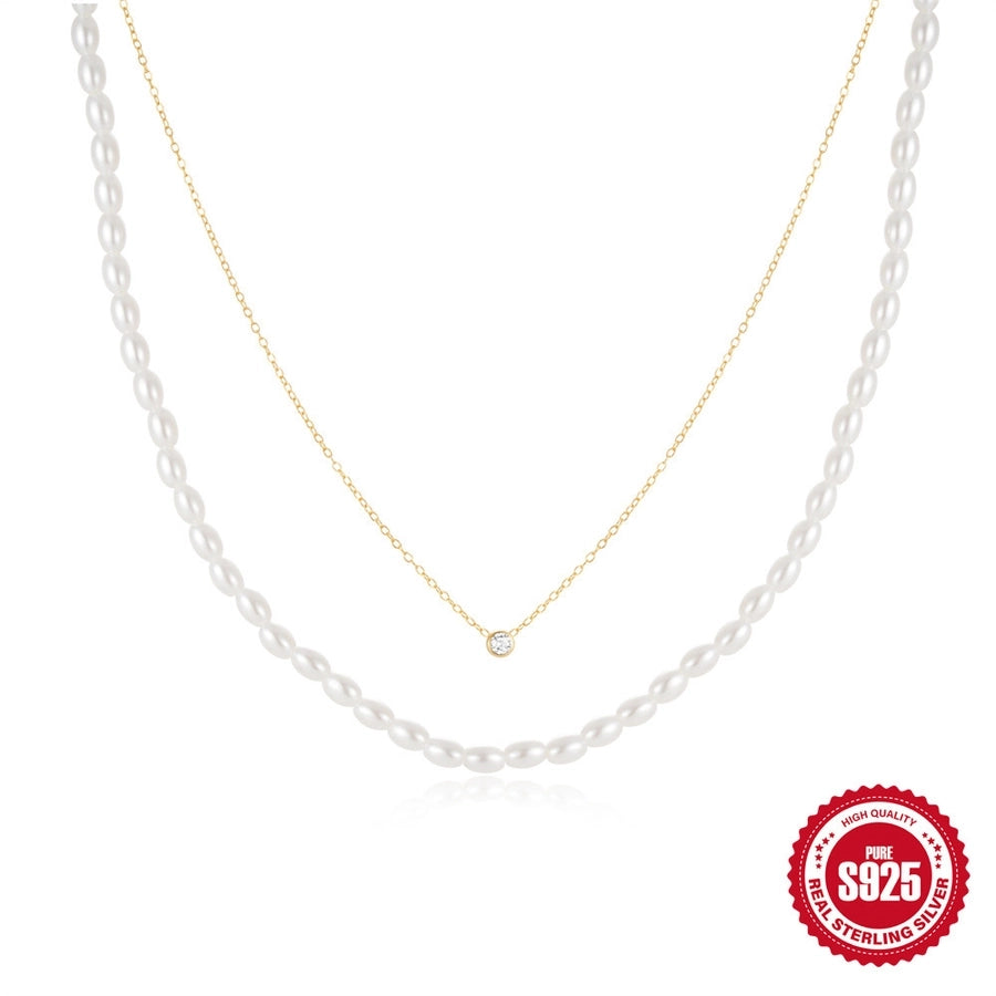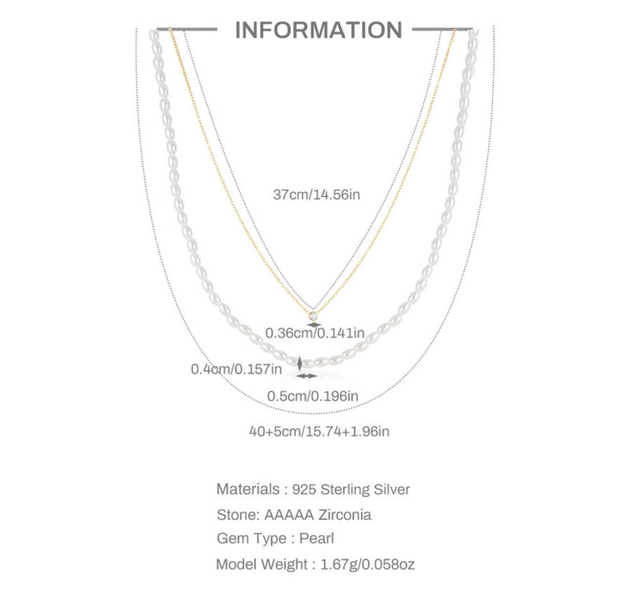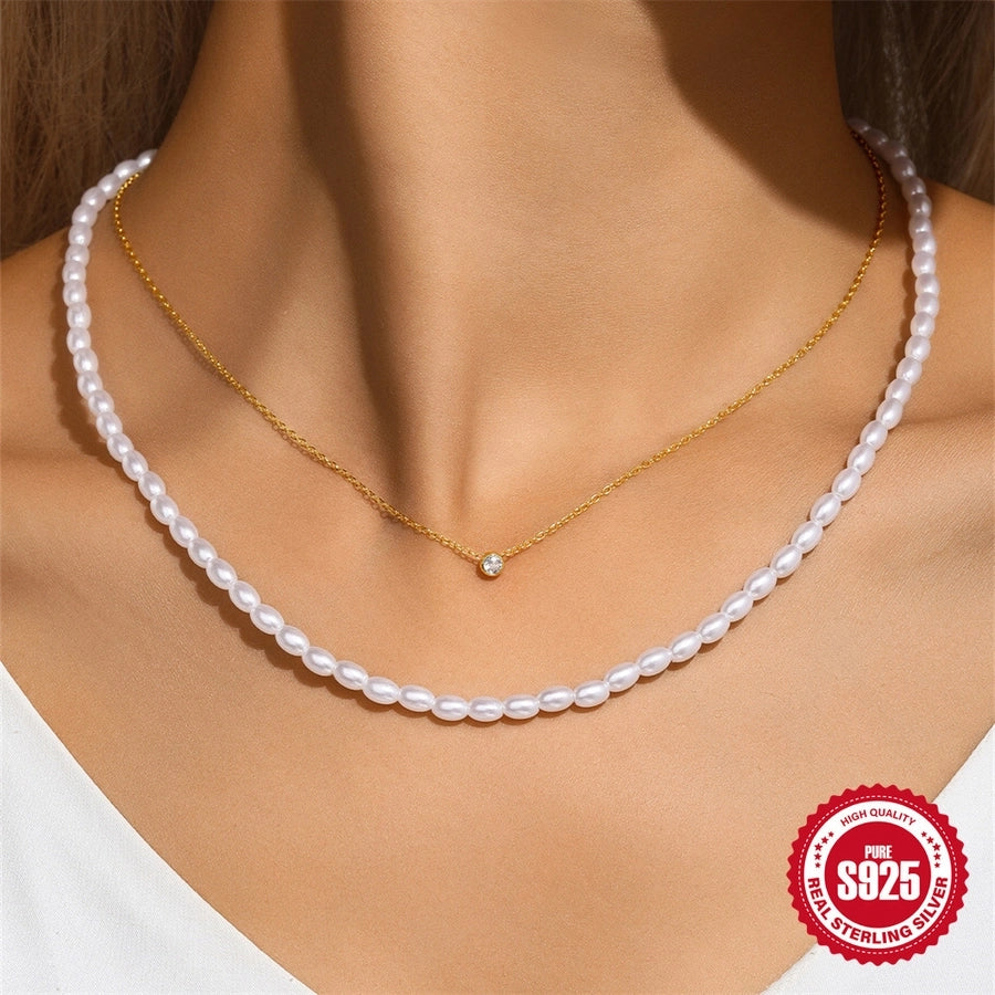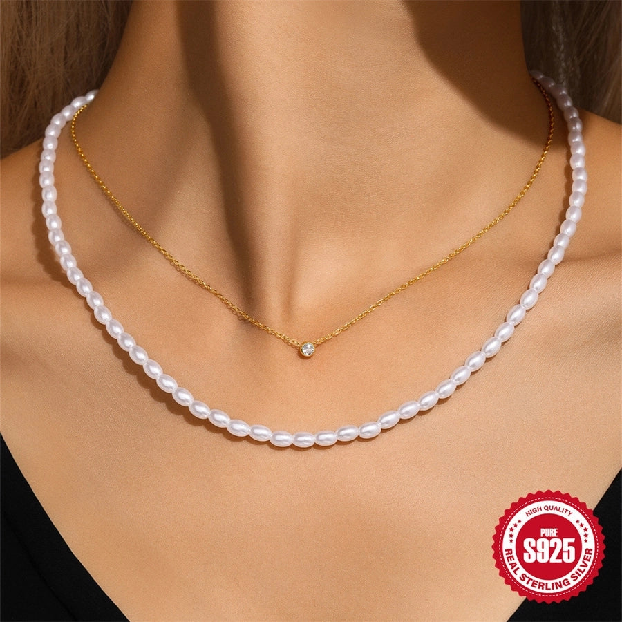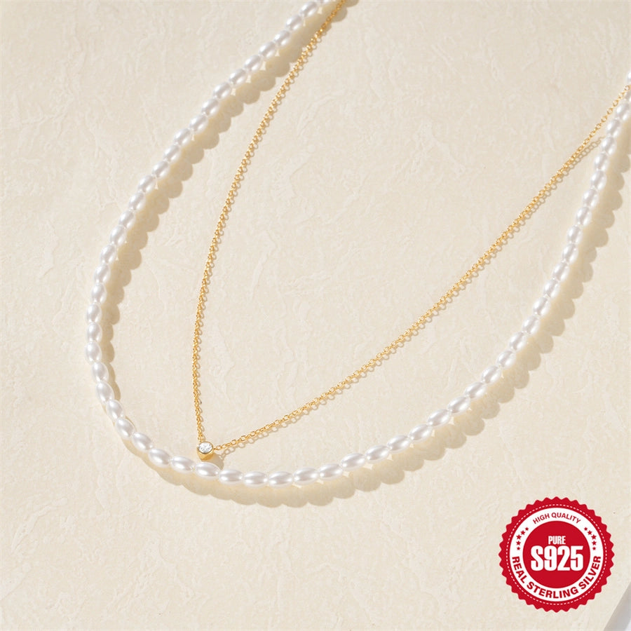 925 Sterling Silver Plastic Beads Zircon Beaded Chain cable chain Plating Geometric Double Layer Necklaces