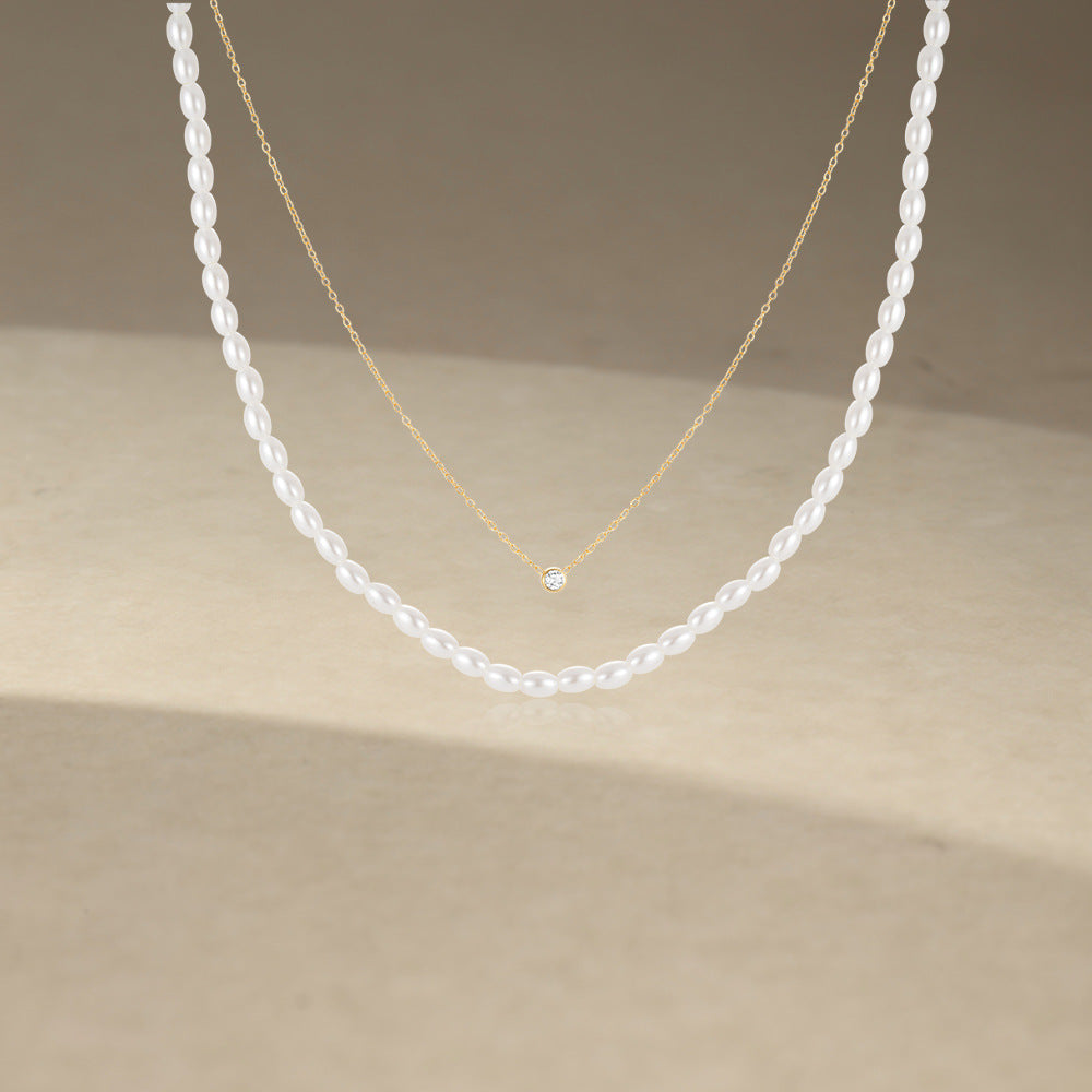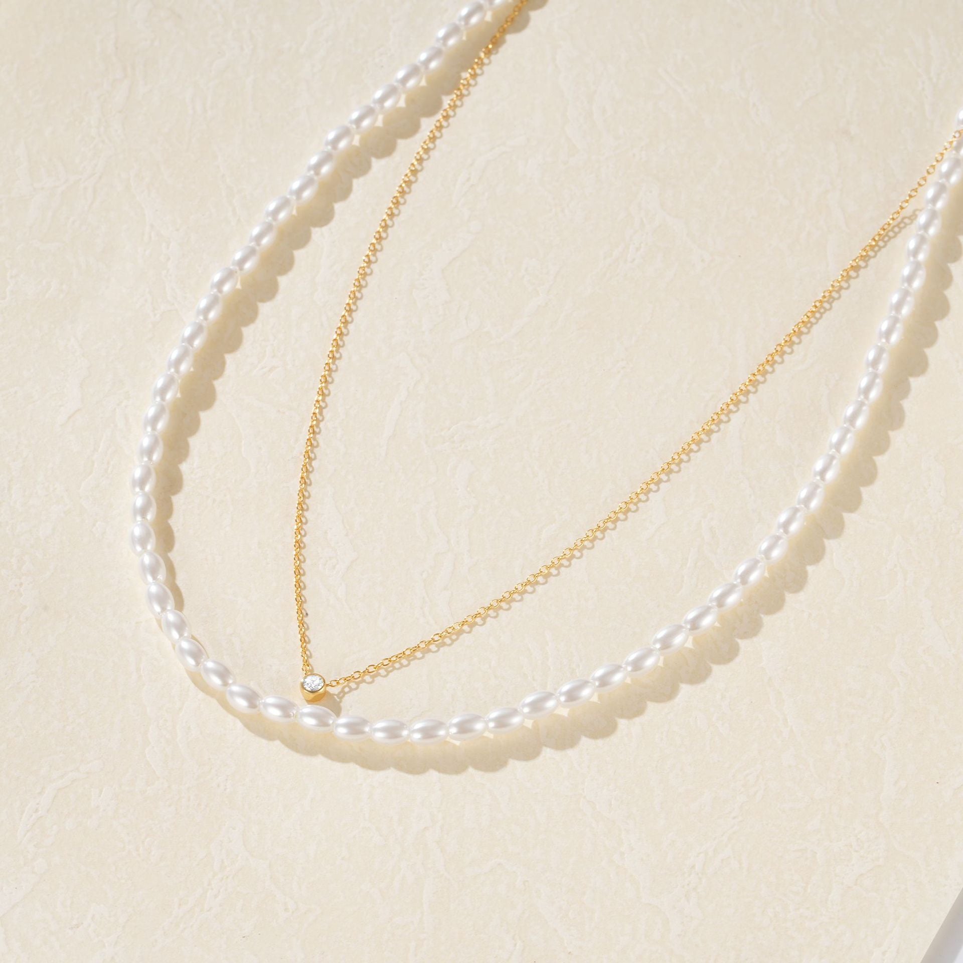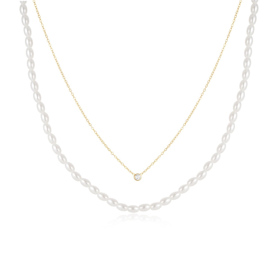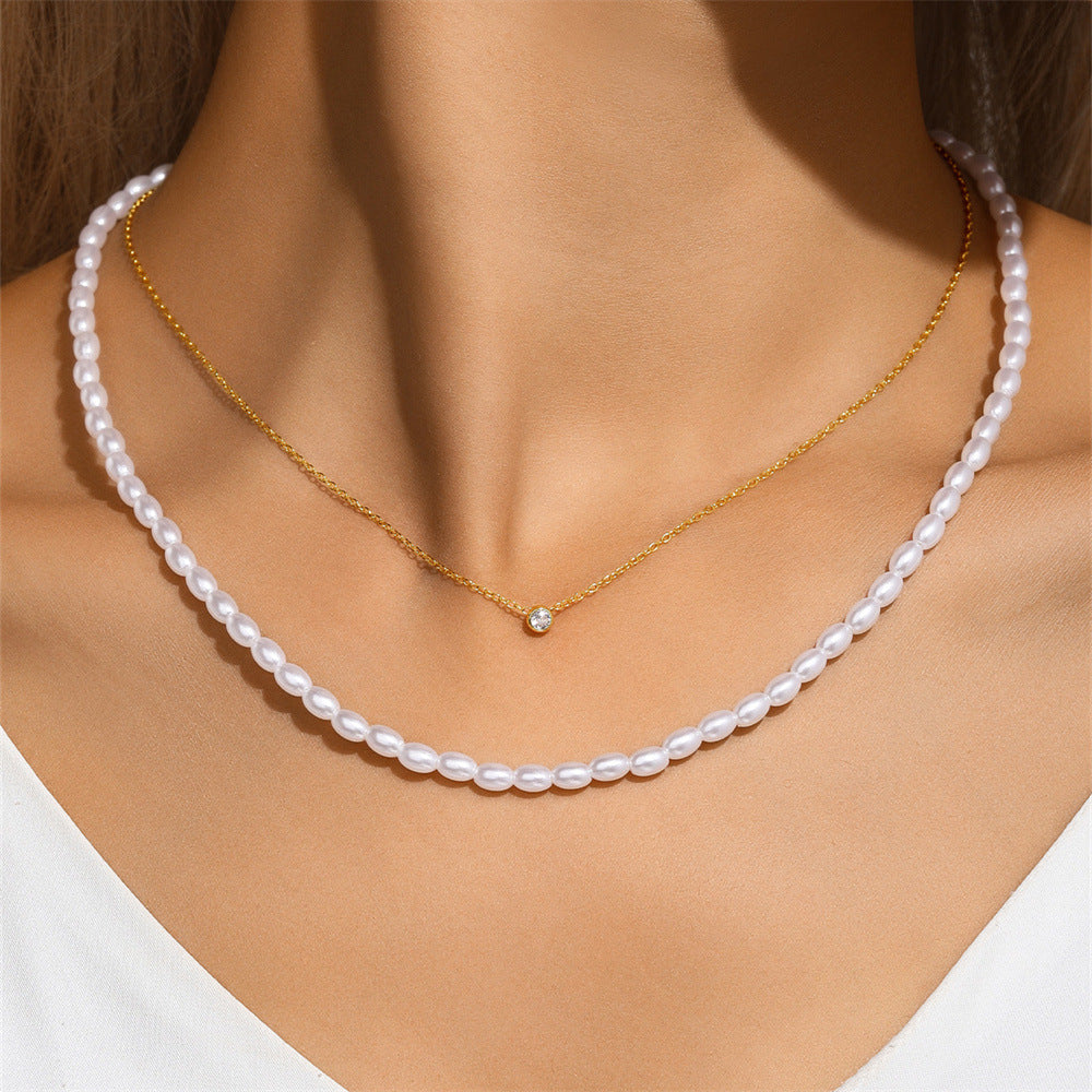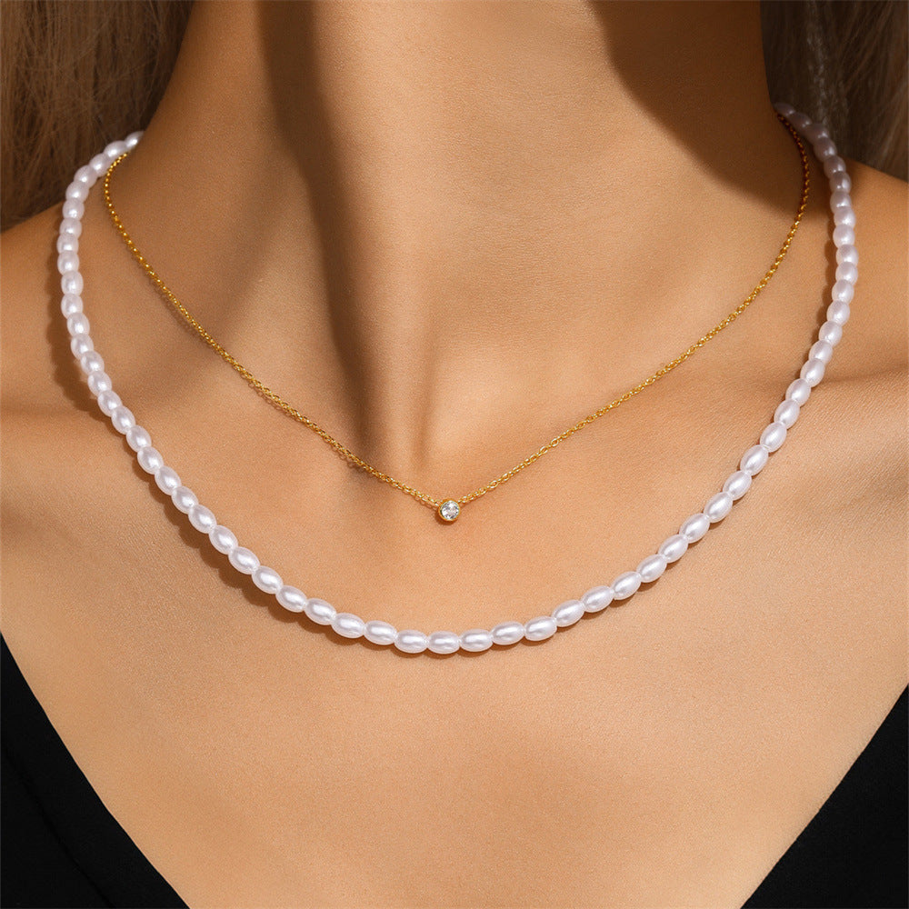 925 Sterling Silver Plastic Beads Zircon Beaded Chain cable chain Plating Geometric Double Layer Necklaces