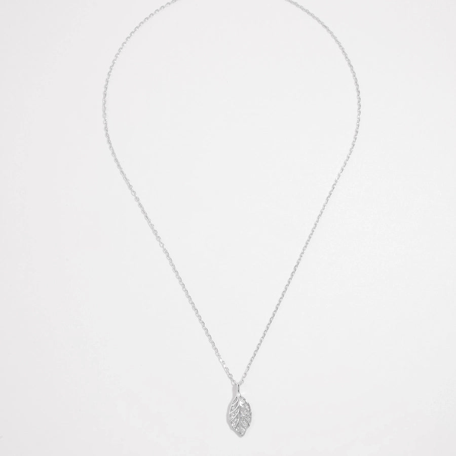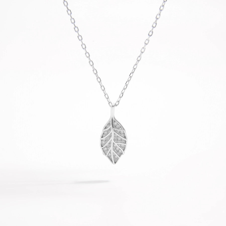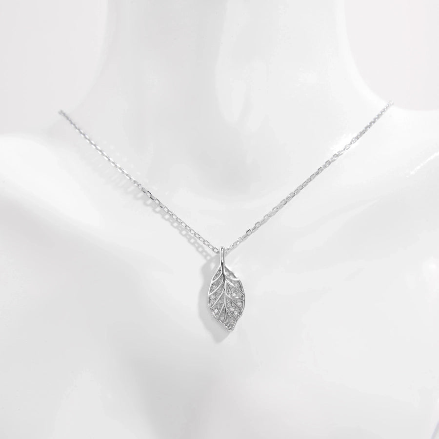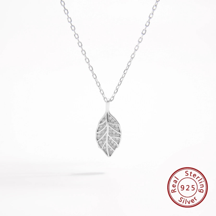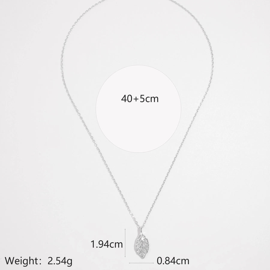 925 Sterling Silver Plated Zircon cable chain Inlay Leaves Pendant Necklace