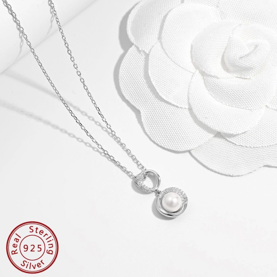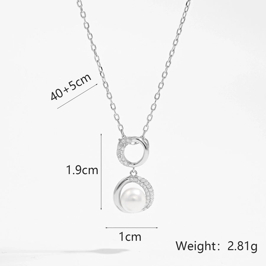 925 Sterling Silver Plated Zircon cable chain Plating Inlay Round Pendant Necklace
