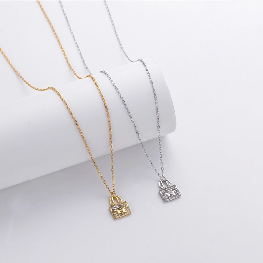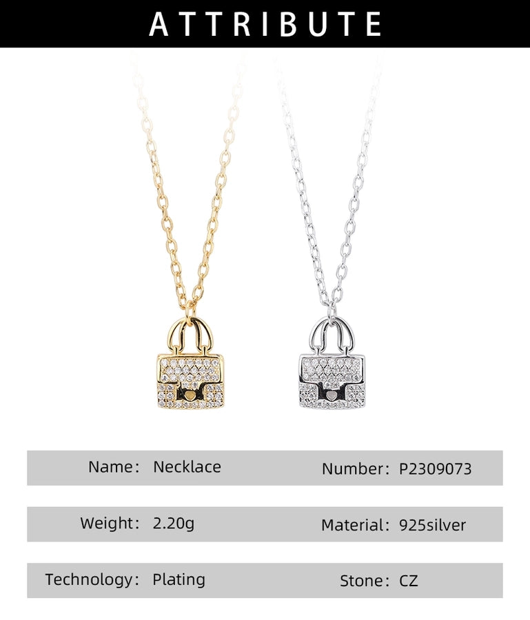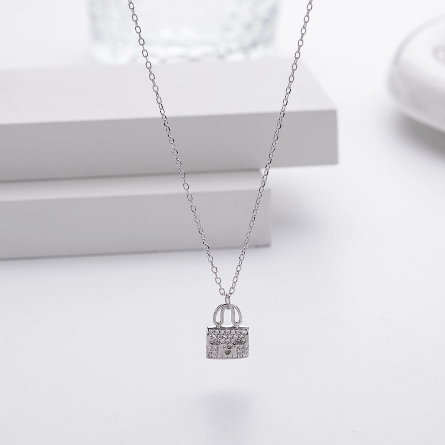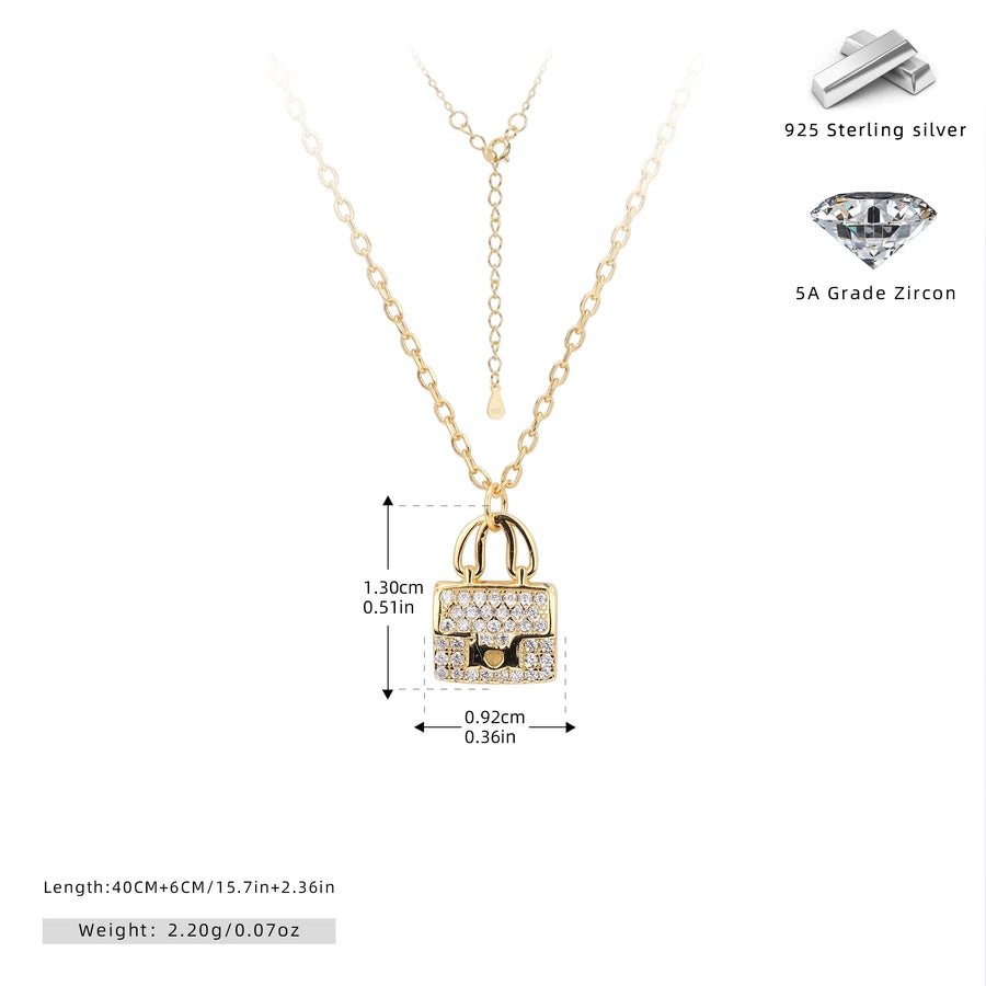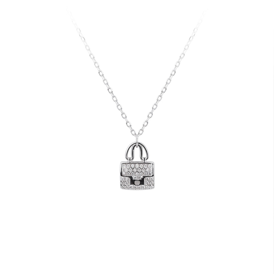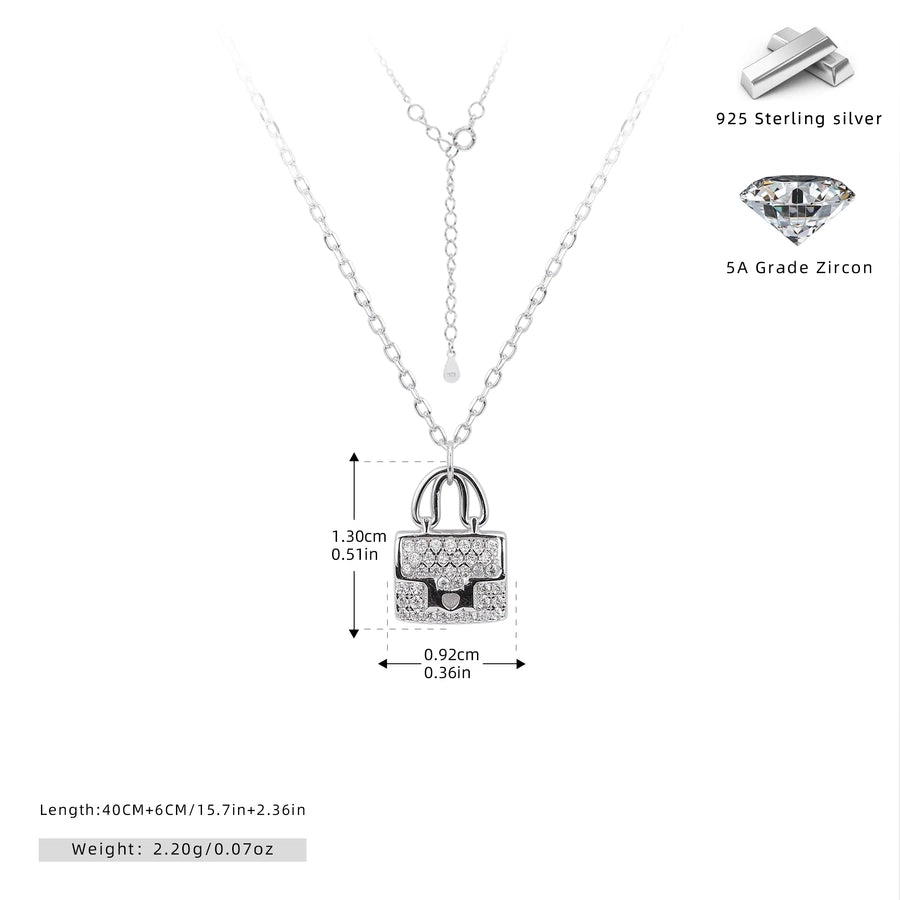 925 Sterling Silver Rack Plated Plated Long-Lasting Plated Zircon cable chain Bag Pendant Necklace