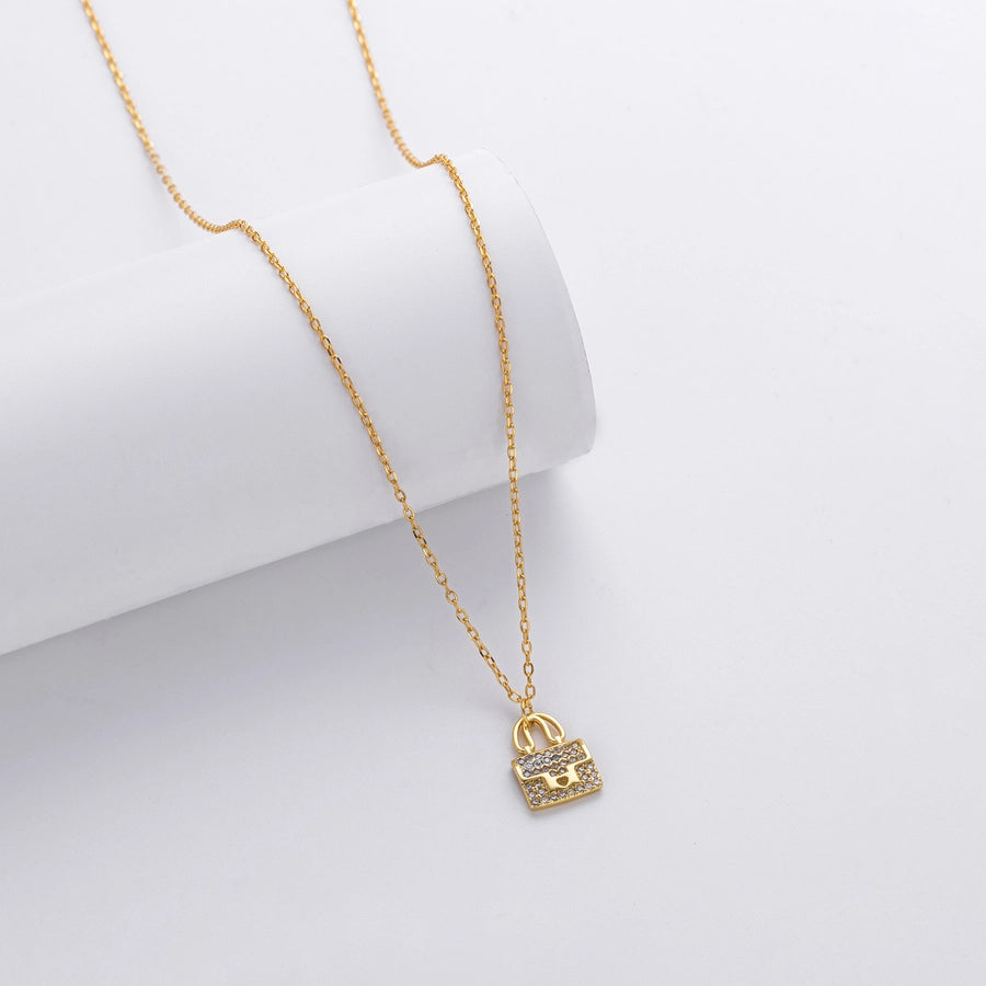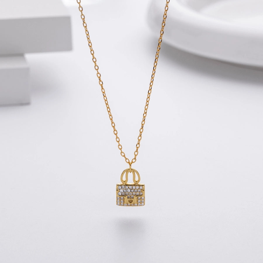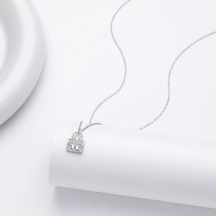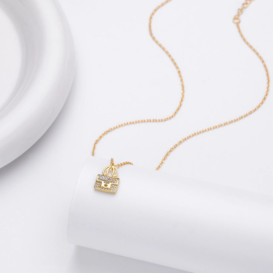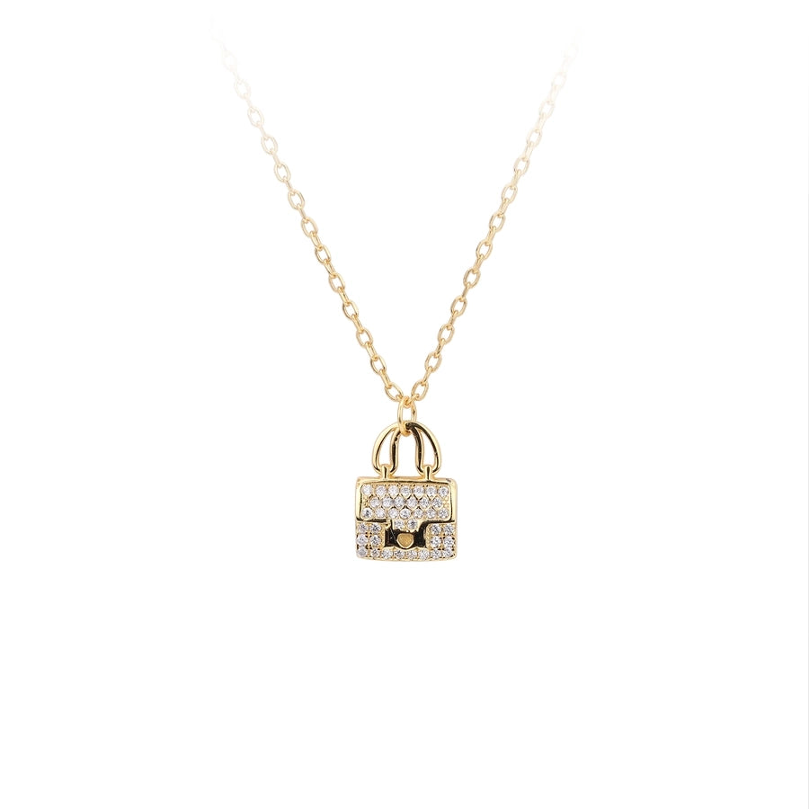 925 Sterling Silver Rack Plated Plated Long-Lasting Plated Zircon cable chain Bag Pendant Necklace