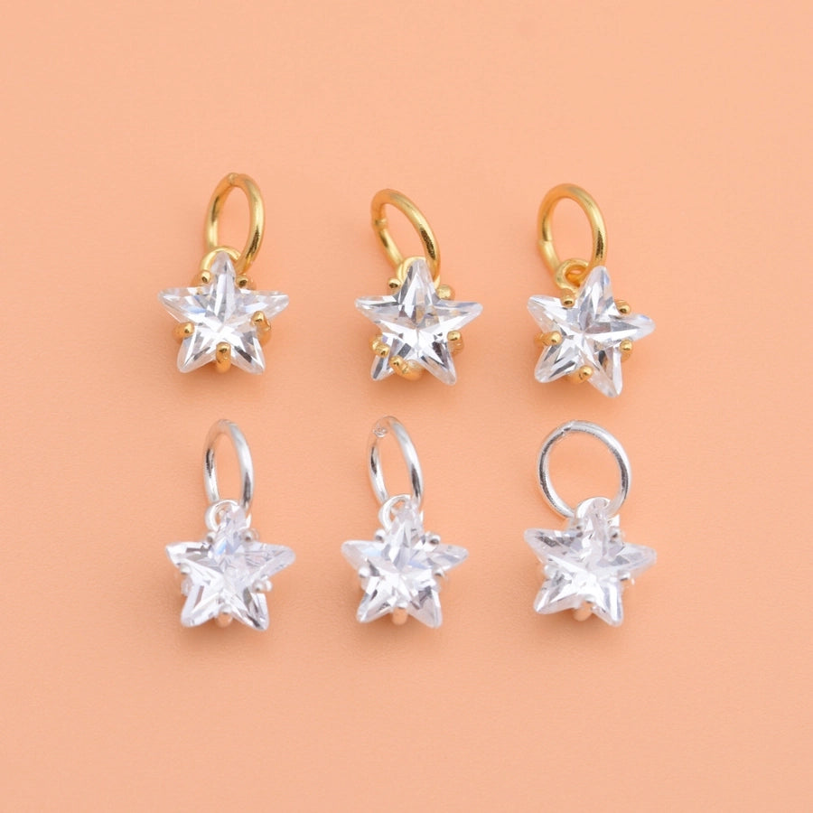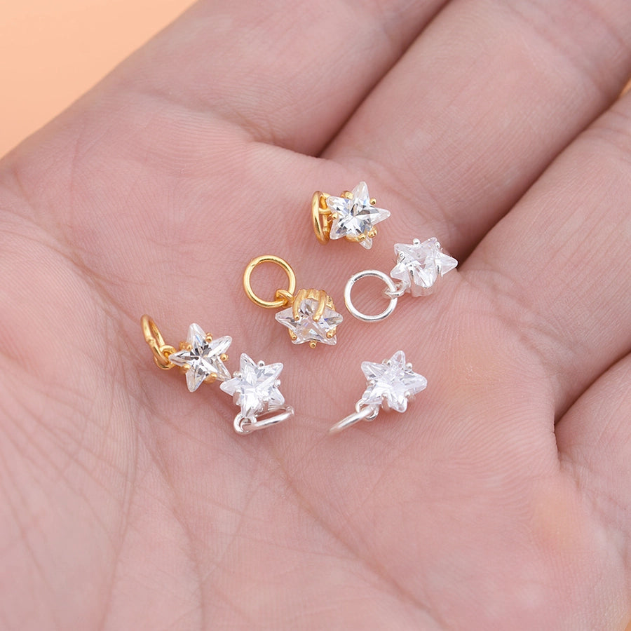 925 Sterling Silver Rhinestone Zircon Accessories Mini Little Star Five-Pointed Star Pendant Bracelet Necklace Creative Handmade Accessories