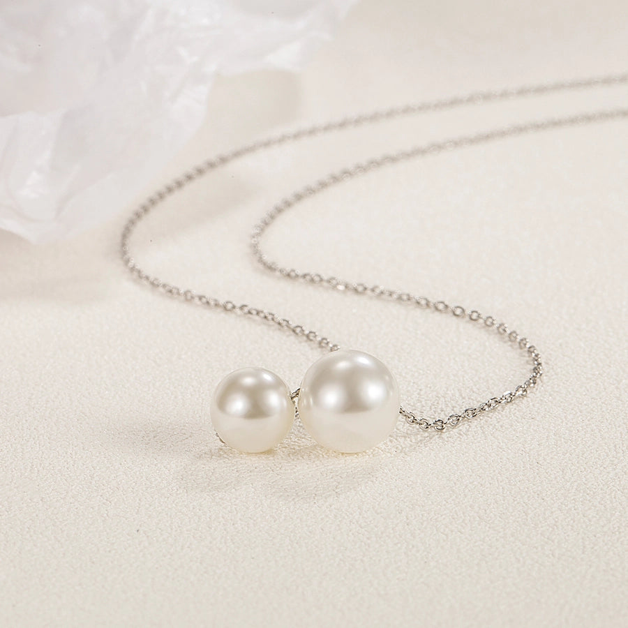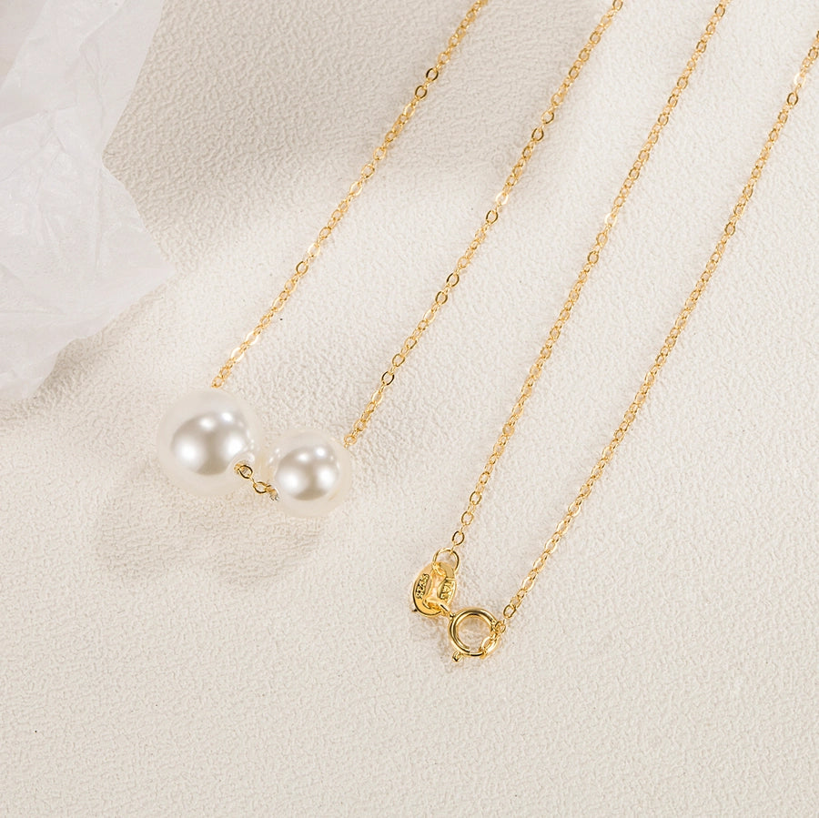 925 Sterling Silver Shell pearls cable chain Geometric Pendant Necklace