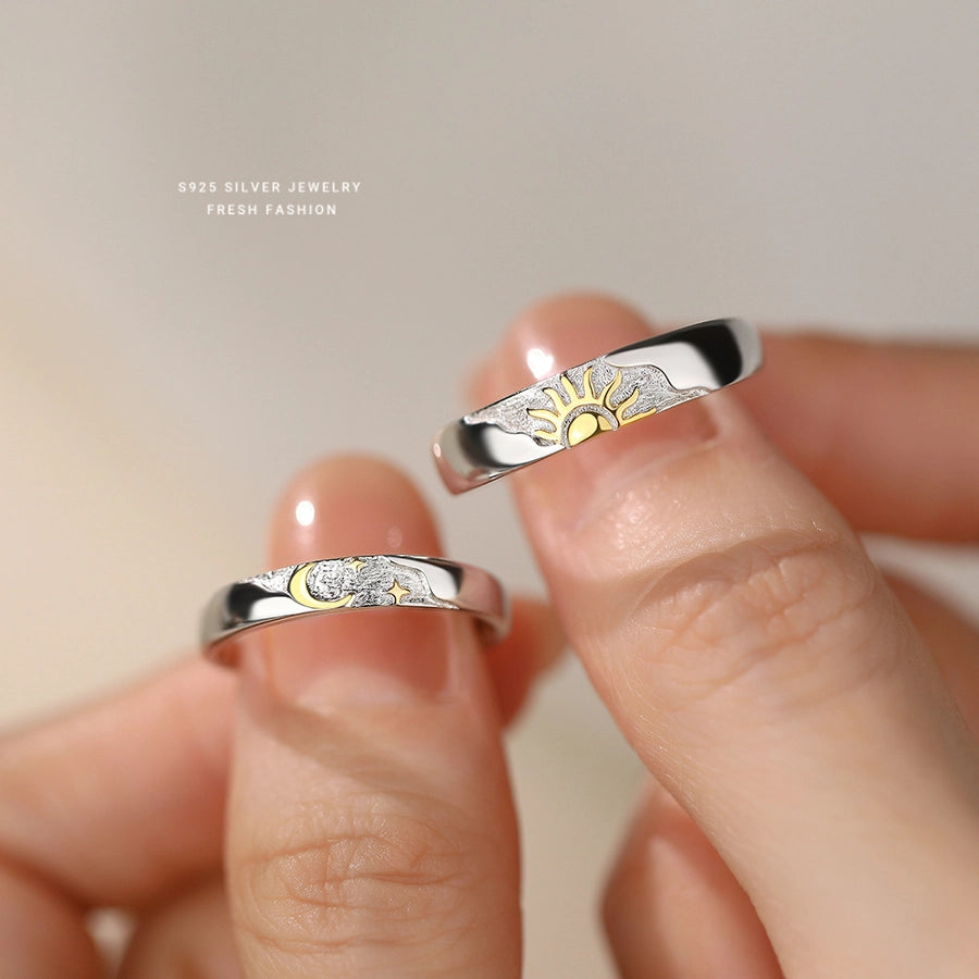 925 Sterling Silver Sun Star Moon Adjustable Ring 925 Sterling Silver Rings
