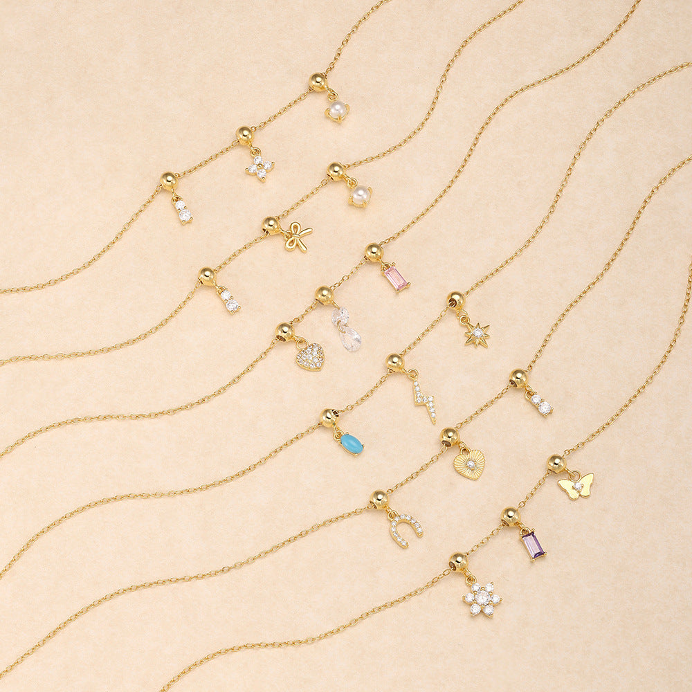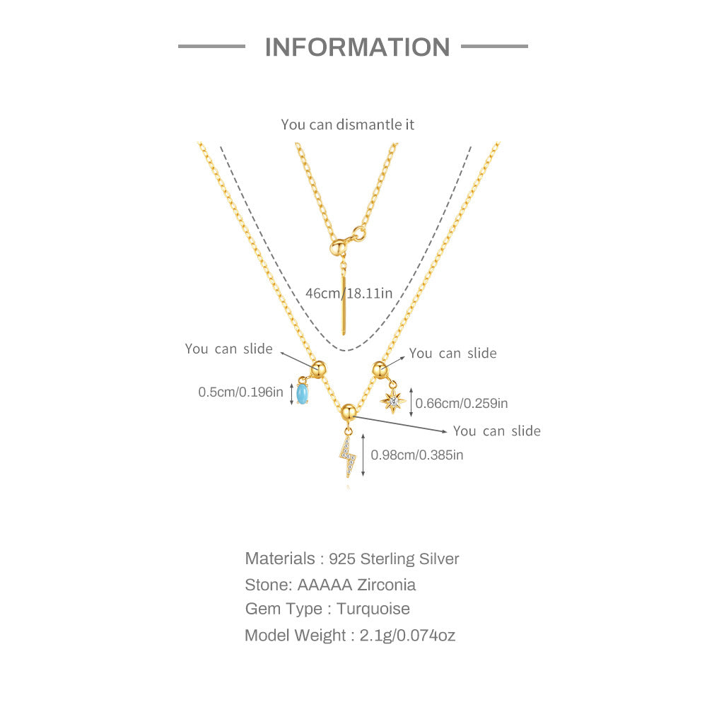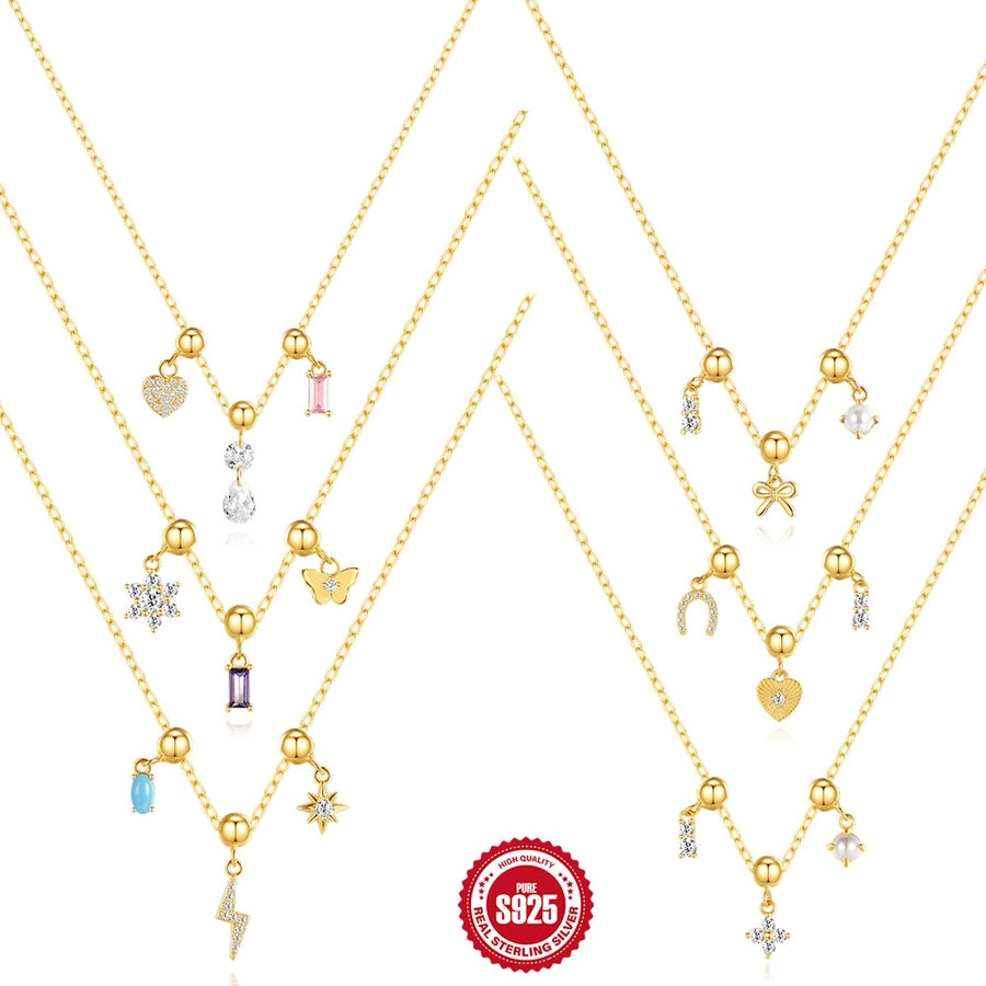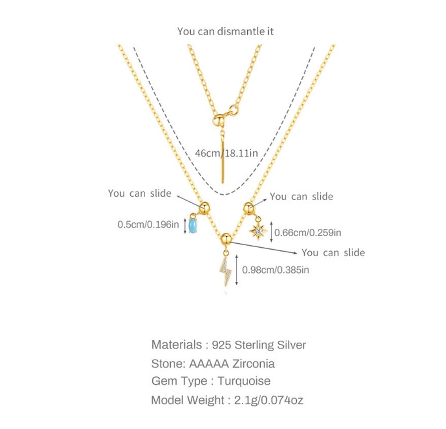 925 Sterling Silver Turquoise Zircon cable chain Plating Geometric Heart Shape Bow Knot Pendant Necklace