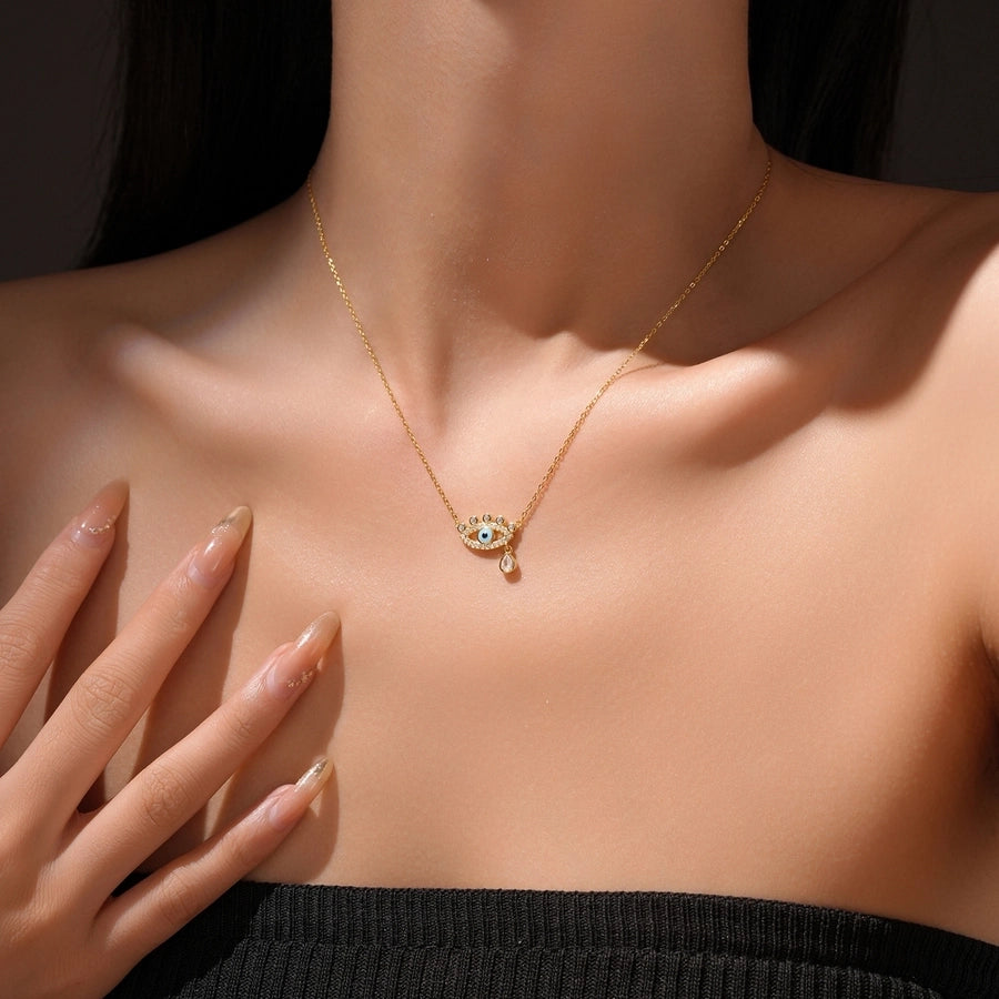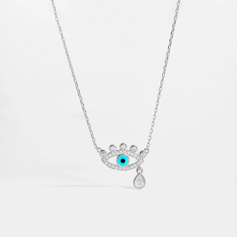 925 Sterling Silver Zircon cable chain Devil's Eye Pendant Necklace