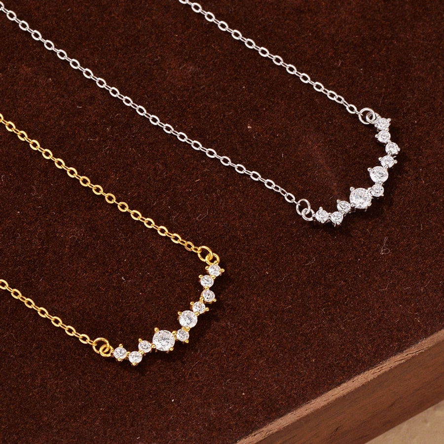 925 Sterling Silver Zircon cable chain Geometric Necklace