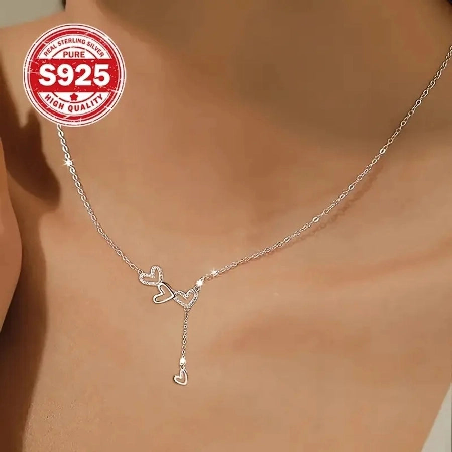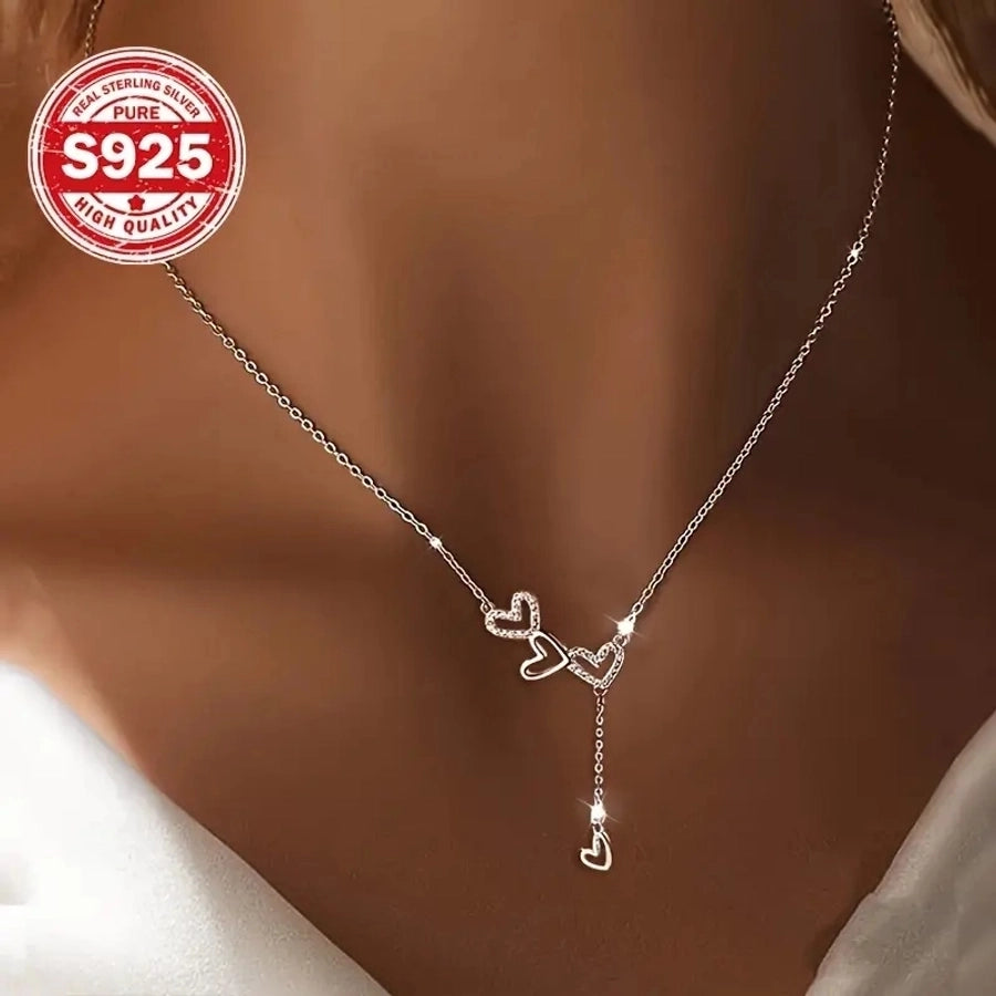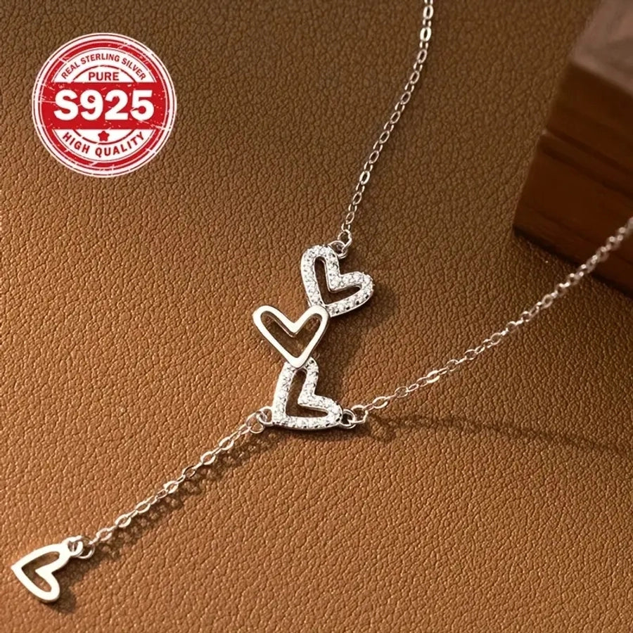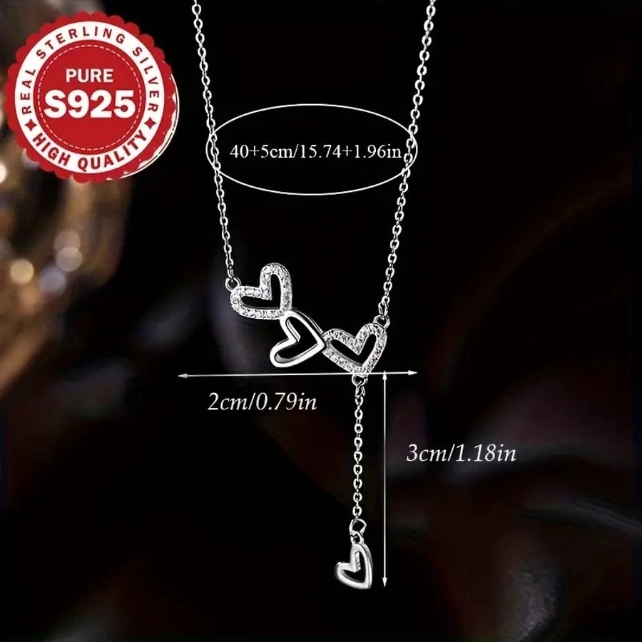 925 Sterling Silver Zircon cable chain Hollow Out Inlay Heart Shape Pendant Necklace