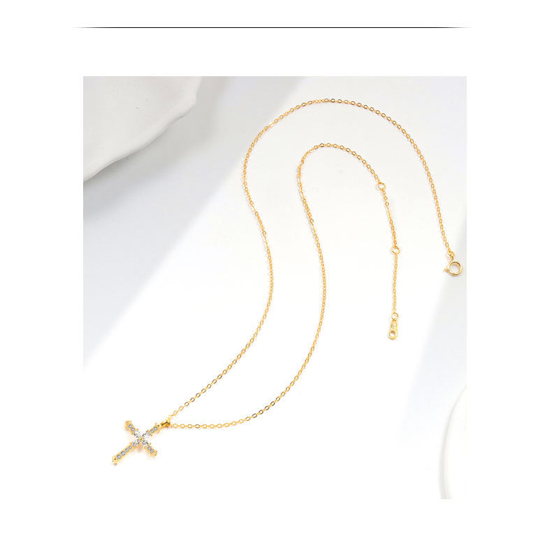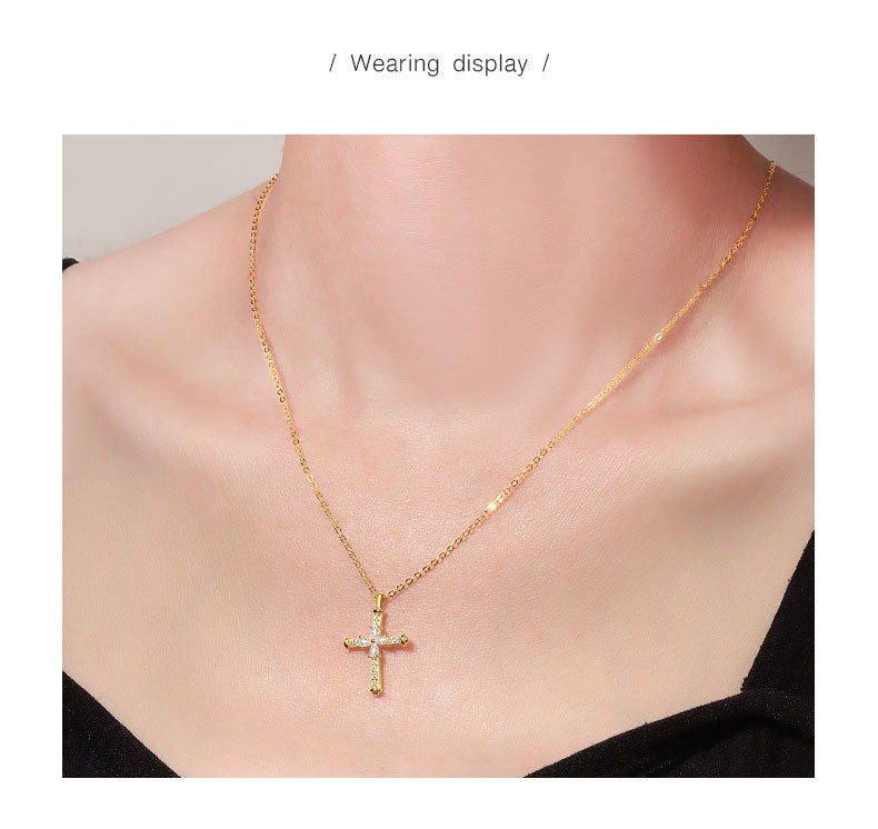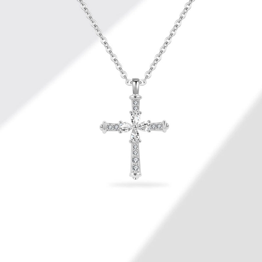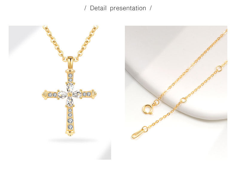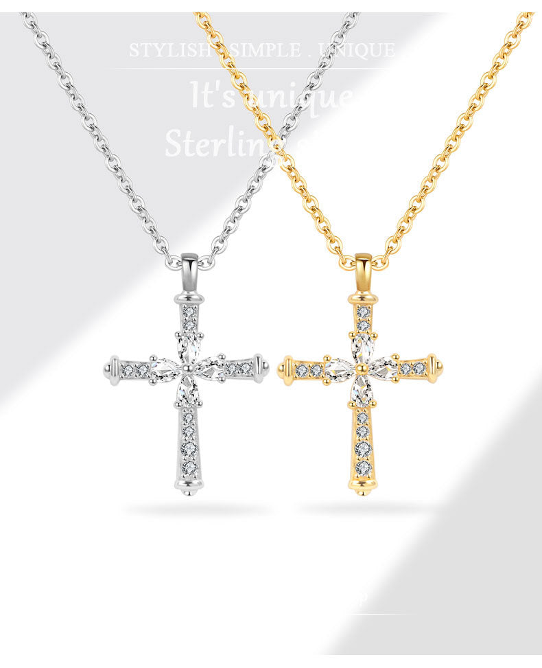 925 Sterling Silver Zircon cable chain Inlay Cross Pendant Necklace